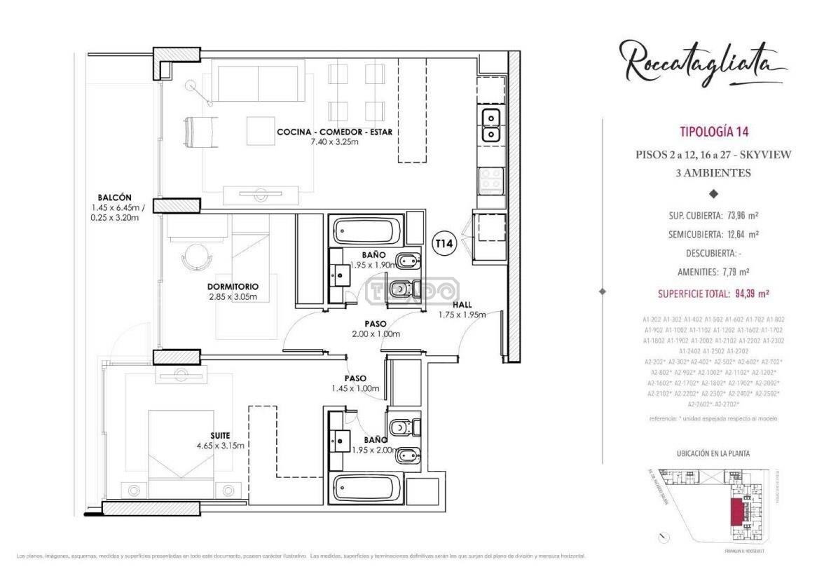 PALACIO ROCCATAGLIATA AV. BALBÍN esq. F. ROOSEVELT, COGHLAN, C.A.B.A. DOS TORRES: Torre Palace: 12 pisos & Torre Sky View: 27 pisos - de 45 a 203m² COCHERAS Y BAULERAS OPCIONALES PALACIO ROCCATAGLIATA es un complejo compuesto por un bloque de 12 pisos y una torre de 27 pisos y 3 subsuelos, con diversas tipologías de unidades de vivienda. Amenities premium - Cocheras opcionales. Se destaca la imponente presencia de la casona de la familia Roccataglita, que tras ser íntegramente restaurada muestra todo su esplendor. También comprende un área de locales comerciales. sobre la calle Zapiola. Unidades residenciales de 1 a 4 ambientes con dependencia, cocheras y bauleras. Amenities Interiores: Gimnasio, Vestuarios, Cava de vinos, Spa/Sauna seco y húmedo, Sal de reuniones, Cocheras de cortesía, Seguridad privada, Kids club, Laundry, Bicicleteros. Amenities Exteriores: Sky club, Juegos para niños, Gimnasio en terraza, Terrazas accesibles, SUM con expansión, SUM in/out, Solarium, Sector parquizado, Piscina para niños y adultos. 28 pisos - 45.000 m² Locales comerciales sobre Zapiola Bienvenidos a Roccatagliata, un emprendimiento único que redefine el concepto de residencia premium en la ciudad. Ubicado en Roosevelt 3141, en el corazón de Coghlan. Roccatagliata es mucho más que un conjunto de viviendas; es un oasis de lujo y exclusividad diseñado para aquellos que buscan un estilo de vida sofisticado y contemporáneo. Concebido cuidadosamente en cada detalle para ofrecer una experiencia única, fusionando el confort moderno con la elegancia clásica de un Palacio nacido en 1900. Desde la majestuosidad de su arquitectura hasta la calidad de sus terminaciones, Roccatagliata se erige como un símbolo de distinción y buen gusto en un nuevo estándar de vida. Se trata de un conjunto edilicio formado por un bloque de 12 pisos, más una torre de 27 pisos y 3 subsuelos, que aloja diversas tipologías de unidades de vivienda, cocheras, bauleras, locales de servicios generales, amenities, hall de acceso peatonal con jardines perimetrales, área para locales comerciales, terraza con solárium y piscina, unidad de encargado, azotea y salas de máquinas. El conjunto se organiza mediante múltiples núcleos de circulación vertical con palieres que conectan las unidades de vivienda con el lobby de acceso, cocheras y demás áreas comunes. Se respeta la antigua residencia de la Familia Roccatagliata, por estar dentro del patrimonio histórico de la ciudad y se la incorpora a la red urbana por medio de su puesta en valor. CARACTERÍSTICAS GENERALES DEL CONJUNTO Hall de acceso peatonal con marquesina y área ajardinada. Cabina de seguridad - control de acceso. Entrada y salidas vehiculares independientes desde los subsuelos de estacionamientos. Lobby en doble altura con frente vidriado, doble puerta de acceso, pisos de mármol o granito natural y revestimiento de espejo y/o madera y acero inox. Cámara transformadora de compañía prestadora de energía eléctrica (sujeto a aprobación de factibilidad). Acceso para discapacitados en cumplimiento con la ley de “Accesibilidad Física para Todos”. Baterías de ascensores con cabinas revestidas en acero inoxidable y espejo de amplias dimensiones, con botonera digital e indicador de piso en cabina. Puertas automáticas de acero inoxidable en PB y chapa pintada en palieres. Subsuelos / Estacionamientos / Recintos para medidores eléctricos y de gas / Sala de termotanques / Tanques de reserva e incendio / Sala para compactador / Sala para garajista y para ayudante de portería con sanitarios Sector para cava de vinos / Sistema de ventilación mecánica y renovación de aire reglamentario en estacionamiento / Baños en estacionamiento. / Sala para laundry / Bauleras o espacios de guardado / Espacio para grupo electrógeno / Sistema de espiras internas para control de tránsito vehicular entre niveles. / PISO 1° Unidades de vivienda. / Mono ambientes y departamentos de 1, 2 y 3 dormitorios. Vivienda de encargado. PISO 2° y 3° Unidades de viviendas. / Mono ambientes y departamentos de 1, 2 y 3 dormitorios. PISO 4° a 6° Unidades de viviendas. / Mono ambientes y departamentos de 1, 2 y 3 dormitorios. PISO 7° Unidades de viviendas. / departamentos de 1, 2 y 3 dormitorios. PISO 8° Unidades de vivienda de 1, 2 y 3 dormitorios. Gimnasio y terraza accesible parquizada. PISO 9° y 12° Unidades de viviendas 1, 2 y 3 dormitorios. PISO 13° Unidades de viviendas 1, 2 y 3 dormitorios. Solárium con piscina descubierta. PISO 14° a 27° Unidades de viviendas 1, 2 y 3 dormitorios.- AZOTEA Sky club / Sala de maquinas ascensores SE PREVERÁN LAS CANALIZACIONES PARA LOS SIGUIENTES SERVICIOS SIN PROVISIÓN DE EQUIPAMIENTO • Control de accesos y circuito cerrado de CCTV. • Servicio de telefonía interna directa desde cada unidad hacia la casilla de guardia y áreas comunes. • Sistema de detección de incendio en lugares a definir. (palieres, salas de máquinas y subsuelos) INSTALACIONES TERMICAS Y ELECTRICAS. Instalación Termomecánica y de calefacción Canalización, instalación de cañerías refrigerantes y acometidas eléctricas para la instalación de equipos de aire acondicionado frío-calor sistema de tipo Split o Multisplit, marca Daikin, Electra, LG, BGH o similar, con provisión e instalación de equipos (sujeto a disponibilidad al momento de la contratación). Extracción mecánica de sanitarios con conductos de chapa. Ventilación mecánicamente las Salas de Tableros, Salas de Bombas, Depósitos, Salas de Máquinas de Ascensores y demás locales de Servicio de los Subsuelos. Las cocheras contarán con la ventilación mecánica reglamentaria. Instalación Eléctrica Cañería y cables reglamentarios, doble circuito eléctrico por unidad separando el circuito de tomas con el de iluminación, tablero con llaves térmicas y disyuntor diferencial (marcas SICA, ABB TUBIO o equivalente), según reglamentación de la Cía. Proveedora del servicio eléctri