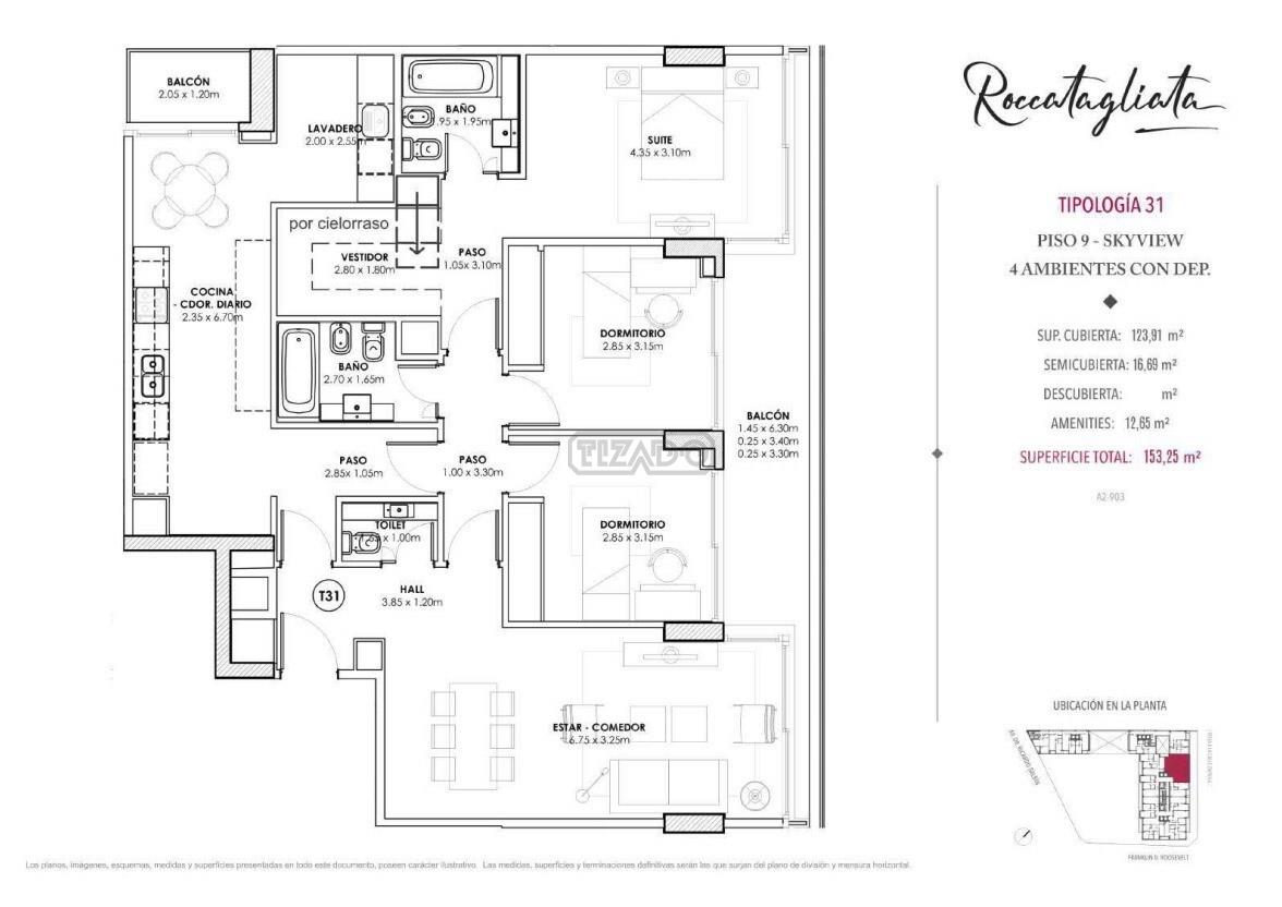 PALACIO ROCCATAGLIATA AV. BALBÍN esq. F. ROOSEVELT, COGHLAN, C.A.B.A. DOS TORRES: Torre Palace: 12 pisos & Torre Sky View: 27 pisos - de 45 a 203m² COCHERAS Y BAULERAS OPCIONALES PALACIO ROCCATAGLIATA es un complejo compuesto por un bloque de 12 pisos y una torre de 27 pisos y 3 subsuelos, con diversas tipologías de unidades de vivienda. Amenities premium - Cocheras opcionales. Se destaca la imponente presencia de la casona de la familia Roccataglita, que tras ser íntegramente restaurada muestra todo su esplendor. También comprende un área de locales comerciales. sobre la calle Zapiola. Unidades residenciales de 1 a 4 ambientes con dependencia, cocheras y bauleras. Amenities Interiores: Gimnasio, Vestuarios, Cava de vinos, Spa/Sauna seco y húmedo, Sal de reuniones, Cocheras de cortesía, Seguridad privada, Kids club, Laundry, Bicicleteros. Amenities Exteriores: Sky club, Juegos para niños, Gimnasio en terraza, Terrazas accesibles, SUM con expansión, SUM in/out, Solarium, Sector parquizado, Piscina para niños y adultos. 28 pisos - 45.000 m² Locales comerciales sobre Zapiola Bienvenidos a Roccatagliata, un emprendimiento único que redefine el concepto de residencia premium en la ciudad. Ubicado en Roosevelt 3141, en el corazón de Coghlan. Roccatagliata es mucho más que un conjunto de viviendas; es un oasis de lujo y exclusividad diseñado para aquellos que buscan un estilo de vida sofisticado y contemporáneo. Concebido cuidadosamente en cada detalle para ofrecer una experiencia única, fusionando el confort moderno con la elegancia clásica de un Palacio nacido en 1900. Desde la majestuosidad de su arquitectura hasta la calidad de sus terminaciones, Roccatagliata se erige como un símbolo de distinción y buen gusto en un nuevo estándar de vida. Se trata de un conjunto edilicio formado por un bloque de 12 pisos, más una torre de 27 pisos y 3 subsuelos, que aloja diversas tipologías de unidades de vivienda, cocheras, bauleras, locales de servicios generales, amenities, hall de acceso peatonal con jardines perimetrales, área para locales comerciales, terraza con solárium y piscina, unidad de encargado, azotea y salas de máquinas. El conjunto se organiza mediante múltiples núcleos de circulación vertical con palieres que conectan las unidades de vivienda con el lobby de acceso, cocheras y demás áreas comunes. Se respeta la antigua residencia de la Familia Roccatagliata, por estar dentro del patrimonio histórico de la ciudad y se la incorpora a la red urbana por medio de su puesta en valor. CARACTERÍSTICAS GENERALES DEL CONJUNTO Hall de acceso peatonal con marquesina y área ajardinada. Cabina de seguridad - control de acceso. Entrada y salidas vehiculares independientes desde los subsuelos de estacionamientos. Lobby en doble altura con frente vidriado, doble puerta de acceso, pisos de mármol o granito natural y revestimiento de espejo y/o madera y acero inox. Cámara transformadora de compañía prestadora de energía eléctrica (sujeto a aprobación de factibilidad). Acceso para discapacitados en cumplimiento con la ley de “Accesibilidad Física para Todos”. Baterías de ascensores con cabinas revestidas en acero inoxidable y espejo de amplias dimensiones, con botonera digital e indicador de piso en cabina. Puertas automáticas de acero inoxidable en PB y chapa pintada en palieres. Subsuelos / Estacionamientos / Recintos para medidores eléctricos y de gas / Sala de termotanques / Tanques de reserva e incendio / Sala para compactador / Sala para garajista y para ayudante de portería con sanitarios Sector para cava de vinos / Sistema de ventilación mecánica y renovación de aire reglamentario en estacionamiento / Baños en estacionamiento. / Sala para laundry / Bauleras o espacios de guardado / Espacio para grupo electrógeno / Sistema de espiras internas para control de tránsito vehicular entre niveles. / PISO 1° Unidades de vivienda. / Mono ambientes y departamentos de 1, 2 y 3 dormitorios. Vivienda de encargado. PISO 2° y 3° Unidades de viviendas. / Mono ambientes y departamentos de 1, 2 y 3 dormitorios. PISO 4° a 6° Unidades de viviendas. / Mono ambientes y departamentos de 1, 2 y 3 dormitorios. PISO 7° Unidades de viviendas. / departamentos de 1, 2 y 3 dormitorios. PISO 8° Unidades de vivienda de 1, 2 y 3 dormitorios. Gimnasio y terraza accesible parquizada. PISO 9° y 12° Unidades de viviendas 1, 2 y 3 dormitorios. PISO 13° Unidades de viviendas 1, 2 y 3 dormitorios. Solárium con piscina descubierta. PISO 14° a 27° Unidades de viviendas 1, 2 y 3 dormitorios.- AZOTEA Sky club / Sala de maquinas ascensores SE PREVERÁN LAS CANALIZACIONES PARA LOS SIGUIENTES SERVICIOS SIN PROVISIÓN DE EQUIPAMIENTO • Control de accesos y circuito cerrado de CCTV. • Servicio de telefonía interna directa desde cada unidad hacia la casilla de guardia y áreas comunes. • Sistema de detección de incendio en lugares a definir. (palieres, salas de máquinas y subsuelos) INSTALACIONES TERMICAS Y ELECTRICAS. Instalación Termomecánica y de calefacción Canalización, instalación de cañerías refrigerantes y acometidas eléctricas para la instalación de equipos de aire acondicionado frío-calor sistema de tipo Split o Multisplit, marca Daikin, Electra, LG, BGH o similar, con provisión e instalación de equipos (sujeto a disponibilidad al momento de la contratación). Extracción mecánica de sanitarios con conductos de chapa. Ventilación mecánicamente las Salas de Tableros, Salas de Bombas, Depósitos, Salas de Máquinas de Ascensores y demás locales de Servicio de los Subsuelos. Las cocheras contarán con la ventilación mecánica reglamentaria. Instalación Eléctrica Cañería y cables reglamentarios, doble circuito eléctrico por unidad separando el circuito de tomas con el de iluminación, tablero con llaves térmicas y disyuntor diferencial (marcas SICA, ABB TUBIO o equivalente), según reglamentación de la Cía. Proveedora del servicio eléctri
