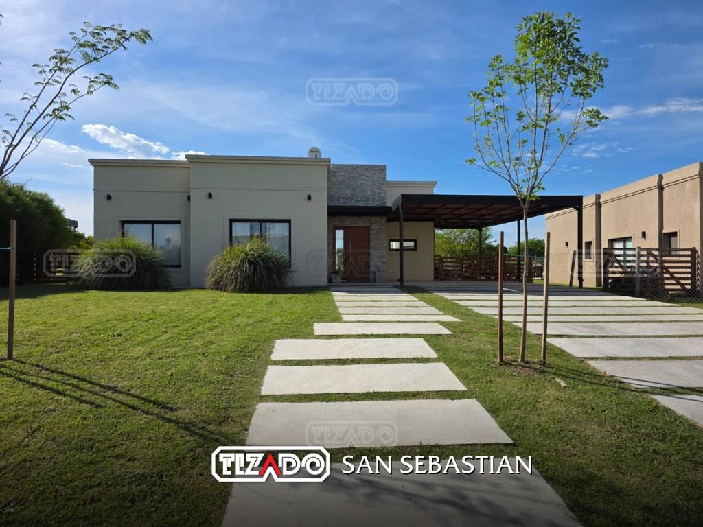 Casa estilo moderno desarrollada en una planta, área 2 A estrenar, sistema de construcción tradicional. Hall de ingreso, amplio living comedor con cocina semi integrada con barra y mesada Silestone y muebles bajo mesada, lavadero con mesada y pileta, salida de servicio que comunica al tender y las cocheras. Comedor y cocina comunican a la galería con parrilla y pileta de lavado Hermosa vista al jardín y la pileta En el área de descanso encontramos, un dormitorio en suite mas vestidor y baño con toallero, con ventanales con vista al jardín y pileta, y dos dormitorios con baño completo. Acceso vehicular con pergola metálica Detalles de terminación: *Pisos de porcellanato *Carpintería metálica con DVH *Pre instalación de AA e los ambientes *Calefacción por radiadores * Caldera dual