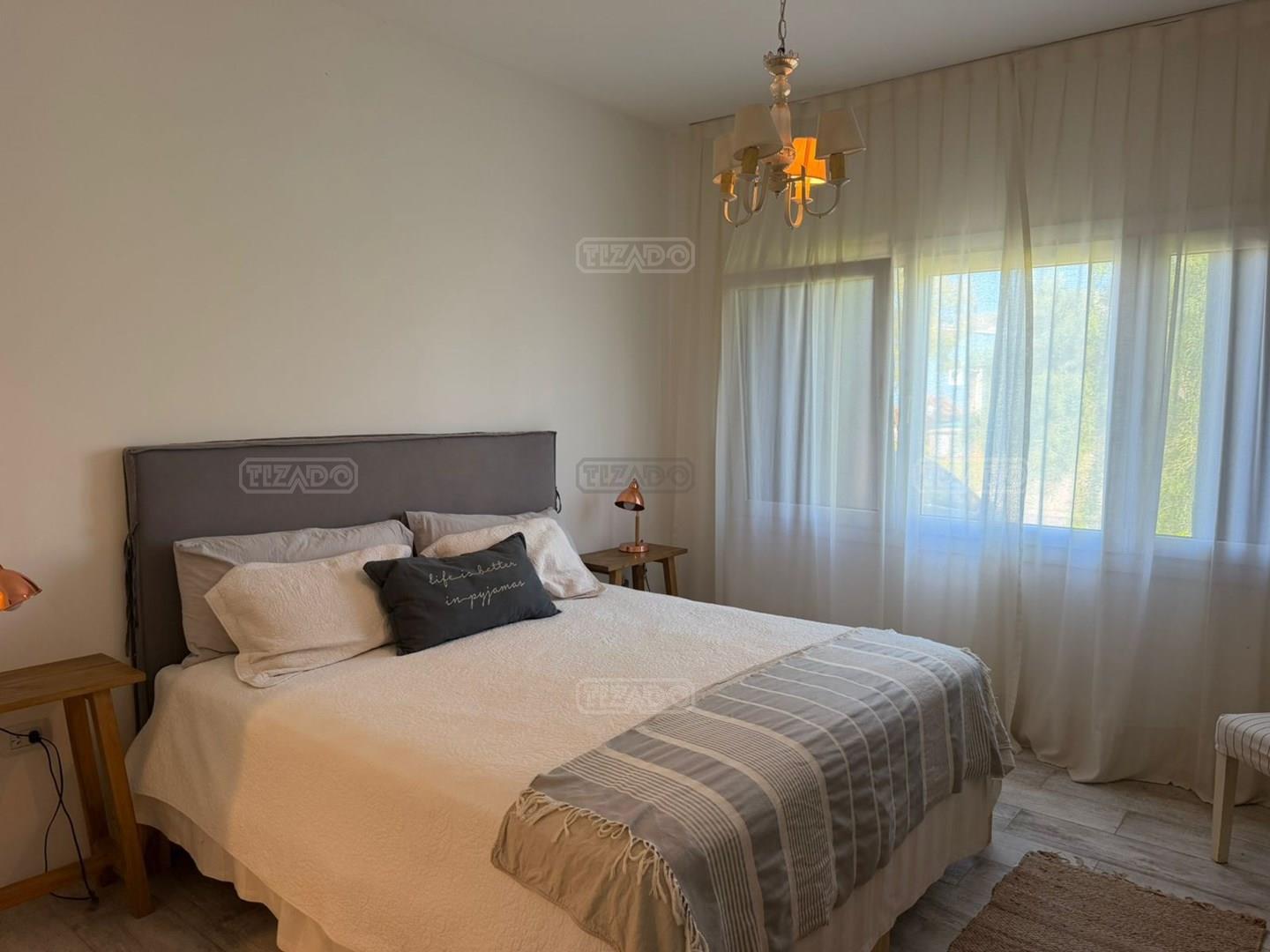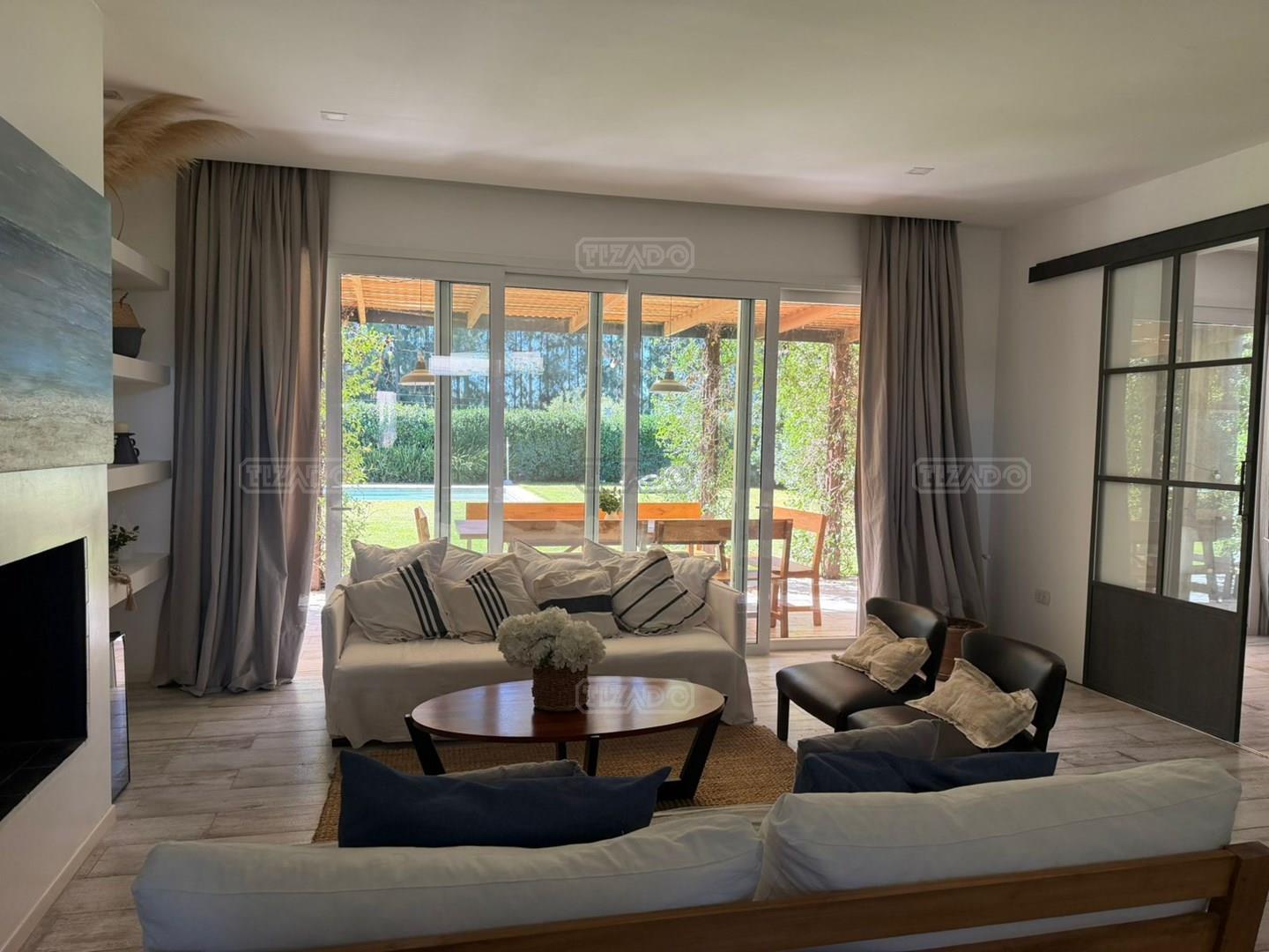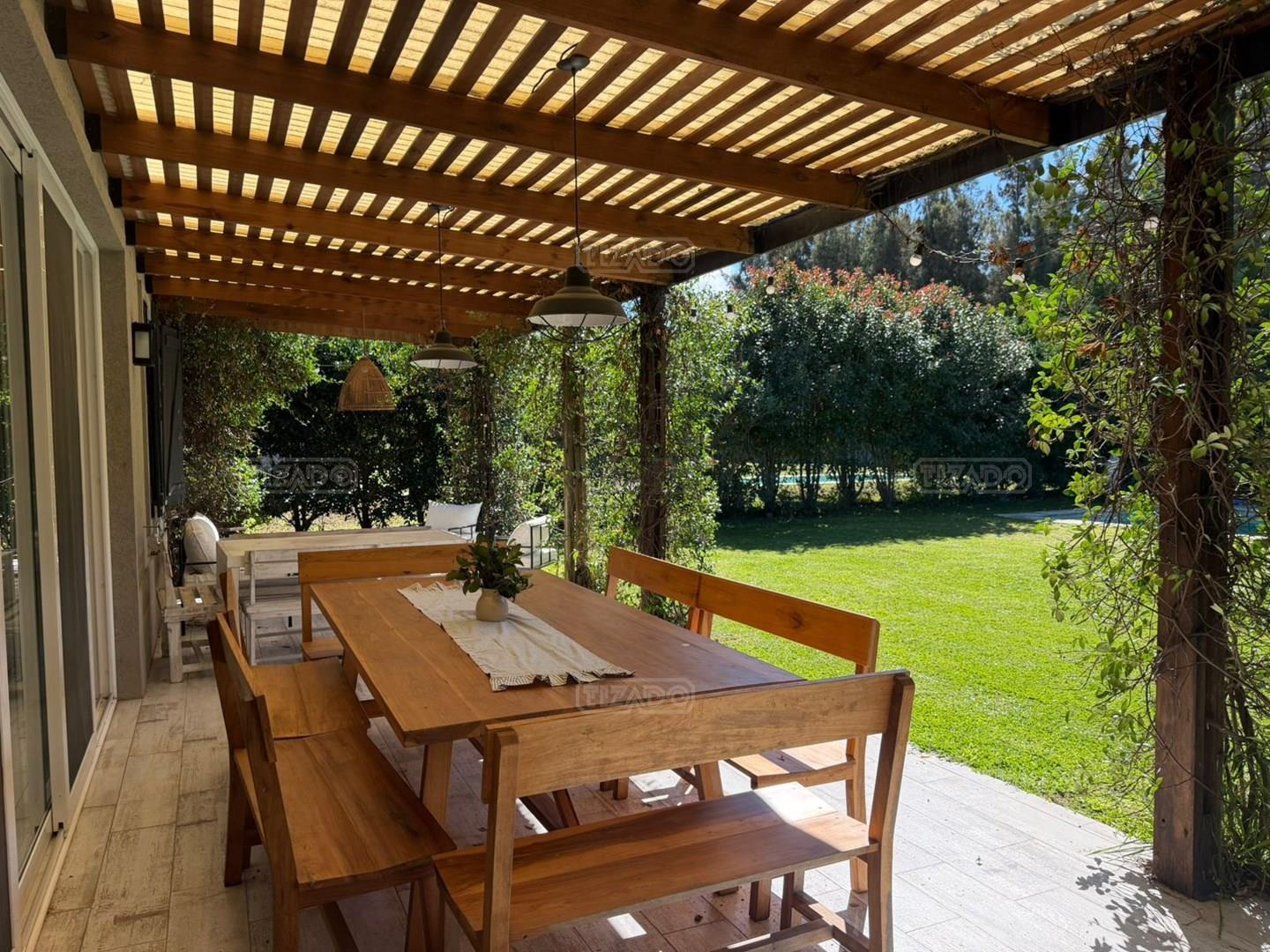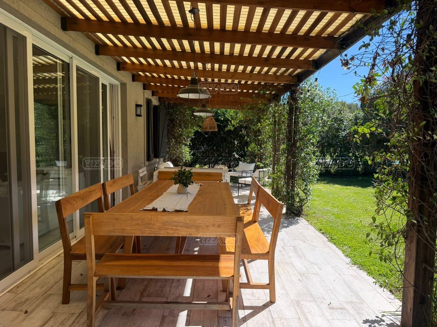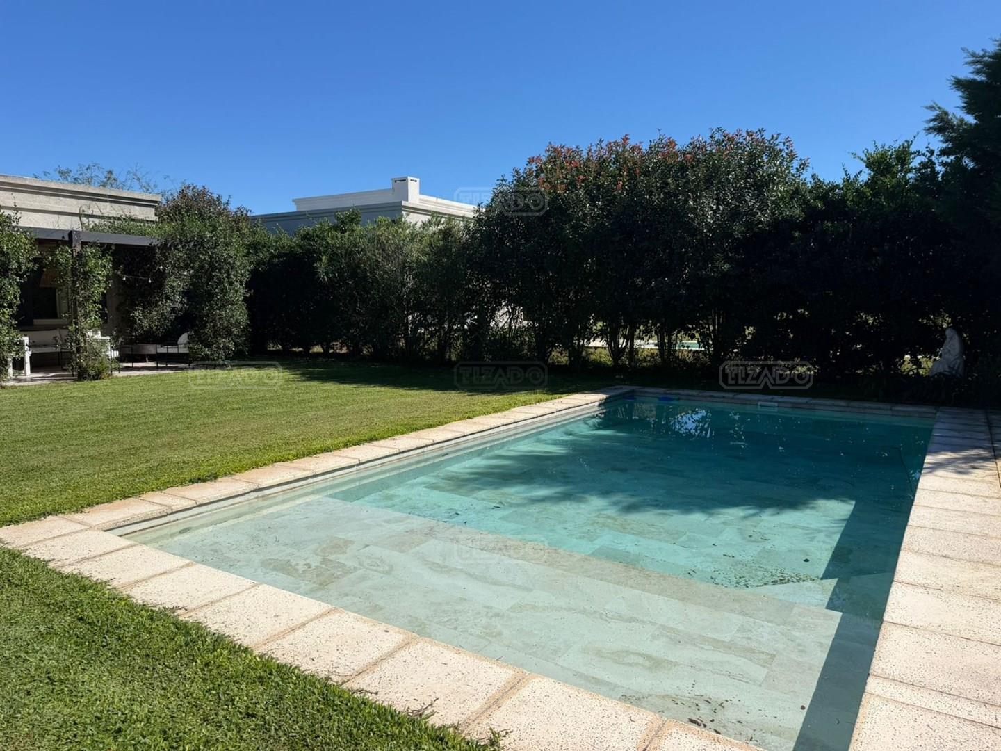 Hermosa casa de una planta en ALQUILER CON MUEBLES, en el Barrio San Matias. La casa se desarrolla en dos alas, de un lado se encuentra la suite matrimonial con su baño completo y su vestidor, que se une a la otra ala de la casa a través de un super living comedor, con gran luminosidad y grandes ventanales que dan al hermoso jardín. La cocina comedor es muy cómoda y completa, lavadero separado y baño de servicio o de pileta. Toilette de recepción, y 3 dormitorios equipados con respectivo baño. La galería es soñada, tiene un buen espacio de parrilla y un jardín super bien arbolado con su pileta. Es super amena la casa, su decoración y esta impecable para alquilar. Se alquila únicamente CON LOS MUEBLES. Consultar por alquiler temporal de 3, 6 y 12 meses.
