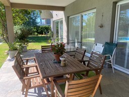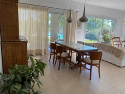 EL CANTON, Barrio Norte, Alquiler anual por dos años u$ 2500 con expensas incluidas . Lindísima casa al agua.- Implantada sobre doble lote a la laguna, con muelle , gran jardín parquizado con detalles de muy buen gusto, con arboles y plantas de distintas especies ,para disfrutarlo en todas las estaciones del año, Pileta con borde infinito y solárium . Posee algunos muebles que quedan en la casa En planta baja: Hall de entrada ,toilette , living y comedor con hogar , gran cocina con excelente amoblamiento , comedor diario con salida a la amplia galería con lindísima vista ,parrilla .Dos amplios dormitorios con baño completo ,habitación de servicio con baño. cochera para dos autos bajo pérgola, y lugar de estacionamiento para varios mas .En Planta Alta: nos encontramos con una gran master suite, con impecable vestidor y muy buen baño , balcón hacia el jardín y Escritorio también en planta alta.Las expensas incluyen municipal y aysa . Gabriel Demaria Matricula 4228 del CMSI