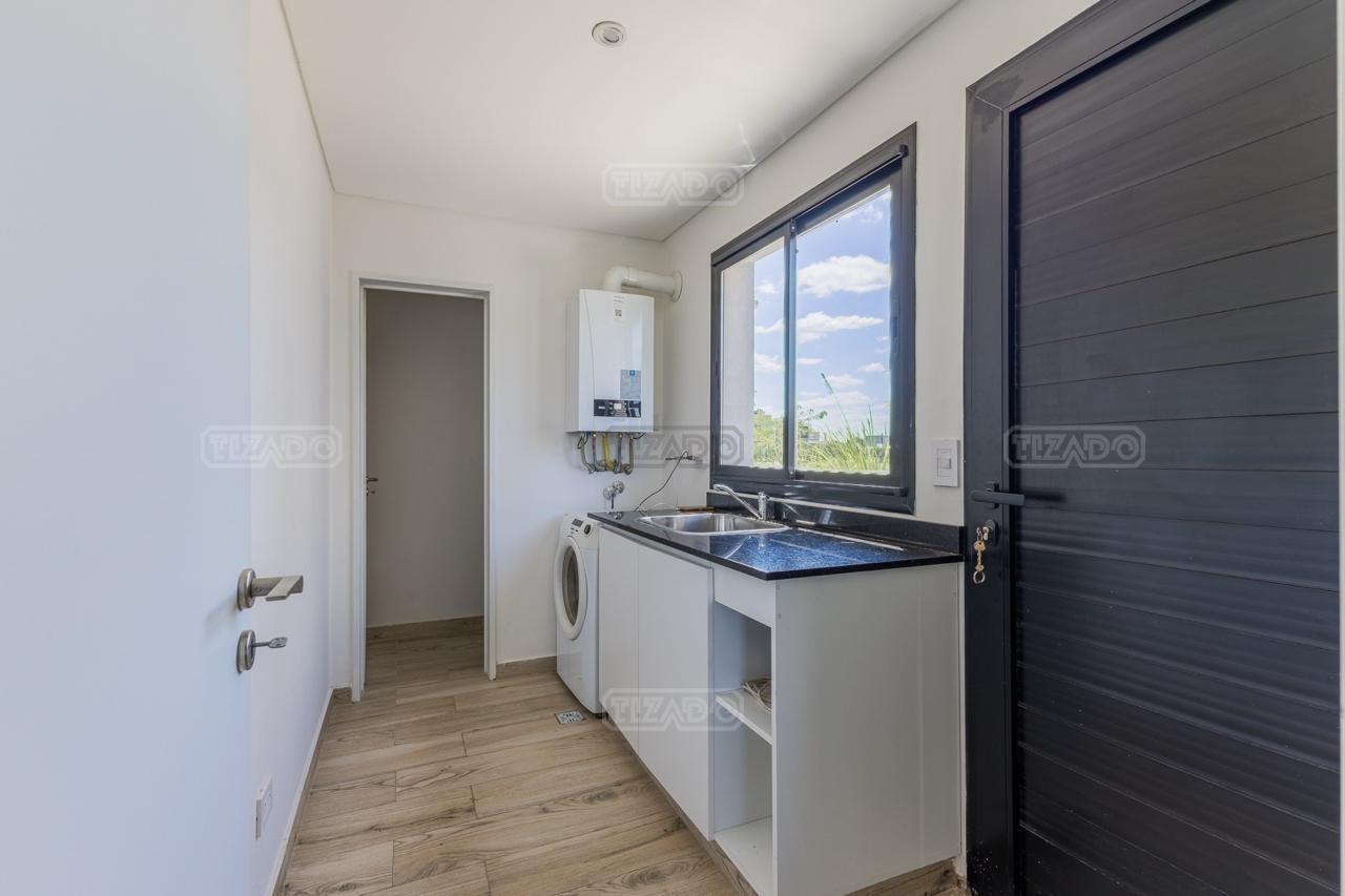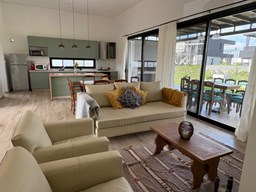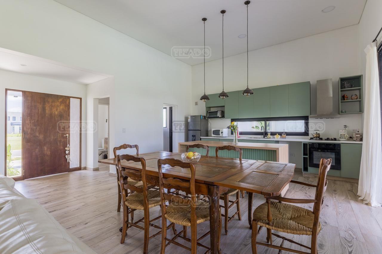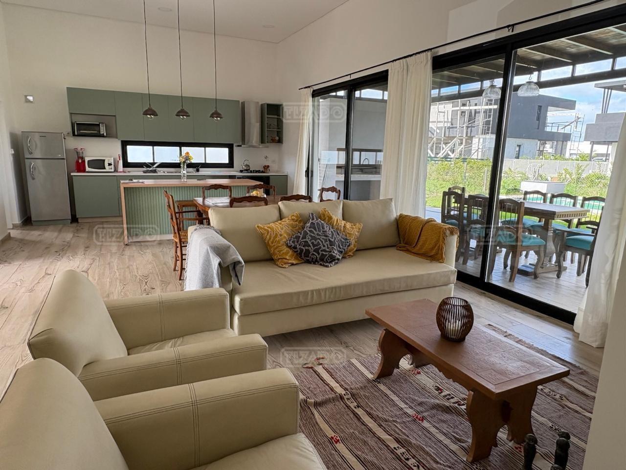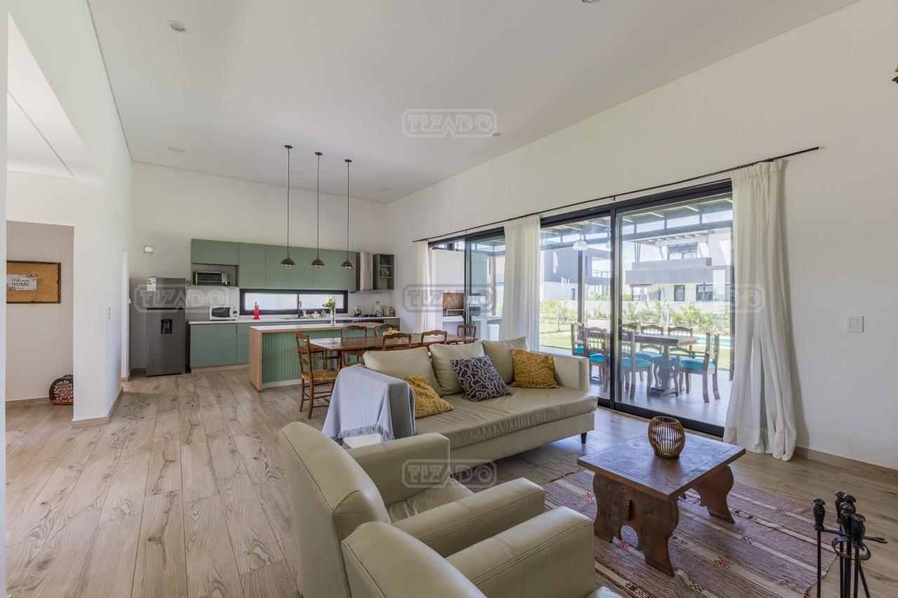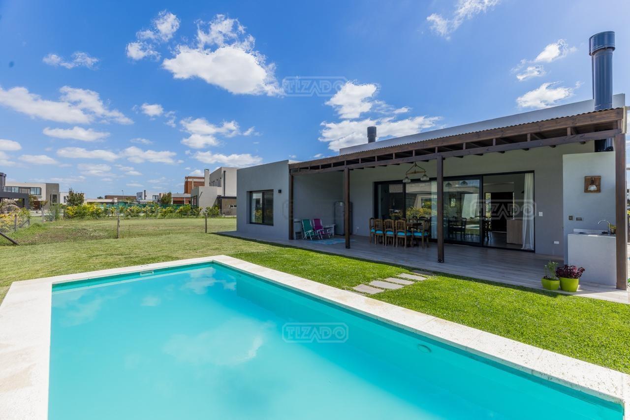 Alquiler Anual: 1,850U$D Alquiler mensual, Temporada Alta: Disponible: Casa en Ribera con Lote de 626,Mt2 TOTALMENTE AMUEBLADA y con ropa blanca. Hermosa propiedad desarrollada en una sola planta, con diseño moderno, funcional y lleno de luz natural. Características principales: Cocina, comedor y estar integrados, amplios y luminosos. Lavadero, despensa y sala de máquinas. Tres dormitorios: Master suite con baño privado y amplio vestidor. Dos habitaciones con baño compartido. Galería cubierta con parrilla. Jardín con pileta. Entorno: Ubicada en el exclusivo barrio Ribera de Puertos del Lago, rodeada de naturaleza y con seguridad 24 hs. Con acceso a todas las amenidades de Puertos: lago central, áreas deportivas, colegios, restaurantes y centro comercial.
