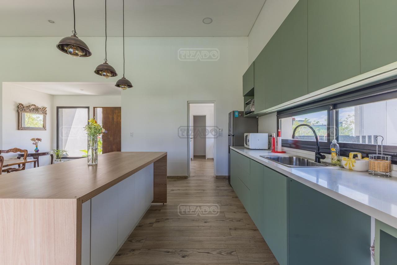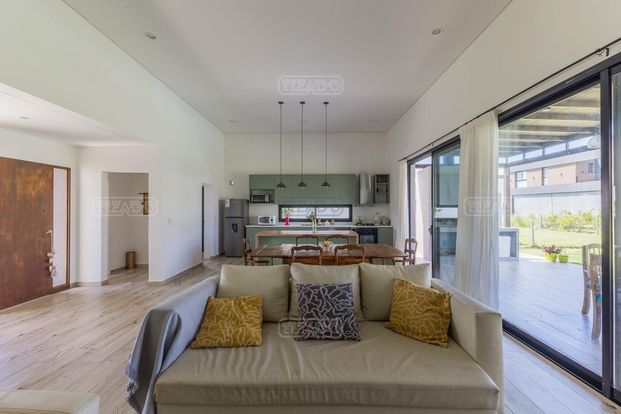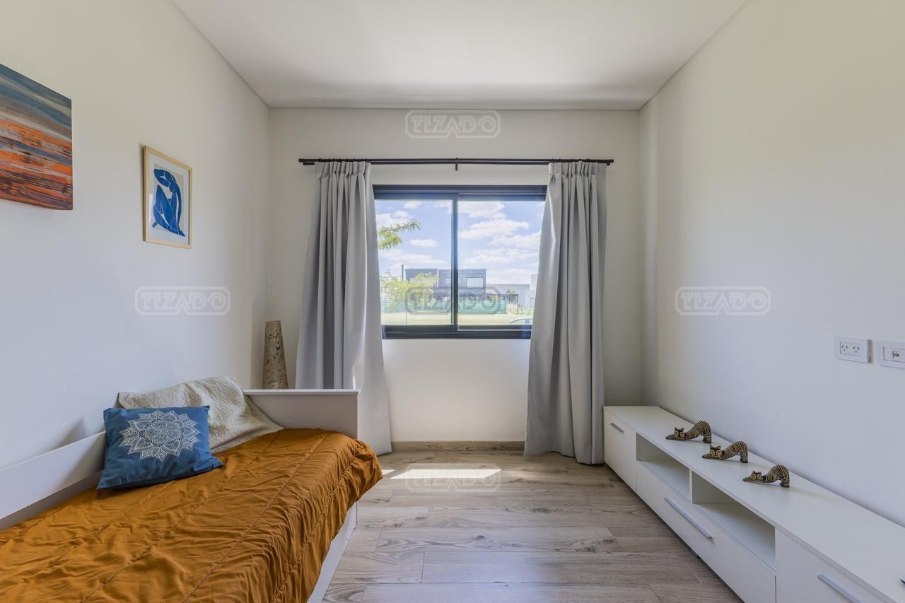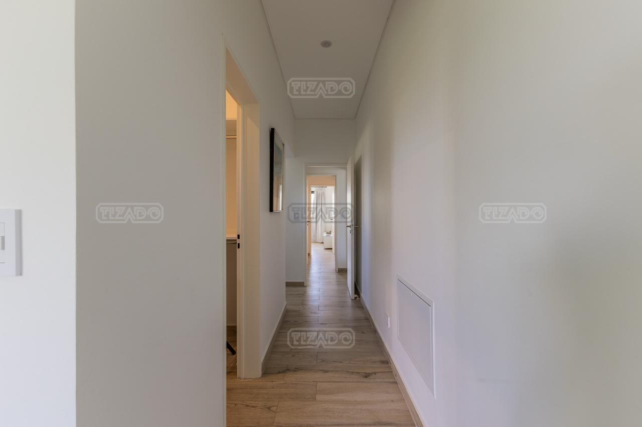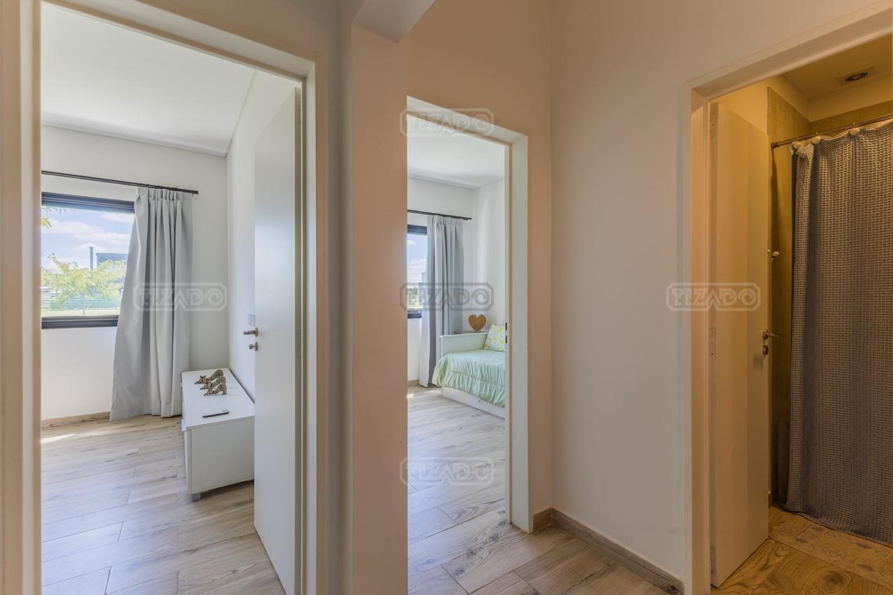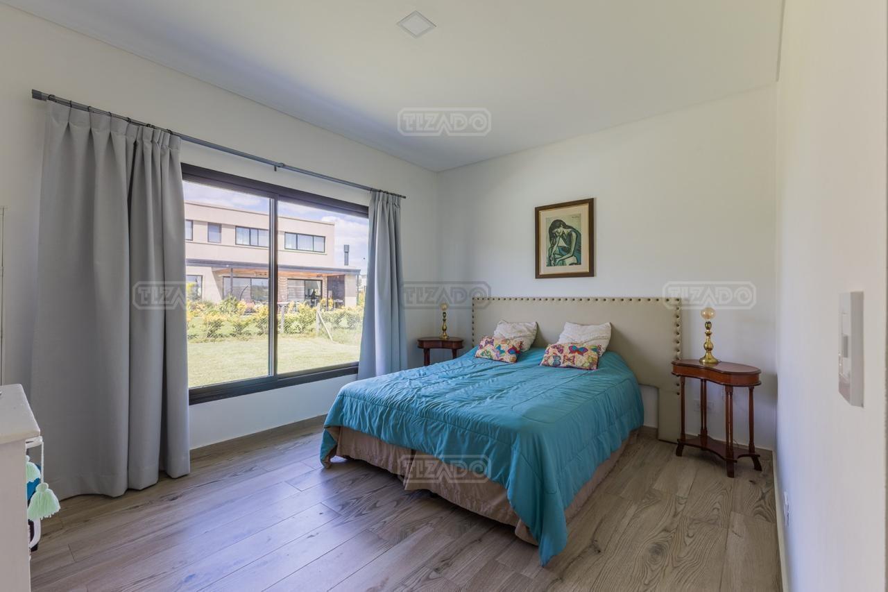 Alquiler Anual: 1,850U$D Alquiler mensual, Temporada Alta: Disponible: Casa en Ribera con Lote de 626,Mt2 TOTALMENTE AMUEBLADA y con ropa blanca. Hermosa propiedad desarrollada en una sola planta, con diseño moderno, funcional y lleno de luz natural. Características principales: Cocina, comedor y estar integrados, amplios y luminosos. Lavadero, despensa y sala de máquinas. Tres dormitorios: Master suite con baño privado y amplio vestidor. Dos habitaciones con baño compartido. Galería cubierta con parrilla. Jardín con pileta. Entorno: Ubicada en el exclusivo barrio Ribera de Puertos del Lago, rodeada de naturaleza y con seguridad 24 hs. Con acceso a todas las amenidades de Puertos: lago central, áreas deportivas, colegios, restaurantes y centro comercial.