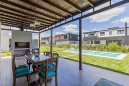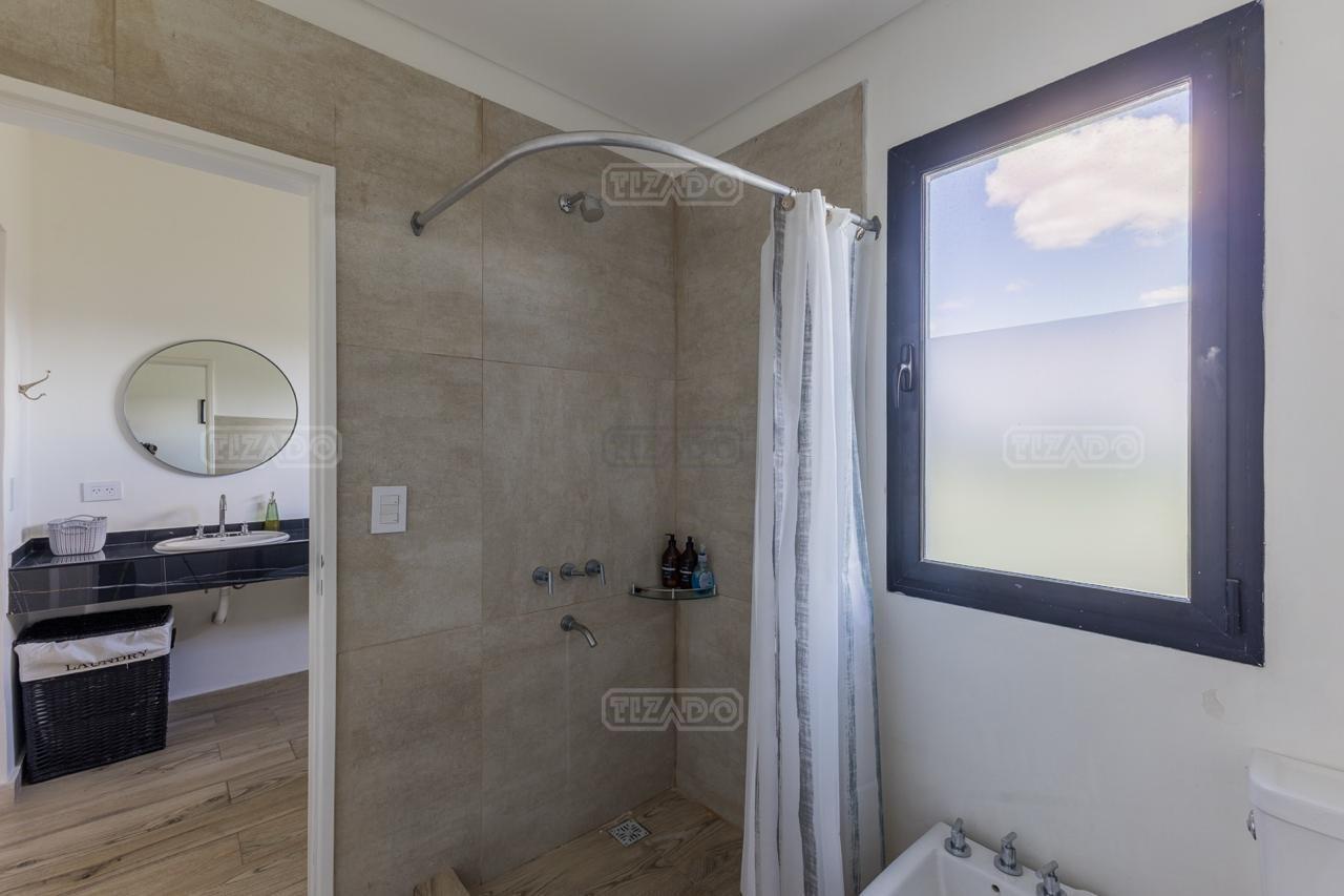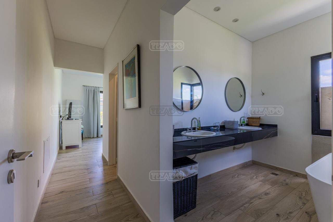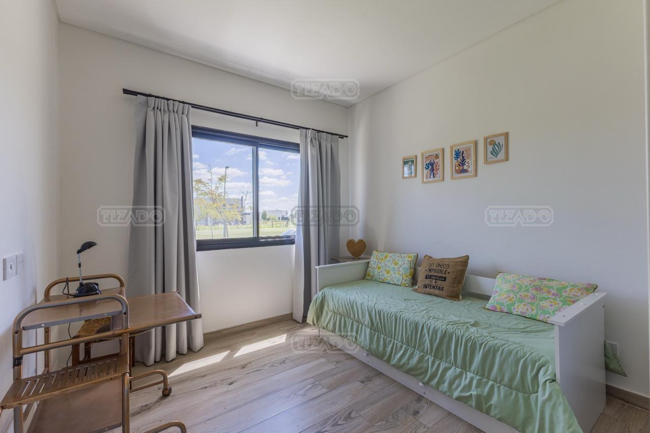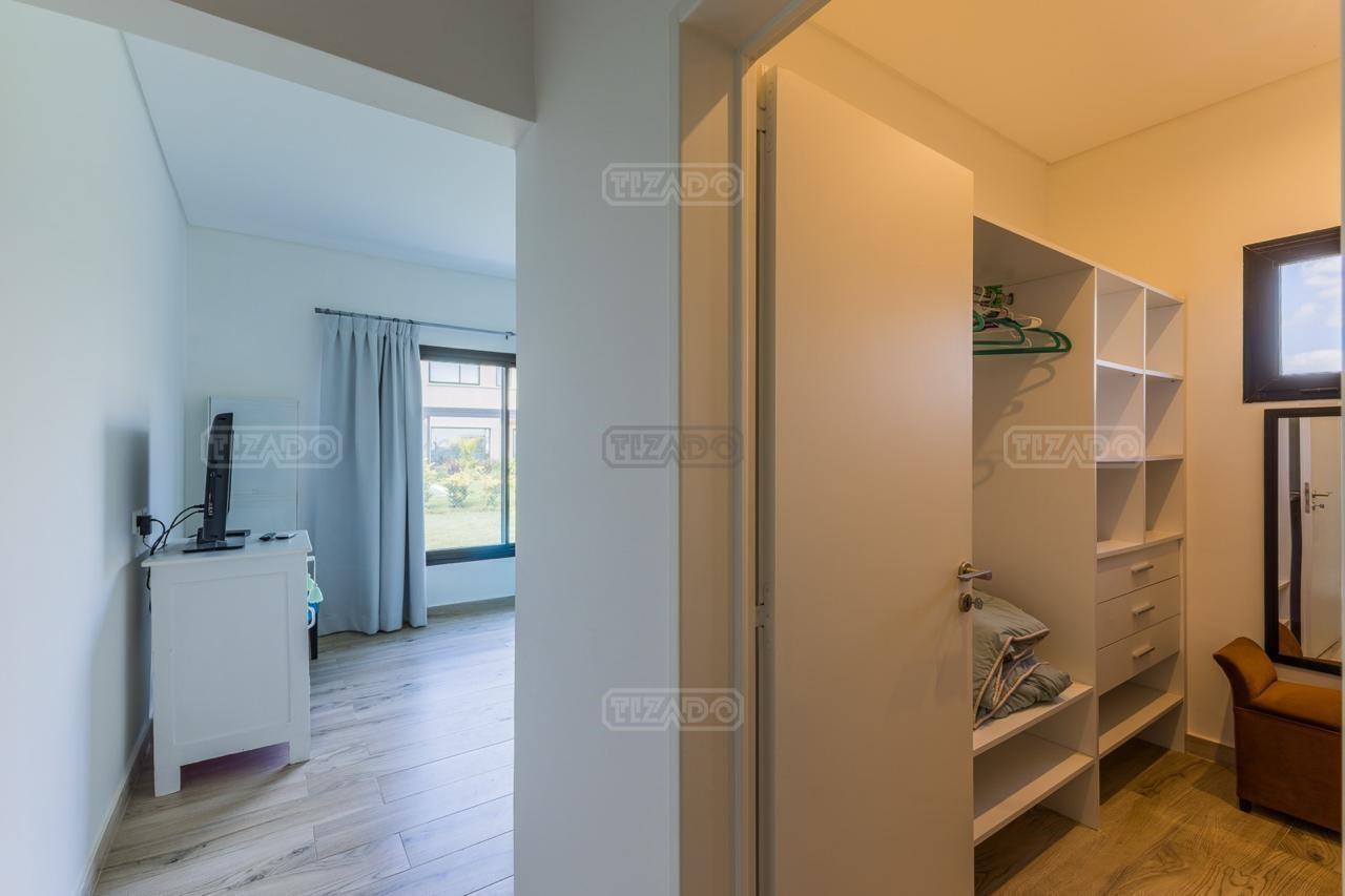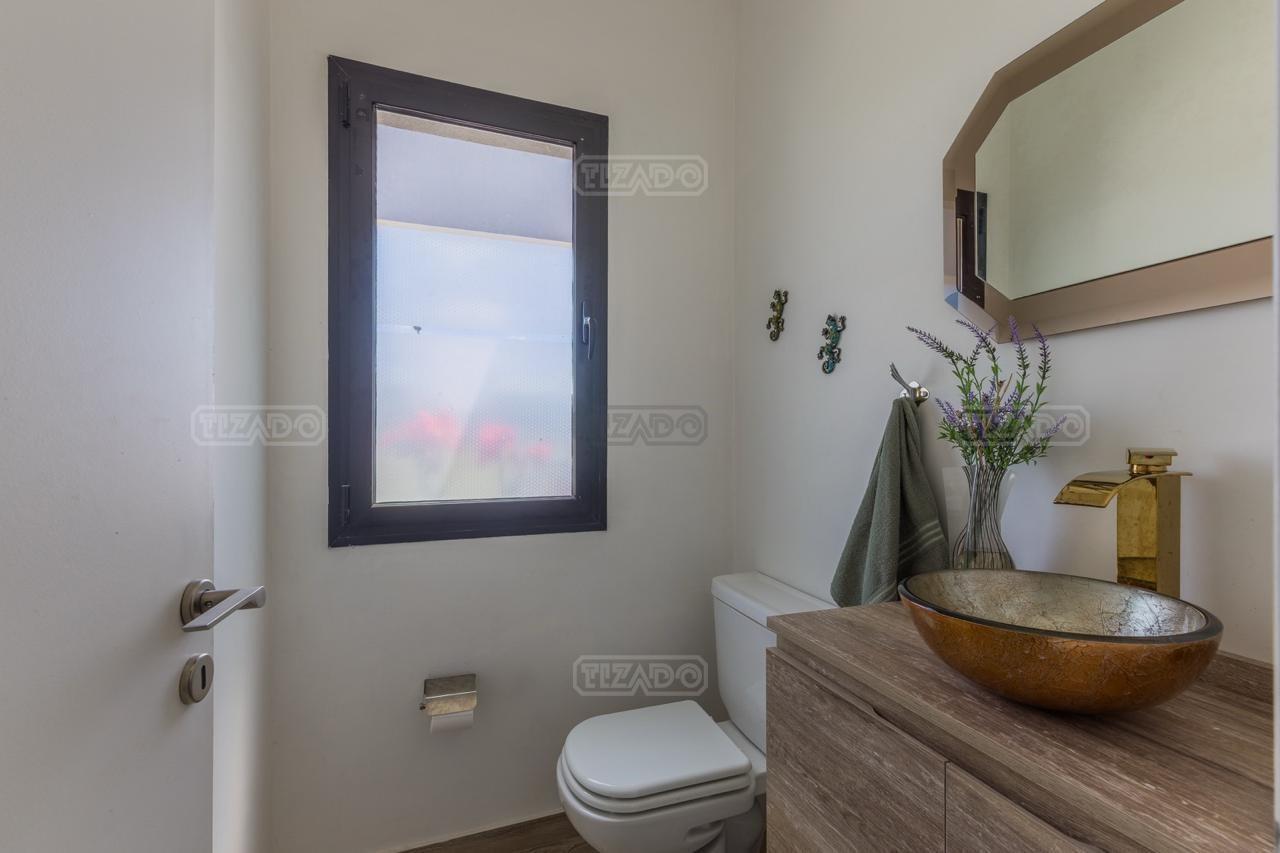 Alquiler Anual: 1,850U$D Alquiler mensual, Temporada Alta: Disponible: Casa en Ribera con Lote de 626,Mt2 TOTALMENTE AMUEBLADA y con ropa blanca. Hermosa propiedad desarrollada en una sola planta, con diseño moderno, funcional y lleno de luz natural. Características principales: Cocina, comedor y estar integrados, amplios y luminosos. Lavadero, despensa y sala de máquinas. Tres dormitorios: Master suite con baño privado y amplio vestidor. Dos habitaciones con baño compartido. Galería cubierta con parrilla. Jardín con pileta. Entorno: Ubicada en el exclusivo barrio Ribera de Puertos del Lago, rodeada de naturaleza y con seguridad 24 hs. Con acceso a todas las amenidades de Puertos: lago central, áreas deportivas, colegios, restaurantes y centro comercial.