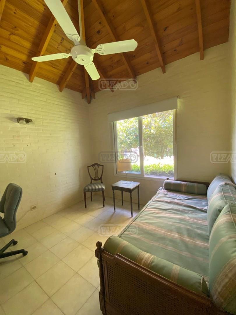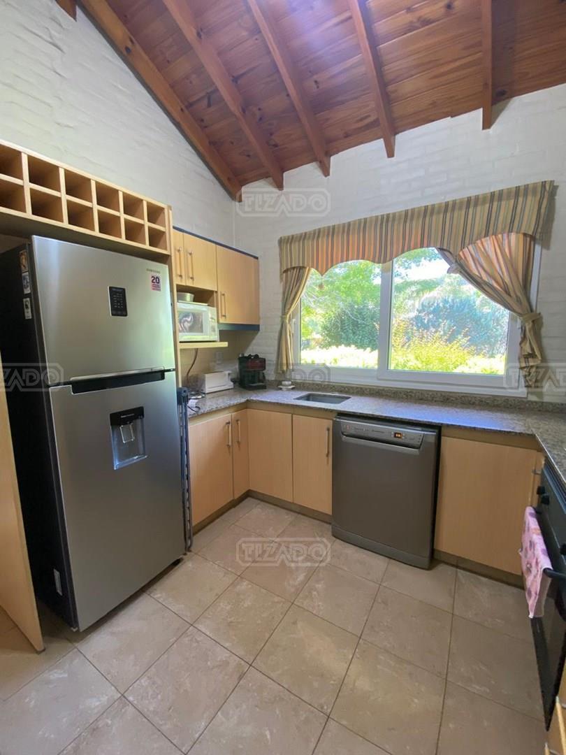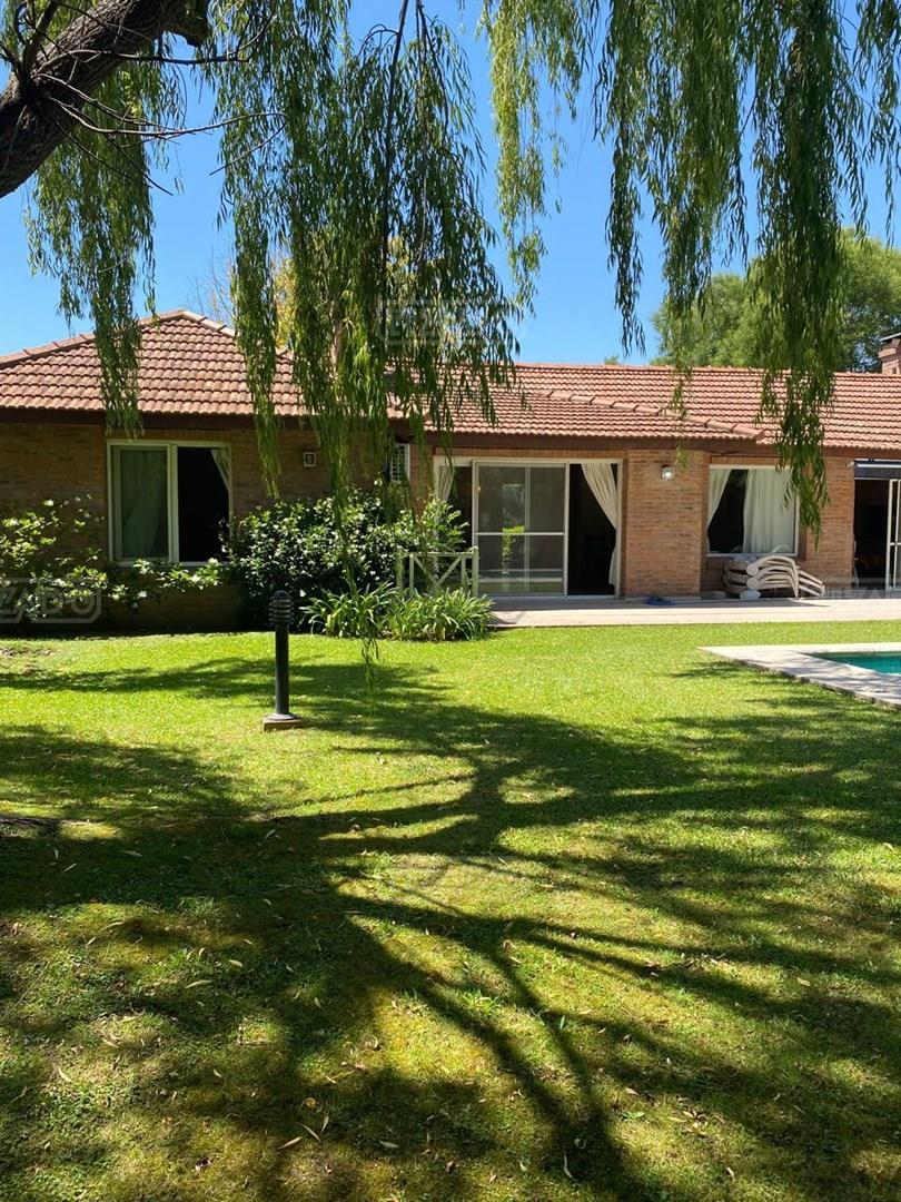 ALQUILER CON MUEBLES: Propiedad desarrollada en una sola planta. Living comedor amplio, Cocina con acceso secundario. 3 comodos dormitorios, uno de ellos en suite con vestidor y vaño. los otros dos con placard. Baño completo. Dos placard de guardado en pasillo hacia los dormitorios. Lavadero con baño y cuartito de guardado. Quincho c/ parrilla. Piscina calefaccionada de 9x4. Calefaccion por AA en living, hogar y losa radiante. Ventiladores de techo en dormitorios. Alquiler anual: u$s 1.500 + exp + munic, pago anual por adelantado. Consultar por pago mensual* Alquiler de temporada: 01/01/2026 al 28/02/2026 u$s 5.000. exp inlcuidas. Club House exclusivo de estilo americano, con confitería, vestuarios y salón de usos múltiples para fiestas y eventos sociales, piscina, 2 canchas de tenis, canchas de fútbol, voley y hockey, Vigilancia las 24 hs, Calles interiores asfaltadas, amplias avenidas perimetrales, Agua corriente y electricidad subterránea, Red cloaca interna y red de gas. Prestigioso colegio bilingüe: Sworn College. *Las medidas, metrajes y antigüedad consignados en esta ficha son aproximados*