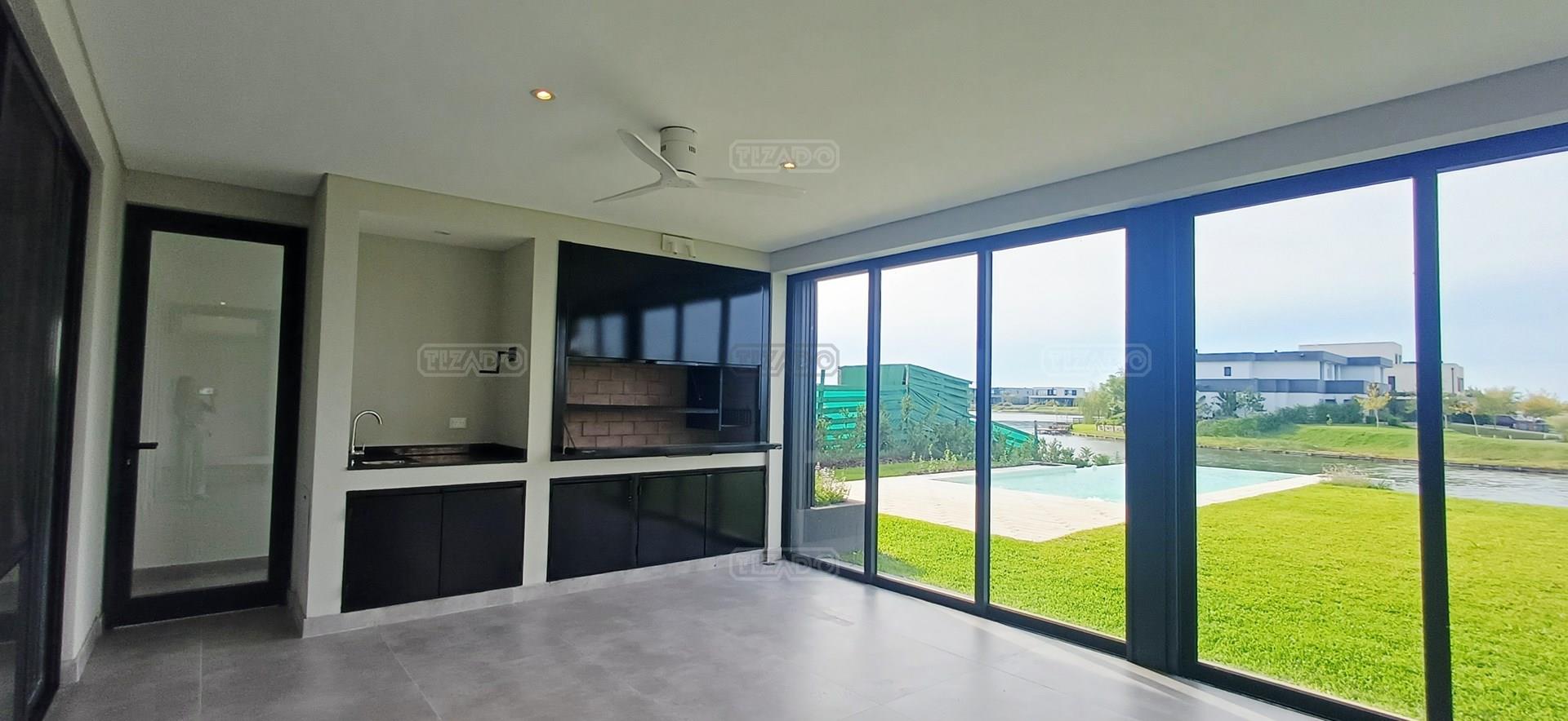 Casa en Alquiler Anual Costas – Puertos del Lago | Vista a la laguna Excelente propiedad desarrollada en dos plantas sobre un lote de 950 m², con 312 m² construidos, con hermosa vista a la laguna. En planta baja, la vivienda ofrece un amplio y luminoso living-comedor con cocina integrada, diseñado para disfrutar de espacios modernos y funcionales. Cuenta además con un family/playroom con vistas abiertas a la laguna, escritorio al frente, baño completo, dependencia de servicio con baño, lavadero independiente, baulera y generoso espacio de guardado con alacenas. La galería, totalmente cerrada con sistema de vidrios rebatibles, se presenta como un ambiente ideal para todo el año, equipada con parrilla con guillotina, aire acondicionado, ventiladores y chimenea. Este espacio se integra al jardín parquizado con piscina, logrando una conexión perfecta entre interior y exterior. En planta alta se desarrollan cuatro dormitorios, dos de ellos en suite. La master suite se destaca por su privilegiada vista a la laguna, amplio vestidor con iluminación natural y baño compartimentado. El sector se completa con un hall distribuidor que incorpora un espacio ideal para escritorio. La propiedad cuenta con calefacción por caldera dual, aire acondicionado en todos los ambientes y cortinas blackout, garantizando confort y eficiencia en cada espacio. Las expensas incluyen el acceso al Club Puertos, agua de red y de riego. Aparte se abonan los impuestos municipales y la proporción correspondiente de ARBA (valores sujetos a modificación) ¡Vení a conocerlo, coordina una visita! Tizado, Inmobiliaria OFICIAL de Puertos.