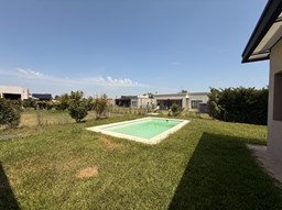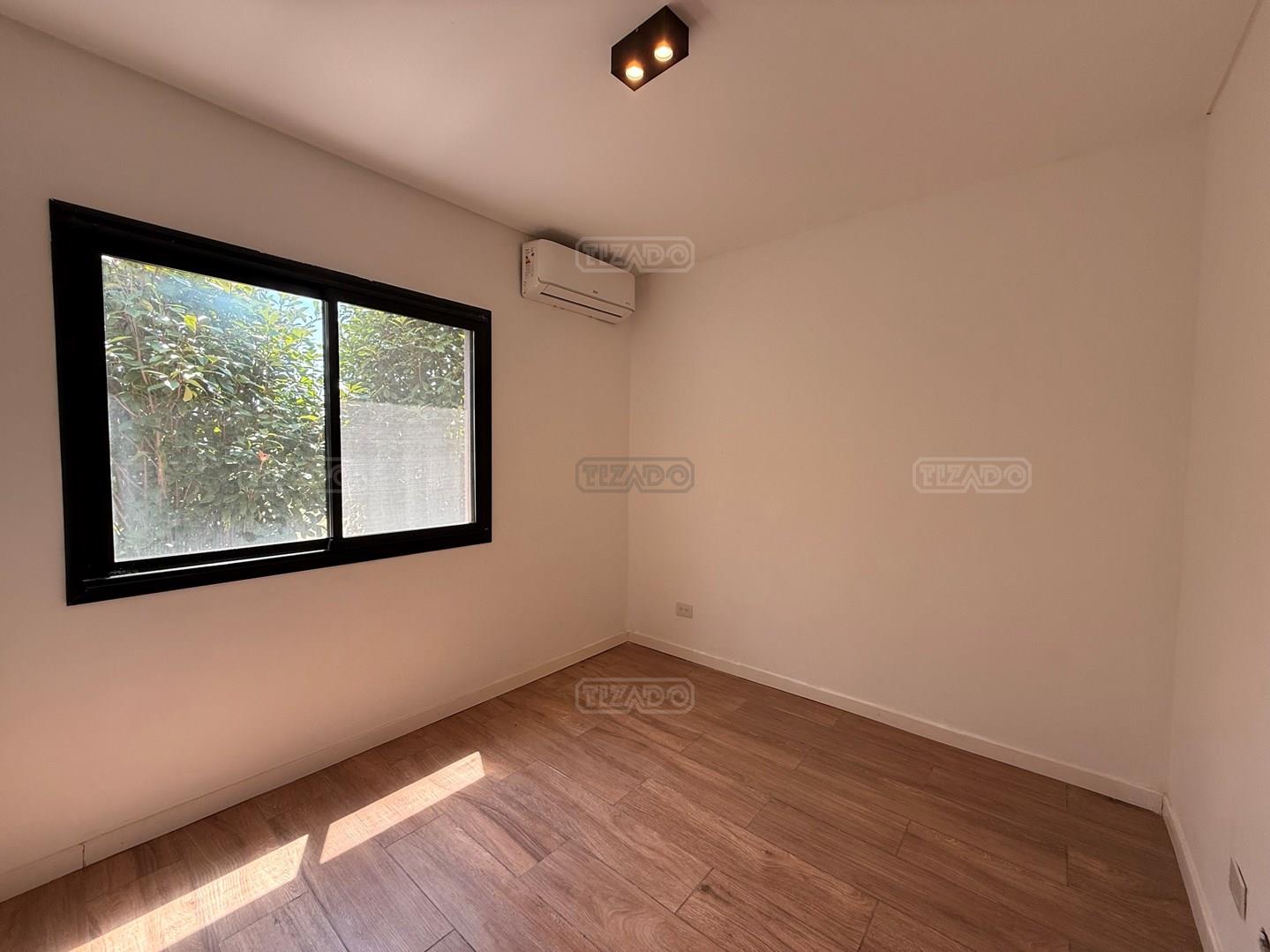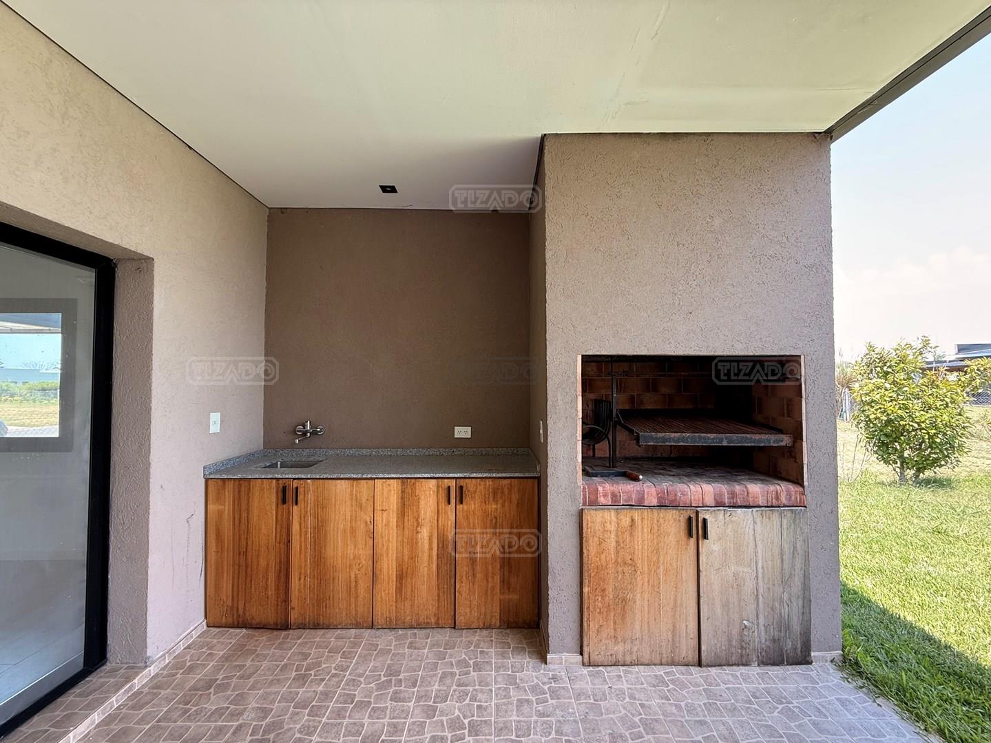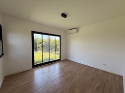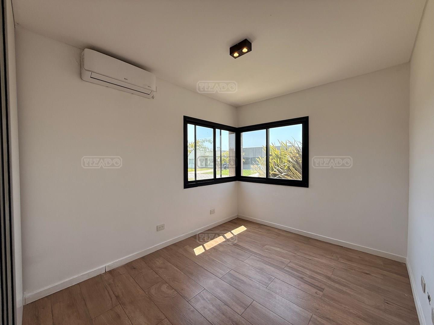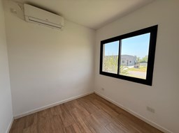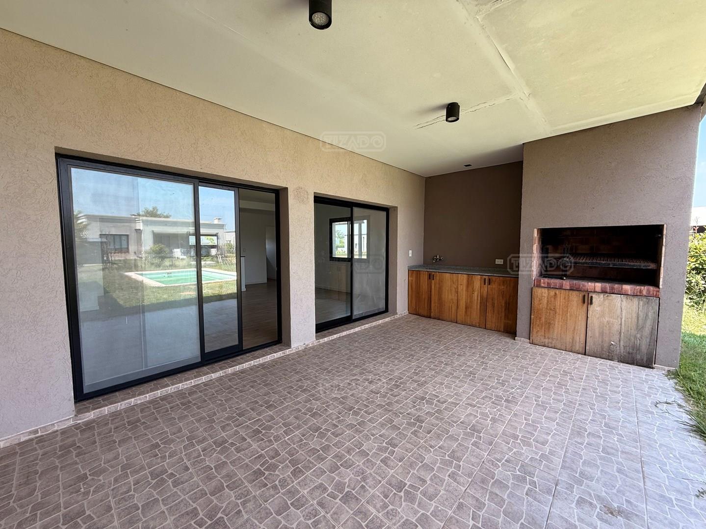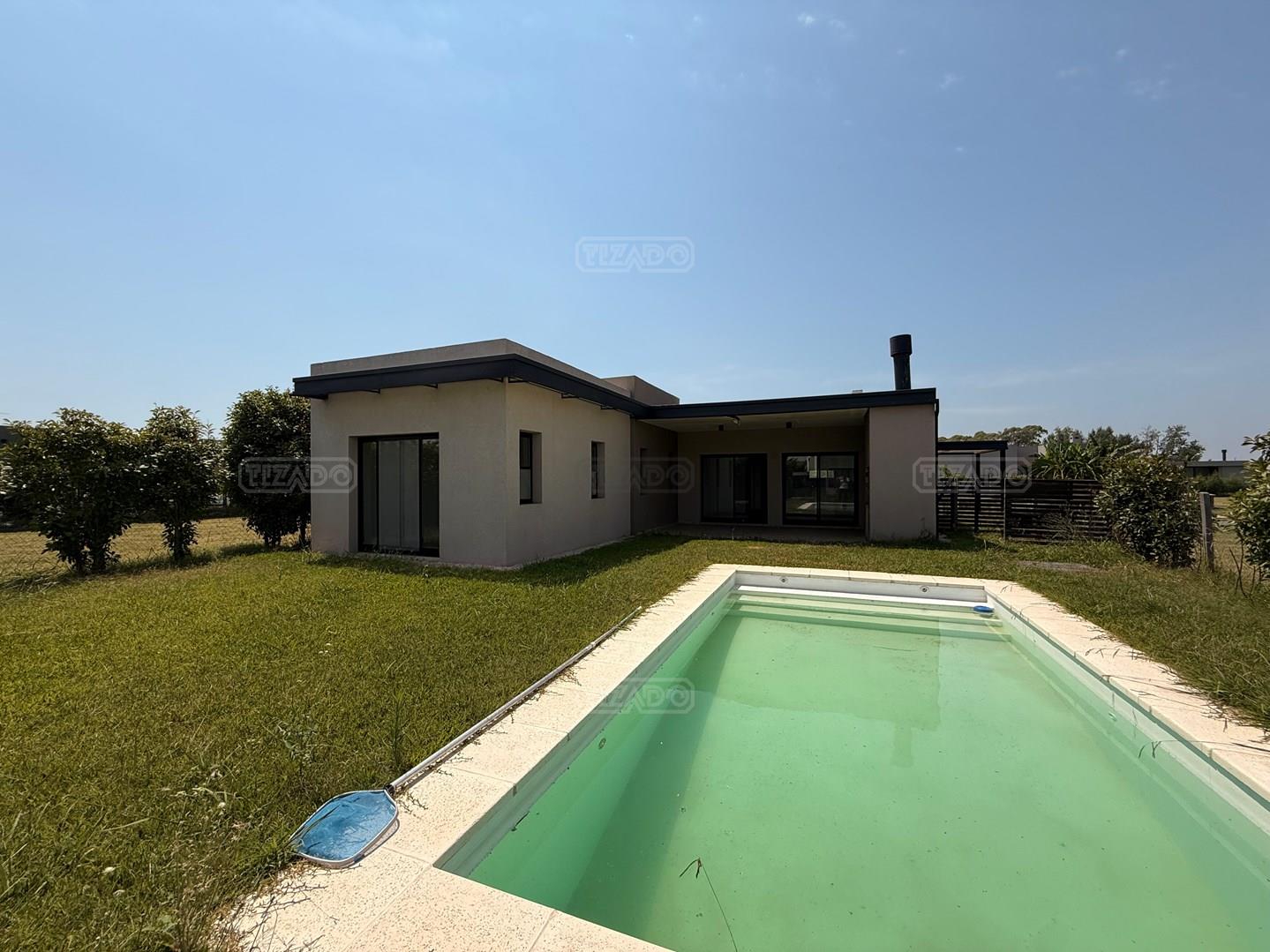 Casa en alquiler en San Ramón, Pilar del Este, con pileta. Desarrollada en una planta, cuenta con cocina con barra, living comedor, lavadero y escritorio. Dispone de tres dormitorios y tres baños: un toilette de recepción, un baño completo para las dos habitaciones secundarias y un baño en la habitación principal en suite. Exterior con galería y parrilla, jardín y pileta. Equipada con aire acondicionado frío/calor en todos los ambientes, calefacción por losa radiante, aberturas DVH y pisos de porcelanato. Ubicada en barrio cerrado con seguridad y buen acceso.