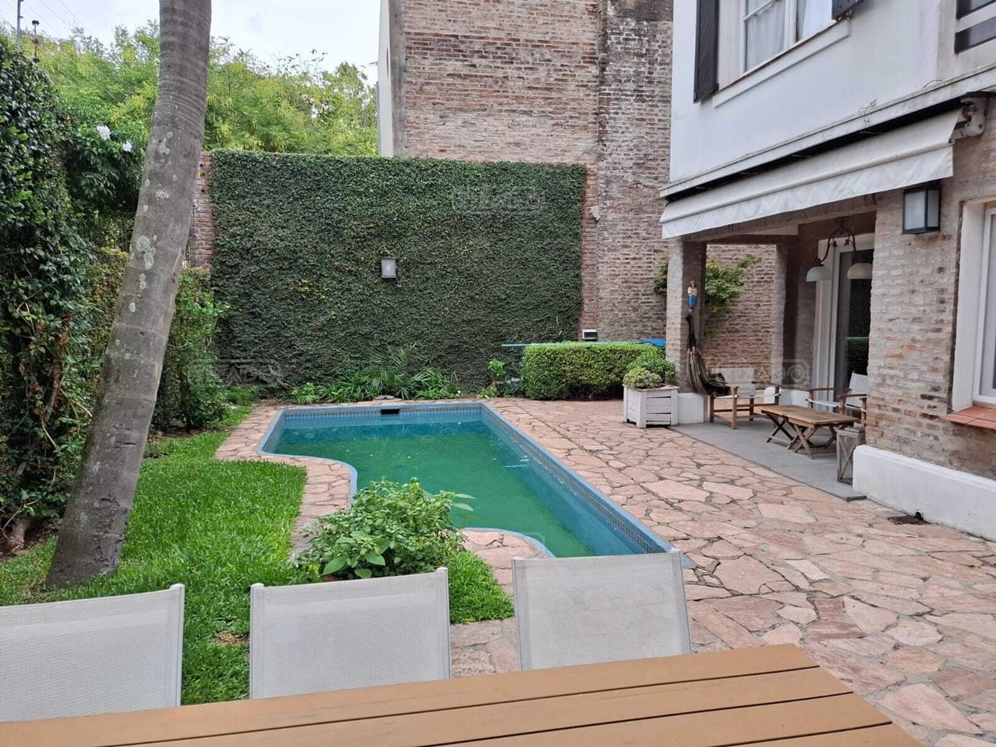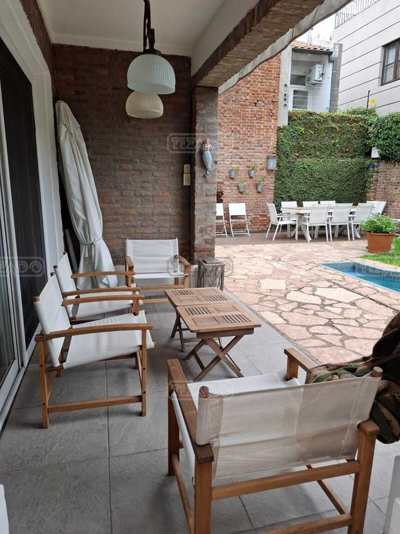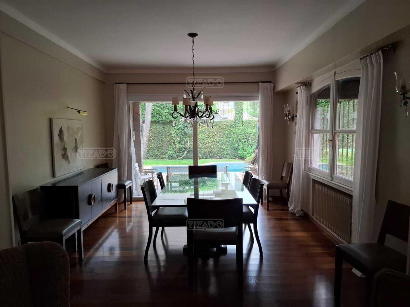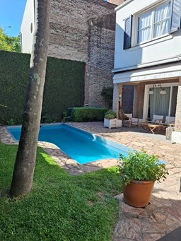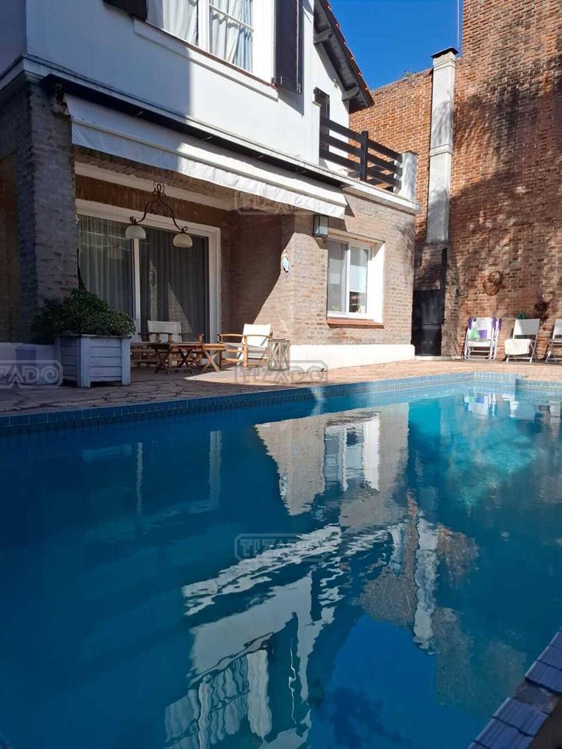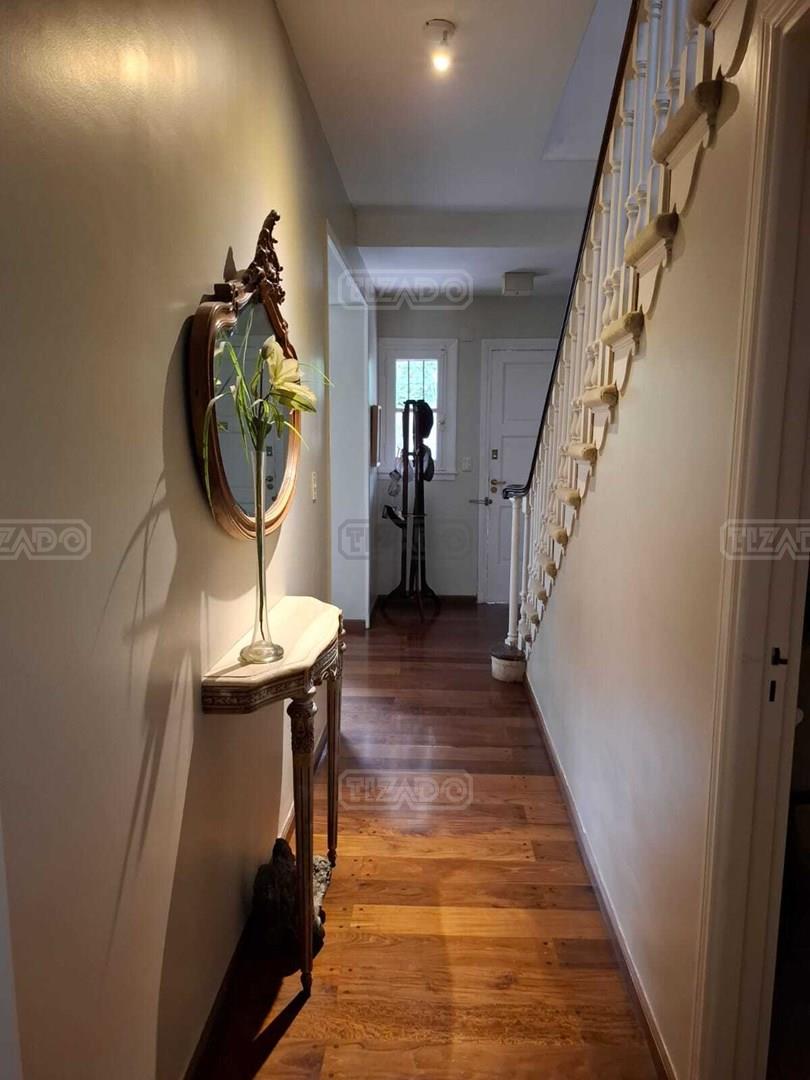Excelente casa ubicada en la mejor zona de Acassuso, Libertador al rio, sobre lote de 300 m2, unico en su tipo. En P.B: Hall de acceso, living/comedor luminoso de grandes dimensiones con hogar a leña, salida a la galería y pileta (Abertura corrediza con DVH), Toilette de recepción y cocina comedor diario con salida al lavadero y dependencia de servicio (o 4° dormitorio). Garage con porton automatico basculante. Amplio retiro lateral hasta el fondo de la propiedad. Pisos de lapacho tarugado. P.A: Hall intimo, 2 dormitorios con placards y un baño completo, Suite principal de grandes dimensiones con salida a una terraza y baño completo. Todos los ambientes con aire acondicionado.