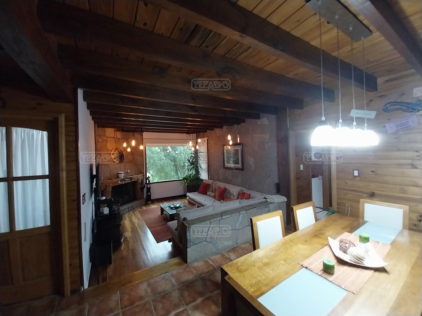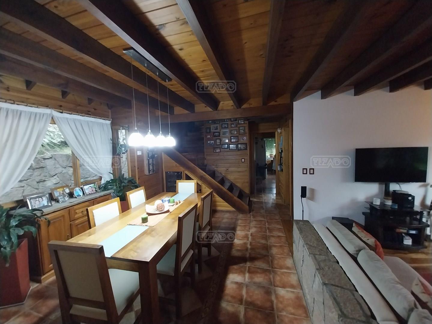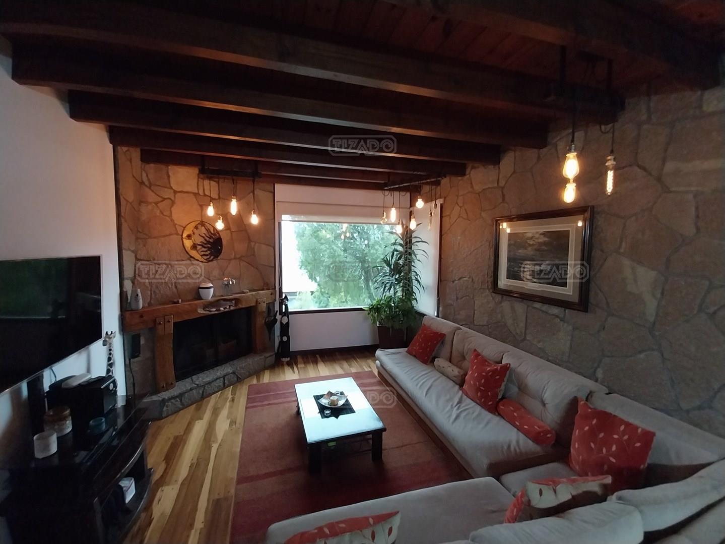 Casa en dos plantas, la propiedad se destaca por sus cómodos espacios, su funcionalidad y un entorno natural totalmente parquizado, con muy lindas vistas desde todos sus ambientes. Al ingresar, un hall frío te recibe y distribuye hacia ambos sectores de la casa. A la derecha, se accede a una amplia y muy cómoda cocina con comedor diario, luminosa y práctica para el uso cotidiano. Desde allí, se conecta directamente con el lavadero, y también con la escalera que desciende hacia la cochera cubierta, otorgando una circulación interna muy conveniente. A la izquierda del hall frío, se ingresa al living comedor en desnivel, un ambiente cálido y de gran presencia, equipado con hogar a leña, ideal para disfrutar en familia. Continuando por el pasillo, se encuentran dos dormitorios en planta baja, ambos de buenas dimensiones, junto a un baño completo que da servicio a esta planta. En la planta alta, la casa ofrece un dormitorio principal en suite, amplio, luminoso y perfectamente independiente, con baño privado y vestidor, otorgando un espacio de privacidad y confort. La vivienda está rodeada por un jardín hermoso, totalmente parquizado, que realza el carácter residencial de la propiedad y crea un entorno tranquilo y agradable. Una casa sólida, funcional y con una distribución ideal para la vida diaria, ubicada en un barrio residencial muy bien consolidado. Una oportunidad imperdible.