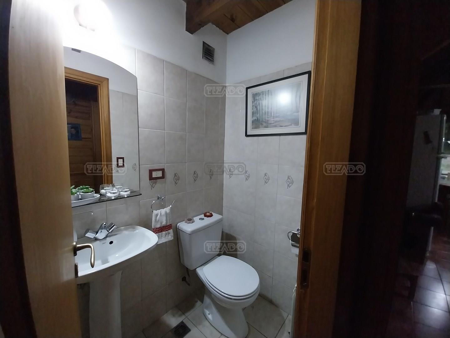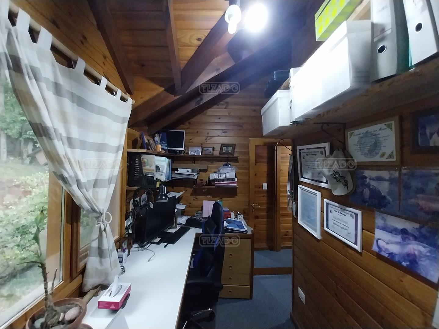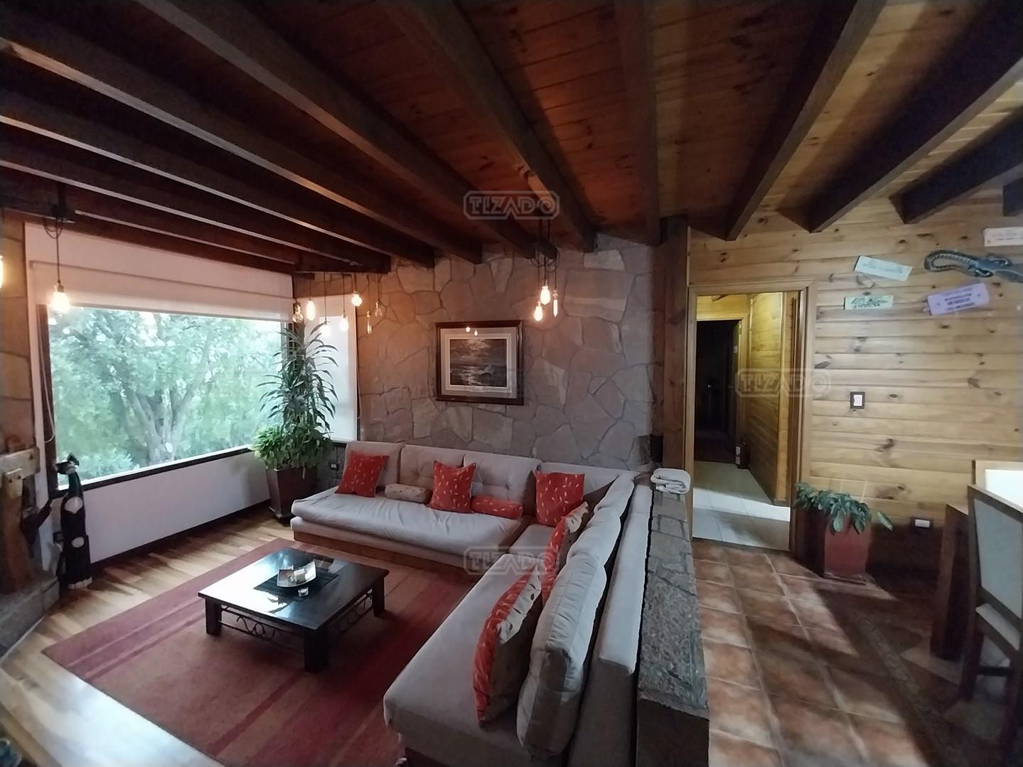 Casa en dos plantas, la propiedad se destaca por sus cómodos espacios, su funcionalidad y un entorno natural totalmente parquizado, con muy lindas vistas desde todos sus ambientes. Al ingresar, un hall frío te recibe y distribuye hacia ambos sectores de la casa. A la derecha, se accede a una amplia y muy cómoda cocina con comedor diario, luminosa y práctica para el uso cotidiano. Desde allí, se conecta directamente con el lavadero, y también con la escalera que desciende hacia la cochera cubierta, otorgando una circulación interna muy conveniente. A la izquierda del hall frío, se ingresa al living comedor en desnivel, un ambiente cálido y de gran presencia, equipado con hogar a leña, ideal para disfrutar en familia. Continuando por el pasillo, se encuentran dos dormitorios en planta baja, ambos de buenas dimensiones, junto a un baño completo que da servicio a esta planta. En la planta alta, la casa ofrece un dormitorio principal en suite, amplio, luminoso y perfectamente independiente, con baño privado y vestidor, otorgando un espacio de privacidad y confort. La vivienda está rodeada por un jardín hermoso, totalmente parquizado, que realza el carácter residencial de la propiedad y crea un entorno tranquilo y agradable. Una casa sólida, funcional y con una distribución ideal para la vida diaria, ubicada en un barrio residencial muy bien consolidado. Una oportunidad imperdible.