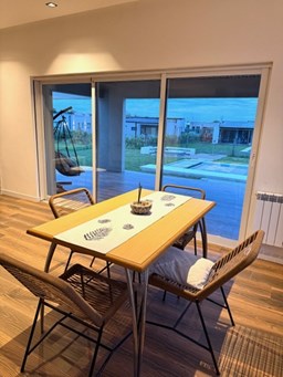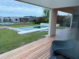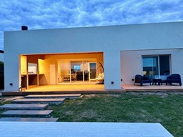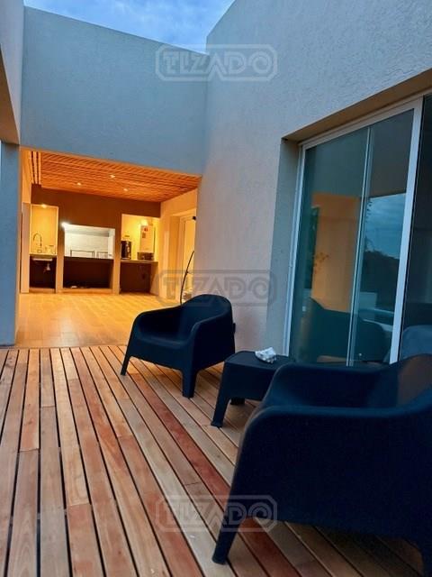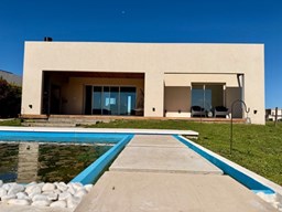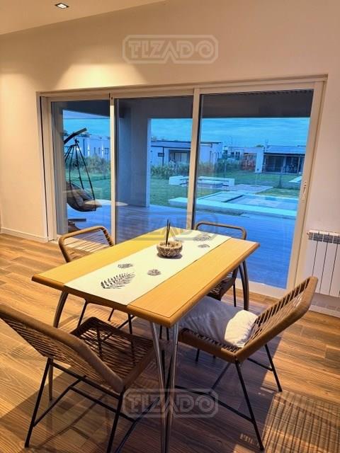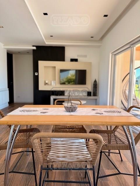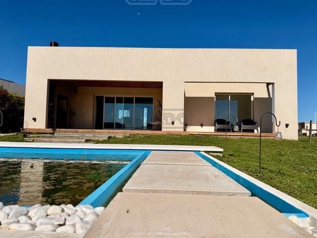 CASA DE DISEÑO A ESTRENAR ! En exclusividad Ubicada en el Area mas alta de tierras naturales, desarrollada en una planta sobre lote interno de 674 m², con frente a una amplia rotonda con espacio verdes. El acceso se realiza a través de una puerta pivotante que ofrece vistas abiertas hacia el interior y el jardín.- Todo luz por donde la mires ! El Living comedor, dispone de un gran ventanal de tres hojas con apertura total que se integran en la pared, invitando a disfrutar de la galería y el exterior- SOL Y LUNA -. Cocina semi integrada con barra desayunadora y toilette de cortesía. Para disfrutar del descanso cuenta con dos dormitorios uno de ellos con vestidor, vista abierta al jardín y pileta, baño compartimentado con toallero ventanal y ducha. En el exterior, se encuentra una atractiva galería con parrilla y zona de lavado, así como un deck para disfrutar de los atardeceres. La piscina cuenta con escalones flotantes que embellecen el espejo de agua. Una zona de fogón permite disfrutar y compartir en un entorno privilegiado. Detalle constructivos: *Preintalaciones de Tv.- *iluminación led interna y externa colocada.- *Pisos de porcellanato.- *Carpinterías de alumnio con DVH .- *Preinstalacion de AA en los ambientes.- * Calefacción por radiadores con Caldera dual marca Ariston .- *Acceso vehicular.- No pierdas la oportunidad de que sea tuya.- VENI A VISITARNOS TE ESTAMOS ESPERANDO !