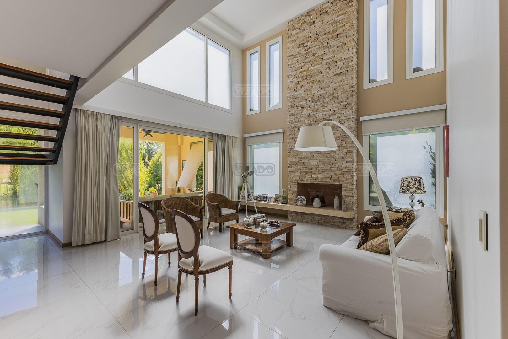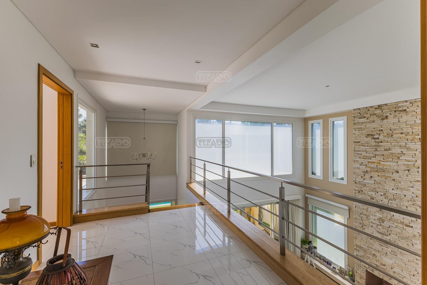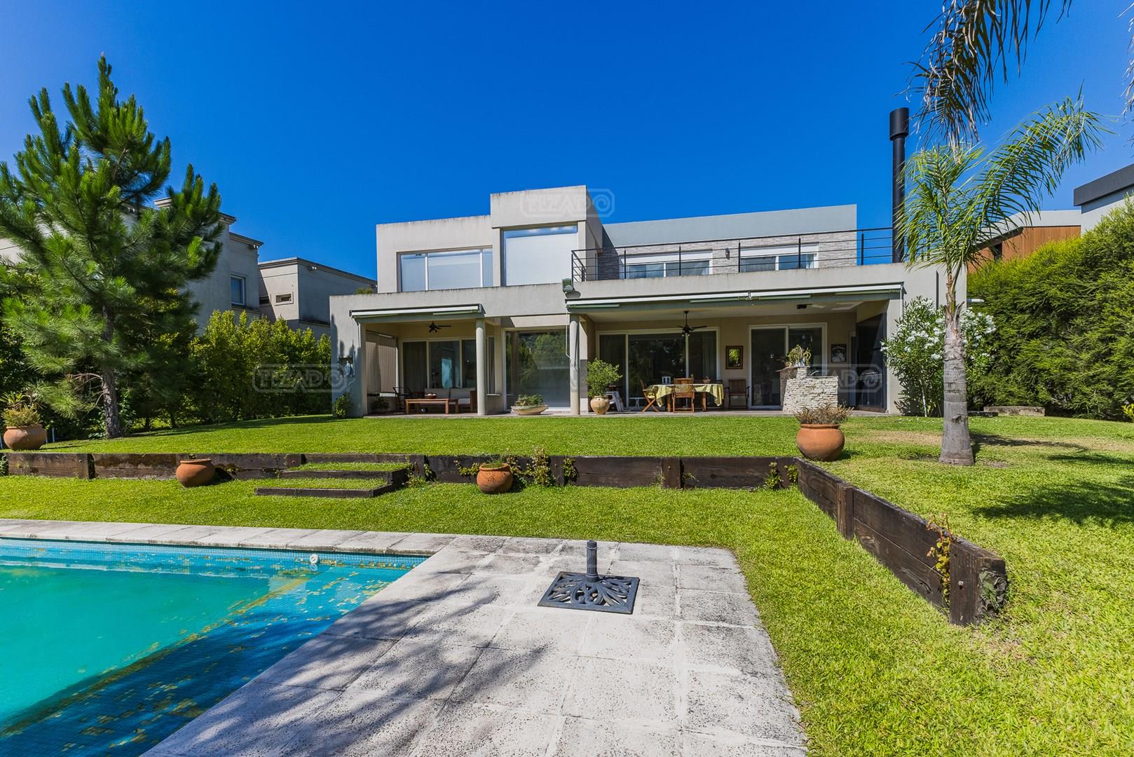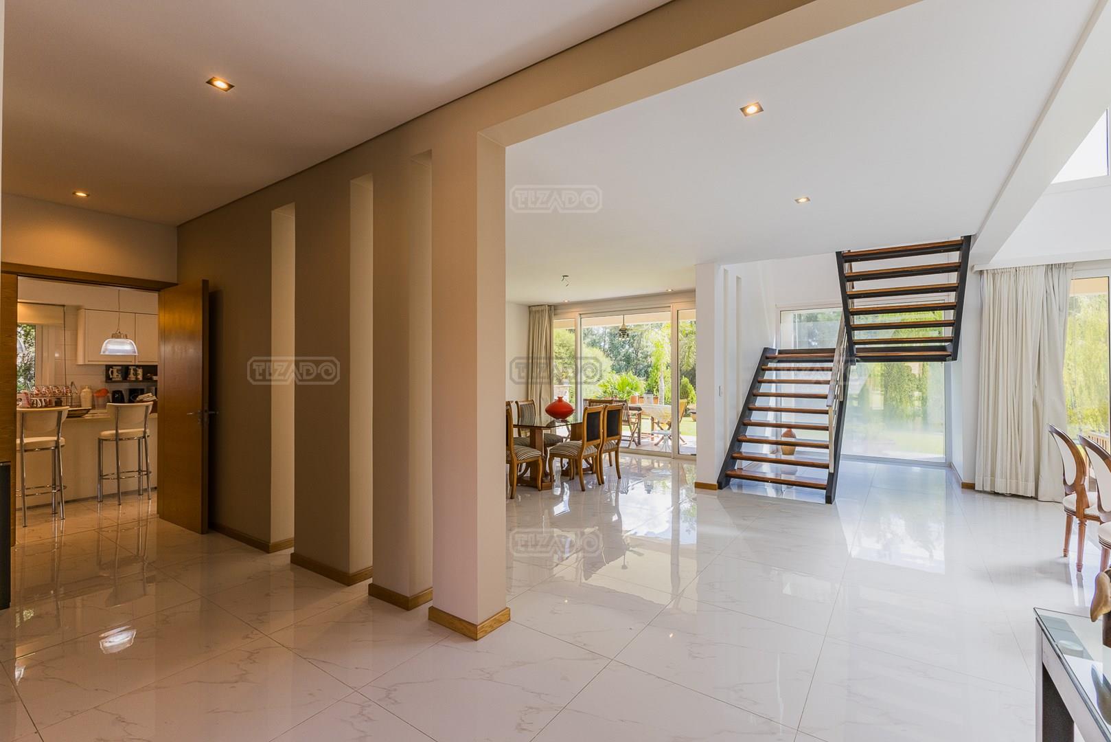 Impecable casa en Cabos del Lagos, muy luminosa y en excelente estado. Al ingresar hall de ingreso con placard de recepción, amplio y luminoso living en doble altura, cuenta con hermosa chimenea revestida en piedra. Elegante Comedor con hermosas vistas al jardin. Cocina con isla y gran espacio de guardado, horno y anafes semi industriales, muebles laqueados color blanco, semi integrada al comedor diario. Toilette de recepción. Gran escritorio o sala de estar en Planta Baja. Dependencia de servicio con baño completo y acceso al lavadero. En Planta Alta hall de distribución, amplia Master Suite con salida a gran balcón con vista al lago. Dos dormitorios secundarios que comparten un baño. En el exterior galeria apaisada con parrilla, abarcando todo el ancho de la casa. Hermoso jardín parquizado y piscina revestida con venecitas. La orientacion Oeste de su galeria y jardin, asegura el sol desde el mediodía hasta el atardecer, ideal para disfrutar de tardes cálidas y puestas de sol increibles. Garage semicubierto para 2 autos. La calefacción de la casa es por losa radiante y cuenta también con aires frio/ calor. No te pierdas esta oportunidad! Coordina hoy una visita hoy mismo por Whatsapp! El barrio Cabos del lago cuanta con cancha de tenis, gimnasio con maquinaria de ultima generación, vestuarios con sauna, SUM con living, quincho, área de juego para niños.
