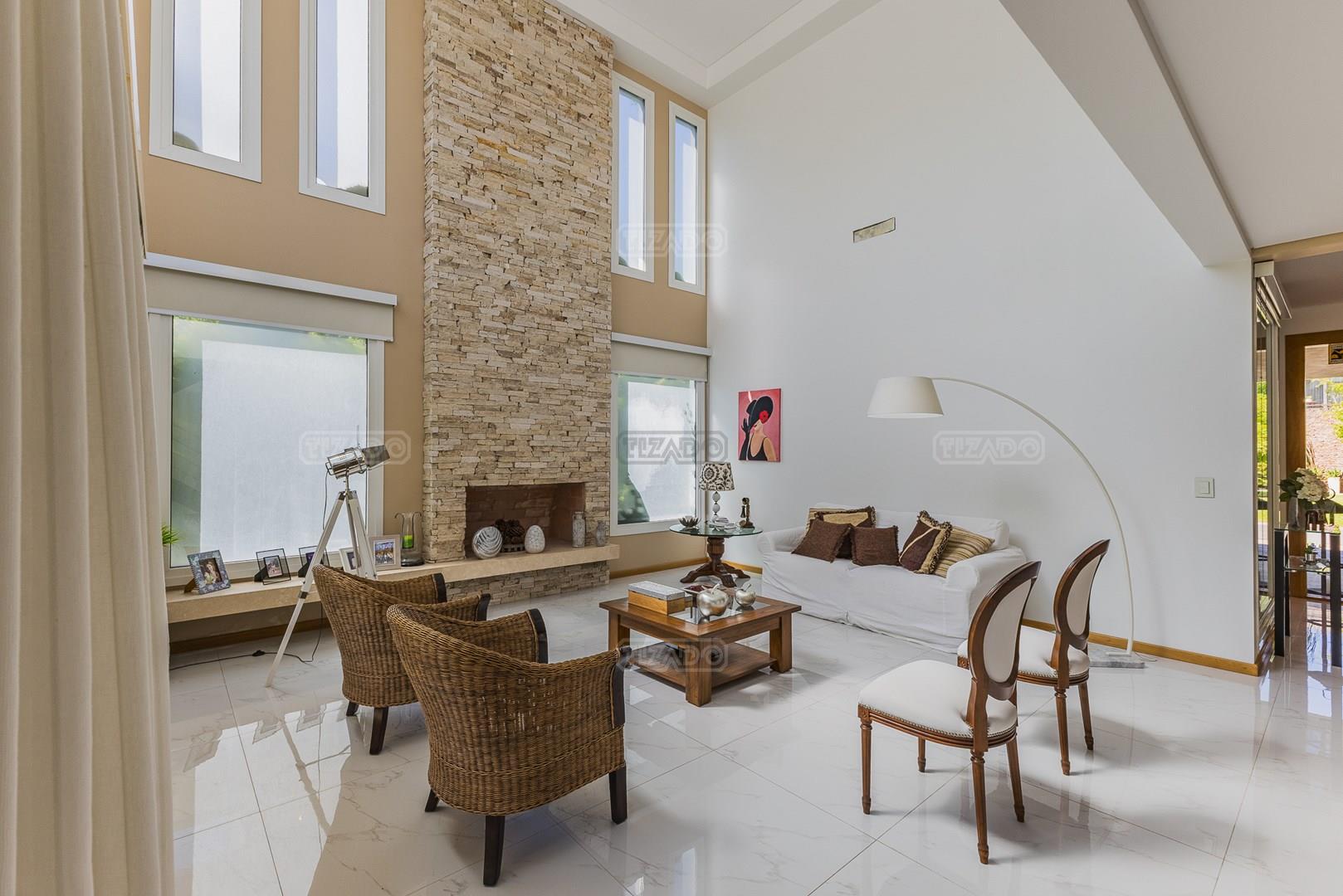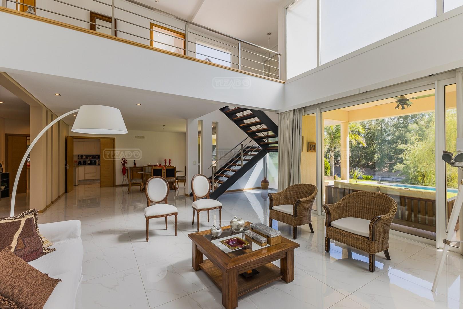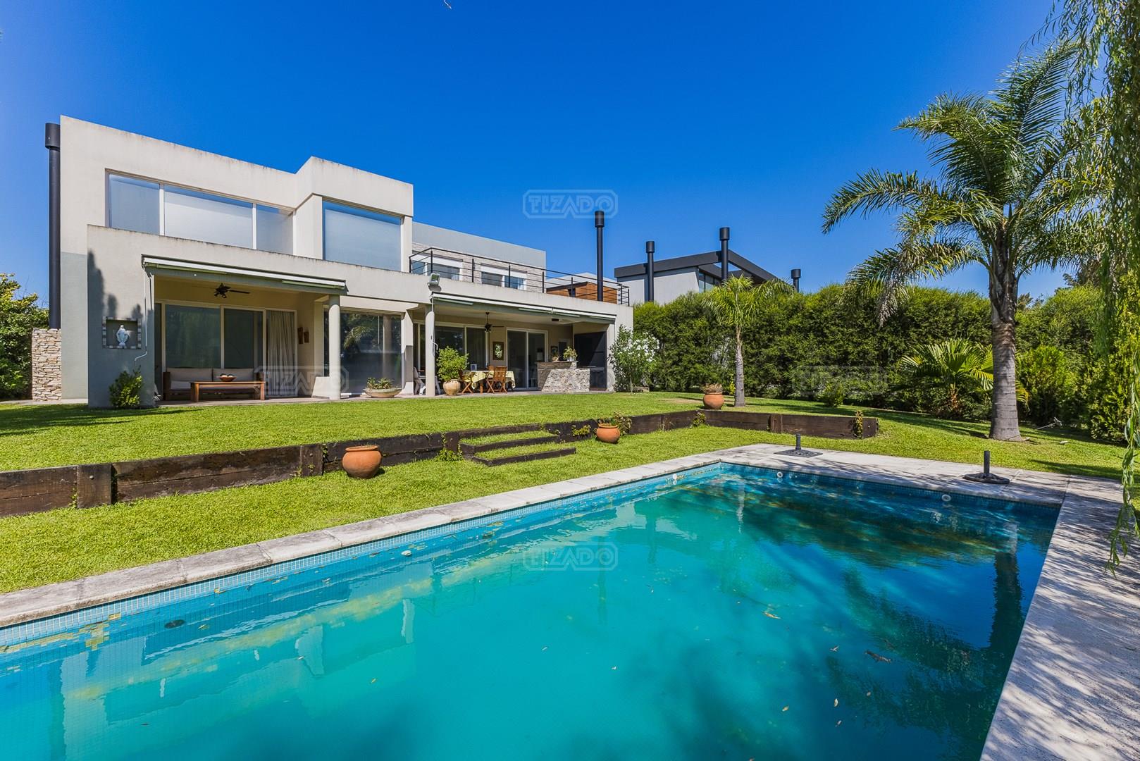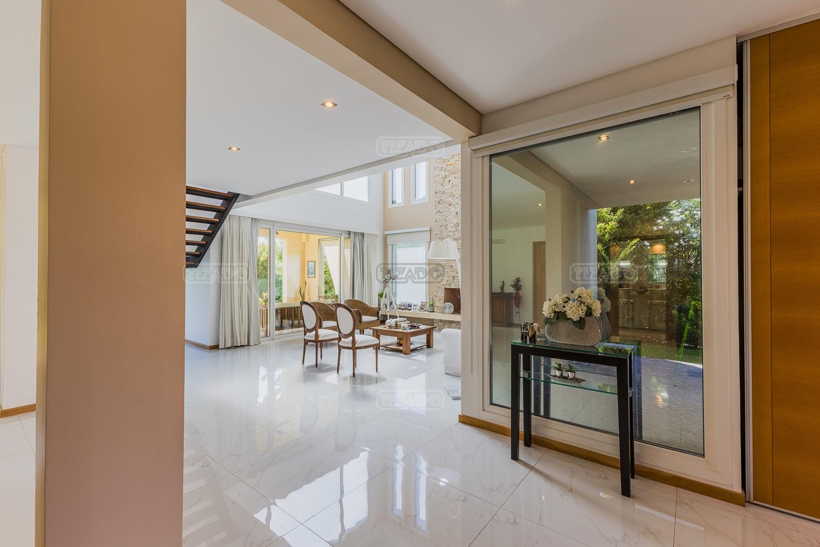 Impecable casa en Cabos del Lagos, muy luminosa y en excelente estado. Al ingresar hall de ingreso con placard de recepción, amplio y luminoso living en doble altura, cuenta con hermosa chimenea revestida en piedra. Elegante Comedor con hermosas vistas al jardin. Cocina con isla y gran espacio de guardado, horno y anafes semi industriales, muebles laqueados color blanco, semi integrada al comedor diario. Toilette de recepción. Gran escritorio o sala de estar en Planta Baja. Dependencia de servicio con baño completo y acceso al lavadero. En Planta Alta hall de distribución, amplia Master Suite con salida a gran balcón con vista al lago. Dos dormitorios secundarios que comparten un baño. En el exterior galeria apaisada con parrilla, abarcando todo el ancho de la casa. Hermoso jardín parquizado y piscina revestida con venecitas. La orientacion Oeste de su galeria y jardin, asegura el sol desde el mediodía hasta el atardecer, ideal para disfrutar de tardes cálidas y puestas de sol increibles. Garage semicubierto para 2 autos. La calefacción de la casa es por losa radiante y cuenta también con aires frio/ calor. No te pierdas esta oportunidad! Coordina hoy una visita hoy mismo por Whatsapp! El barrio Cabos del lago cuanta con cancha de tenis, gimnasio con maquinaria de ultima generación, vestuarios con sauna, SUM con living, quincho, área de juego para niños.