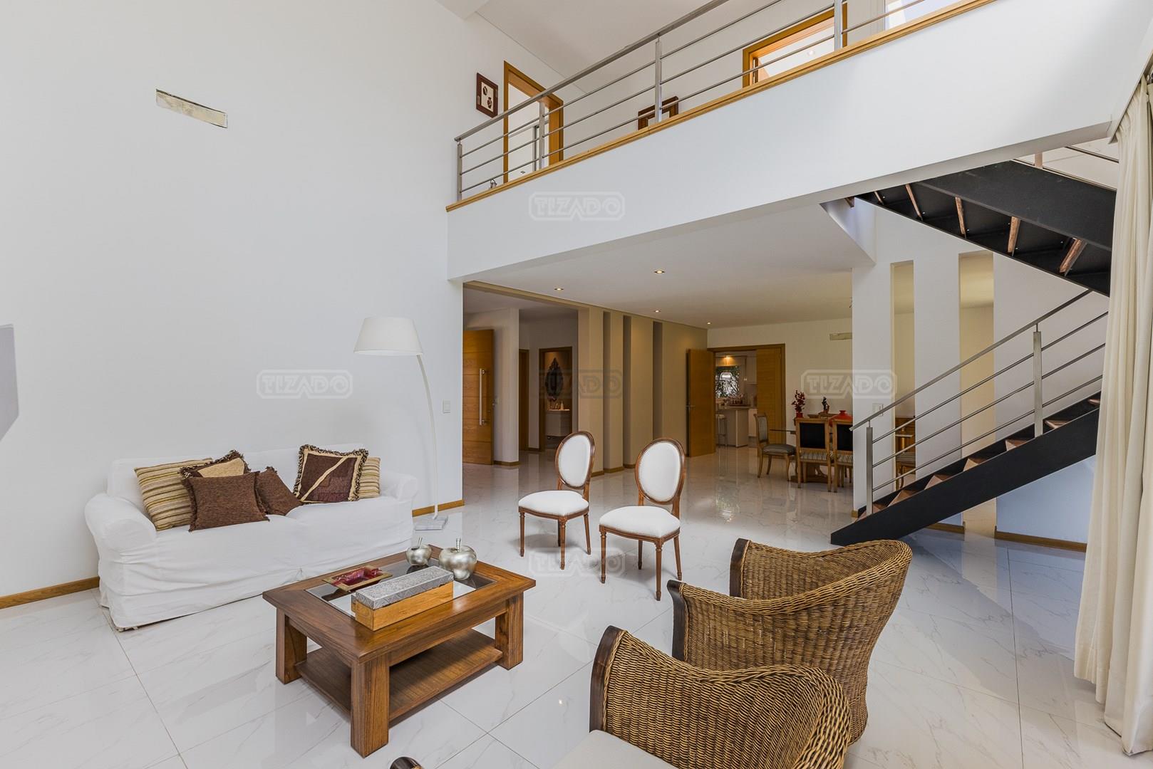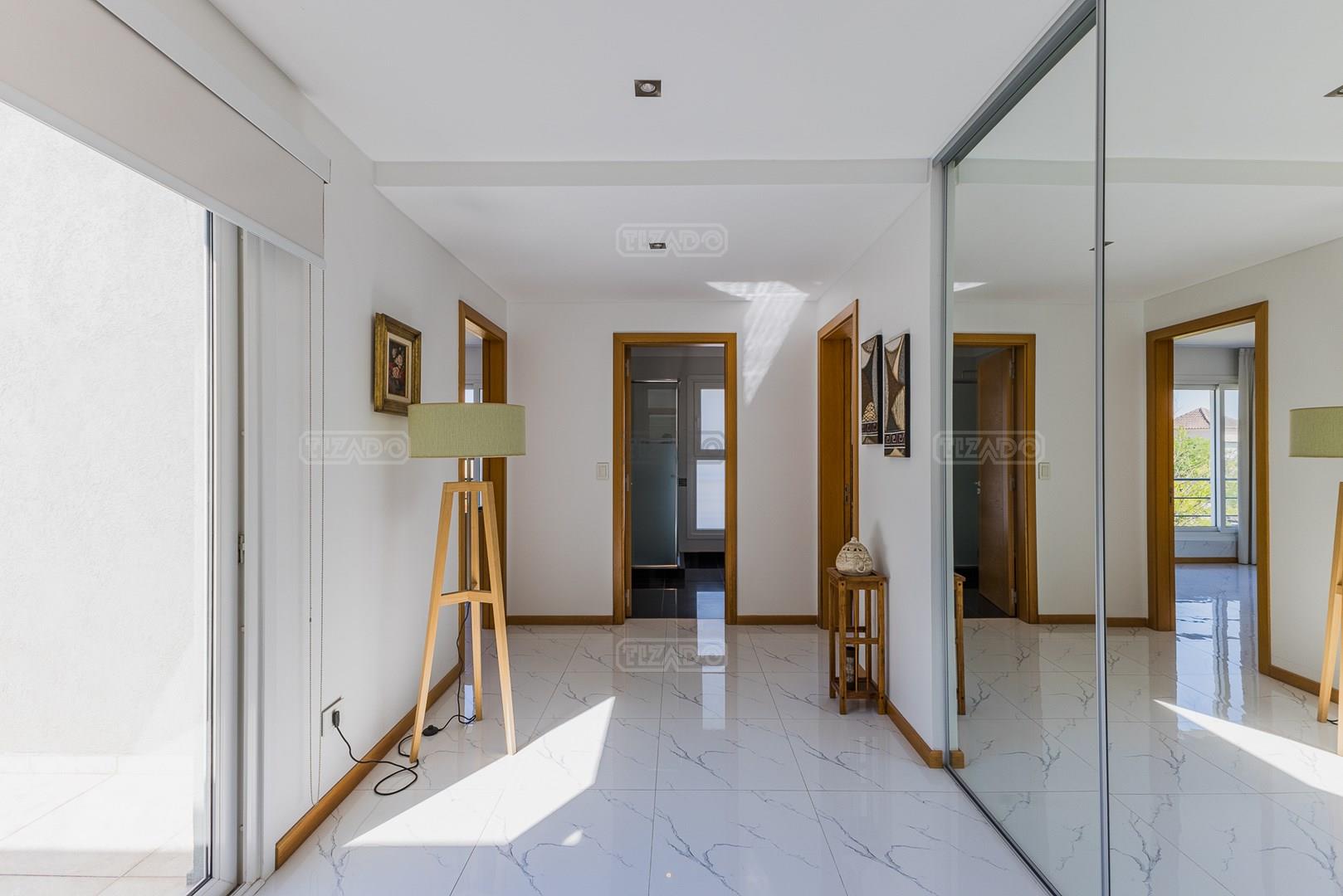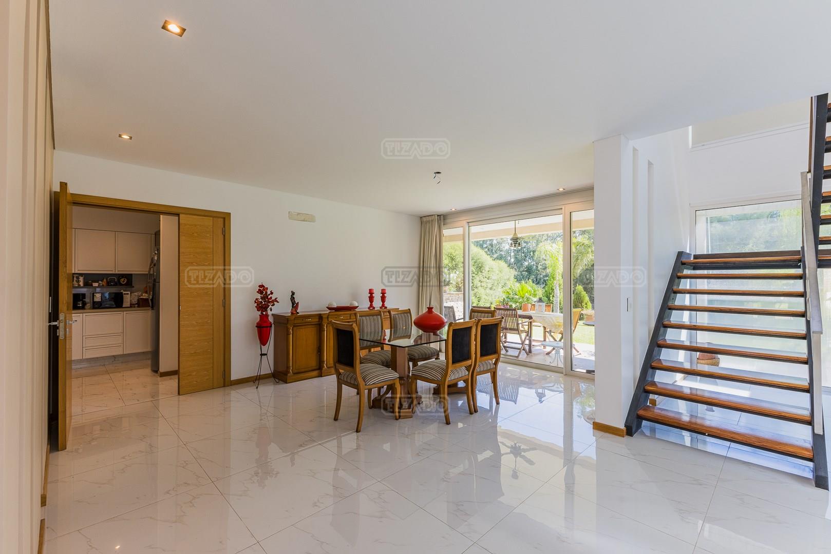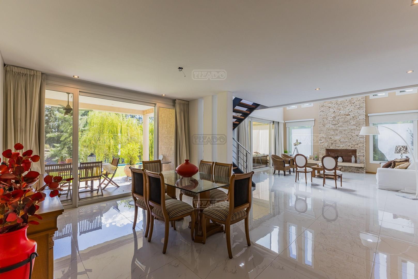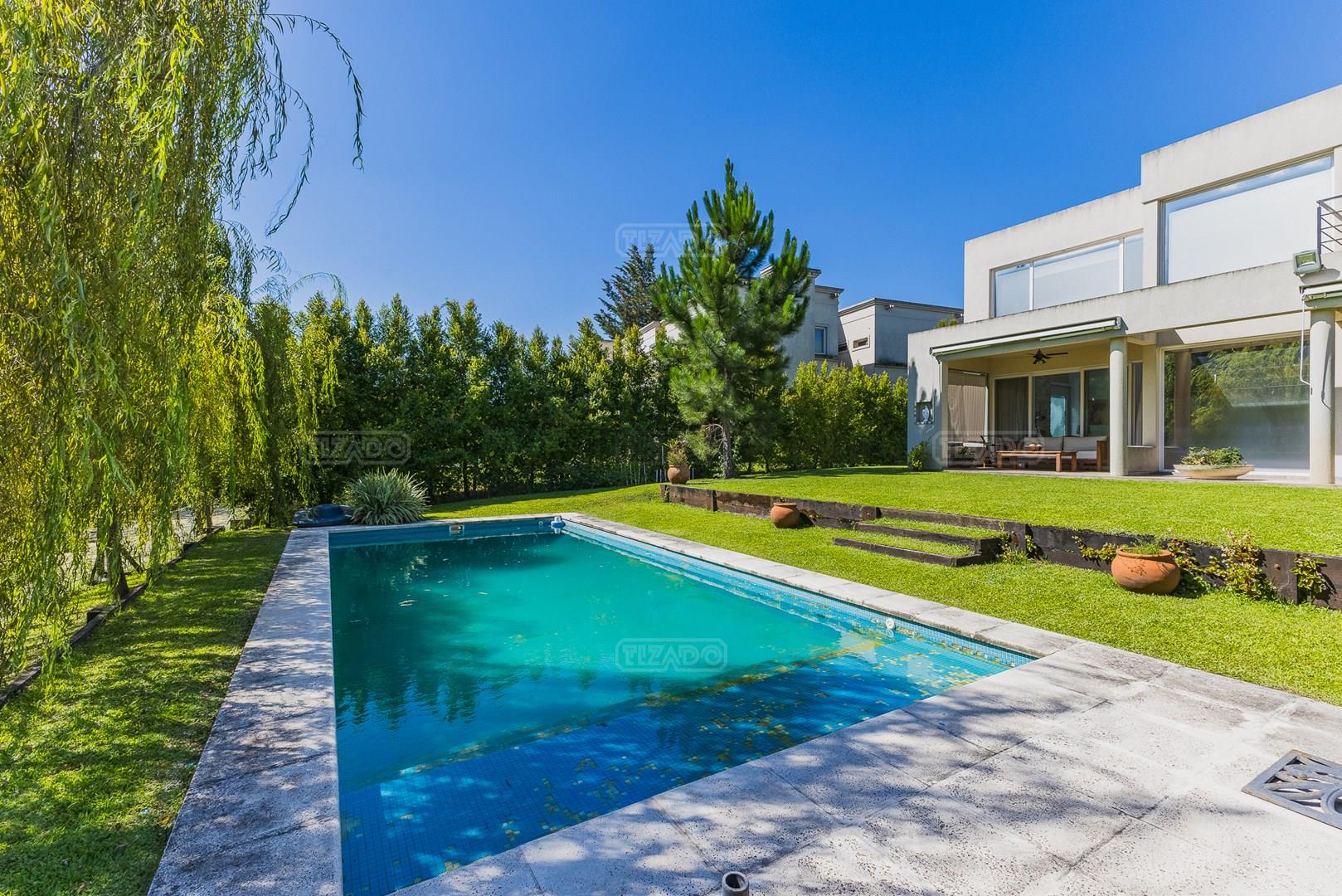 Impecable casa en Cabos del Lagos, muy luminosa y en excelente estado. Al ingresar hall de ingreso con placard de recepción, amplio y luminoso living en doble altura, cuenta con hermosa chimenea revestida en piedra. Elegante Comedor con hermosas vistas al jardin. Cocina con isla y gran espacio de guardado, horno y anafes semi industriales, muebles laqueados color blanco, semi integrada al comedor diario. Toilette de recepción. Gran escritorio o sala de estar en Planta Baja. Dependencia de servicio con baño completo y acceso al lavadero. En Planta Alta hall de distribución, amplia Master Suite con salida a gran balcón con vista al lago. Dos dormitorios secundarios que comparten un baño. En el exterior galeria apaisada con parrilla, abarcando todo el ancho de la casa. Hermoso jardín parquizado y piscina revestida con venecitas. La orientacion Oeste de su galeria y jardin, asegura el sol desde el mediodía hasta el atardecer, ideal para disfrutar de tardes cálidas y puestas de sol increibles. Garage semicubierto para 2 autos. La calefacción de la casa es por losa radiante y cuenta también con aires frio/ calor. No te pierdas esta oportunidad! Coordina hoy una visita hoy mismo por Whatsapp! El barrio Cabos del lago cuanta con cancha de tenis, gimnasio con maquinaria de ultima generación, vestuarios con sauna, SUM con living, quincho, área de juego para niños.