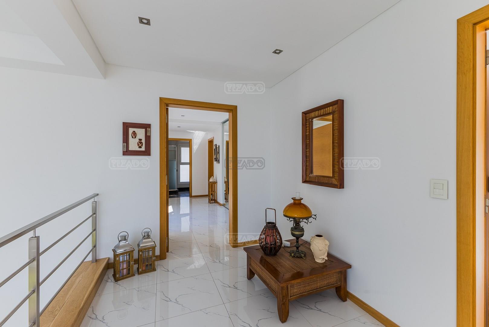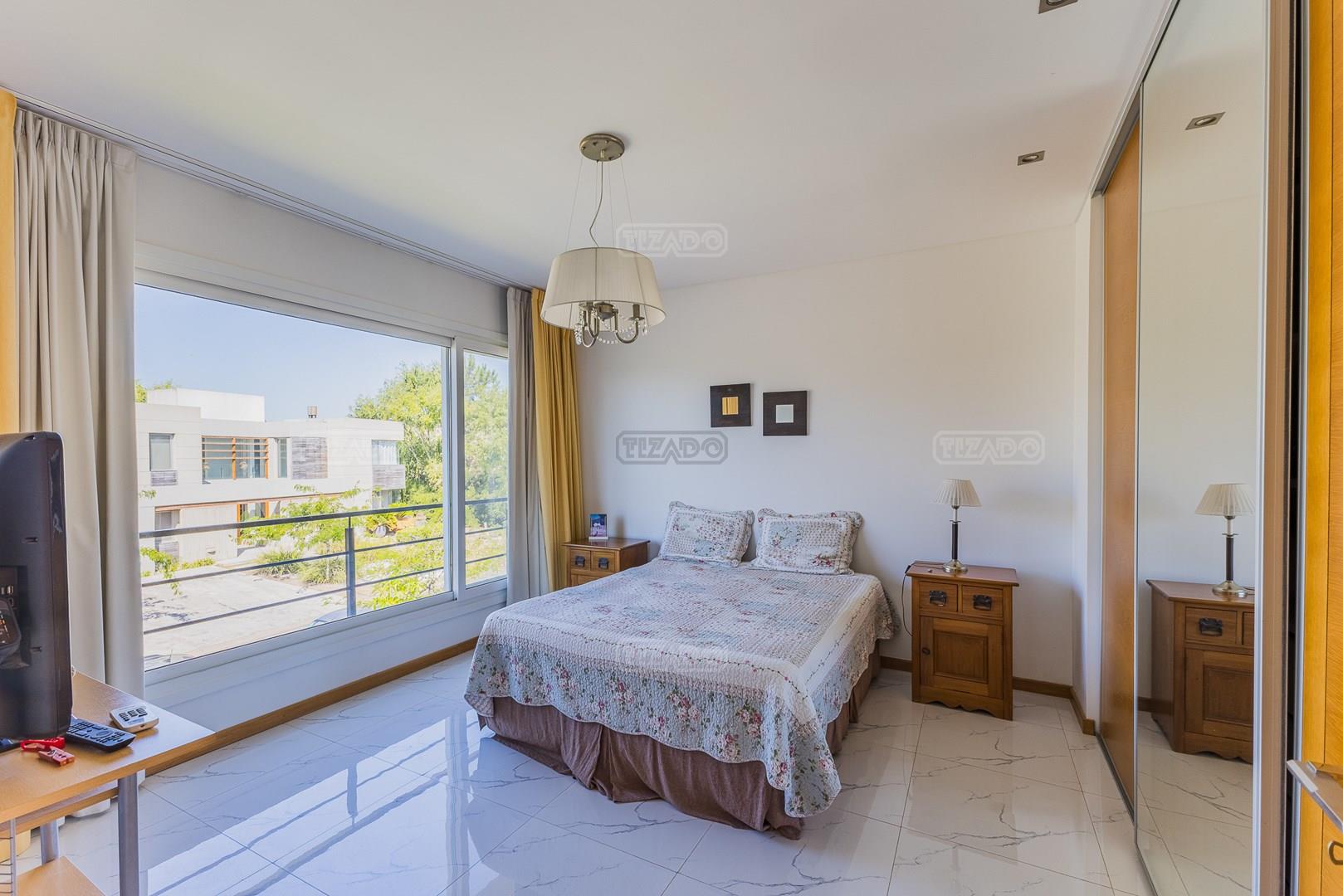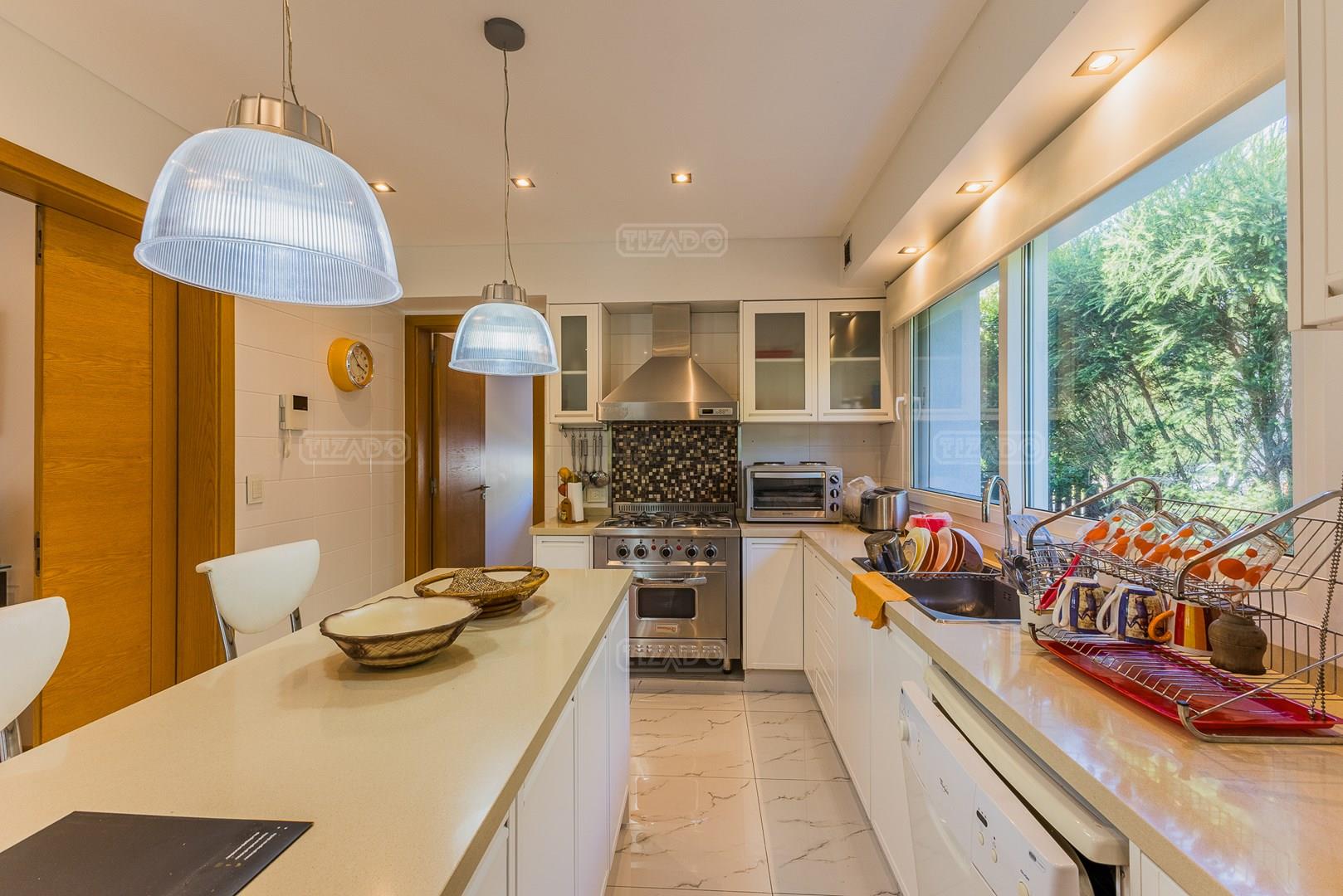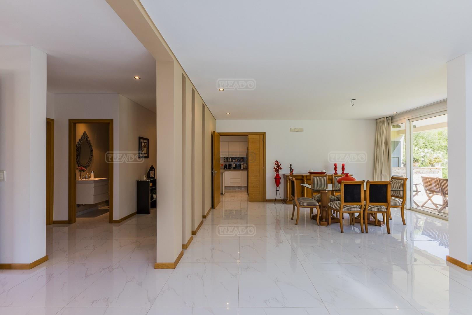 Impecable casa en Cabos del Lagos, muy luminosa y en excelente estado. Al ingresar hall de ingreso con placard de recepción, amplio y luminoso living en doble altura, cuenta con hermosa chimenea revestida en piedra. Elegante Comedor con hermosas vistas al jardin. Cocina con isla y gran espacio de guardado, horno y anafes semi industriales, muebles laqueados color blanco, semi integrada al comedor diario. Toilette de recepción. Gran escritorio o sala de estar en Planta Baja. Dependencia de servicio con baño completo y acceso al lavadero. En Planta Alta hall de distribución, amplia Master Suite con salida a gran balcón con vista al lago. Dos dormitorios secundarios que comparten un baño. En el exterior galeria apaisada con parrilla, abarcando todo el ancho de la casa. Hermoso jardín parquizado y piscina revestida con venecitas. La orientacion Oeste de su galeria y jardin, asegura el sol desde el mediodía hasta el atardecer, ideal para disfrutar de tardes cálidas y puestas de sol increibles. Garage semicubierto para 2 autos. La calefacción de la casa es por losa radiante y cuenta también con aires frio/ calor. No te pierdas esta oportunidad! Coordina hoy una visita hoy mismo por Whatsapp! El barrio Cabos del lago cuanta con cancha de tenis, gimnasio con maquinaria de ultima generación, vestuarios con sauna, SUM con living, quincho, área de juego para niños.