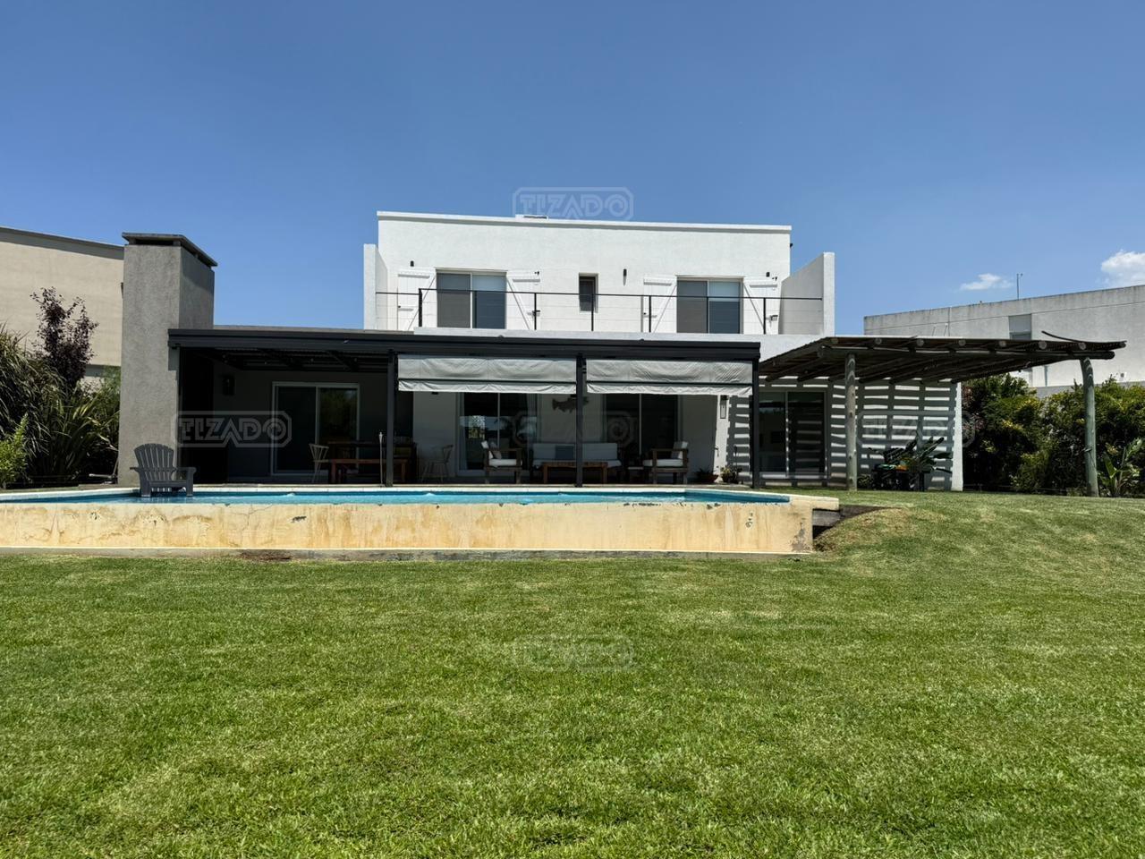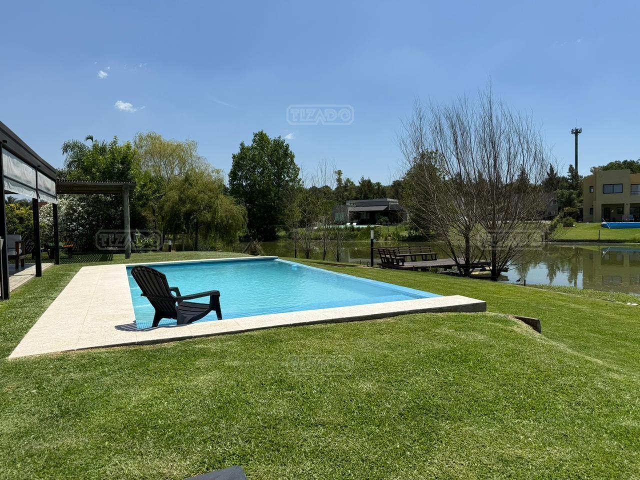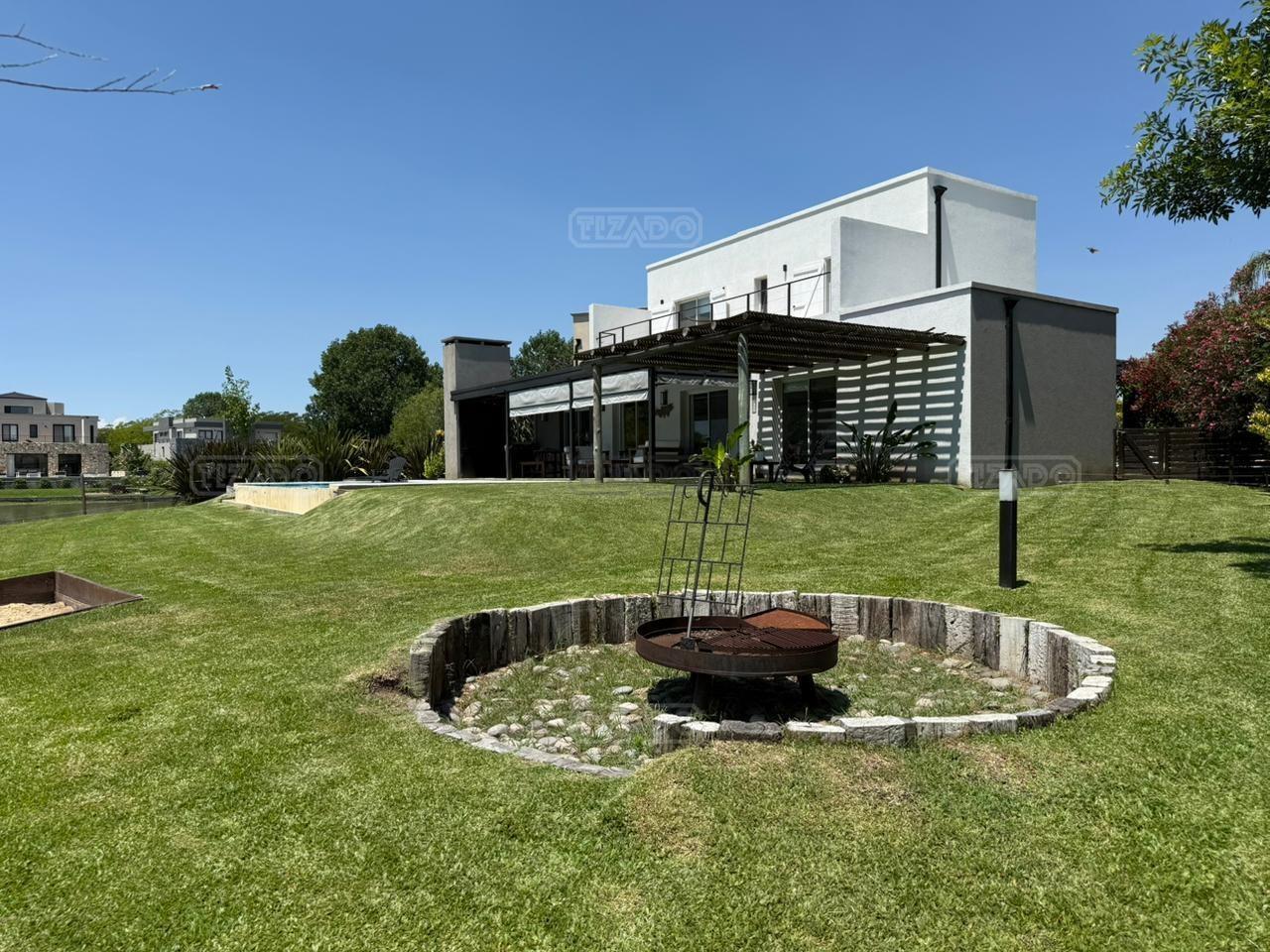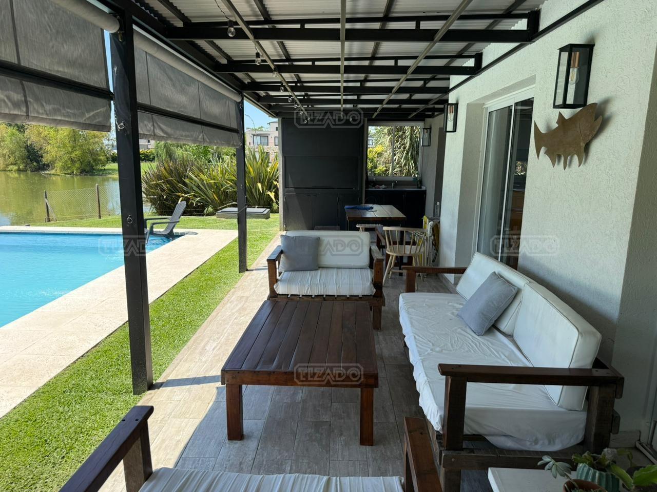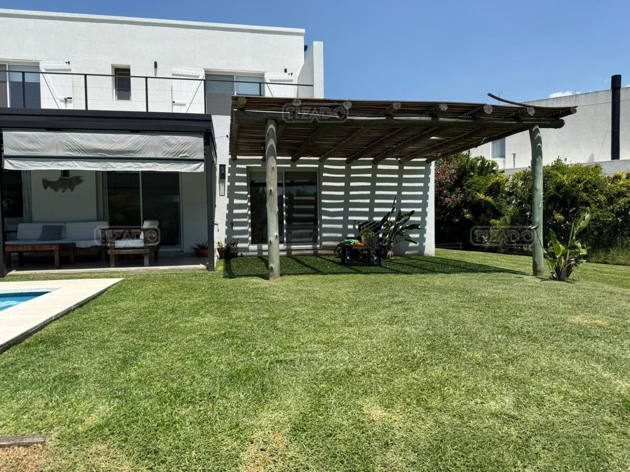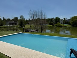 Casa en canton Norte desarrollada en Dos plantas con vista a la laguna sobre un fondo de 38 metros de costa y una orientación noroeste La planta baja esta desarrollada sobre una superficie de 115mt2 que cuenta con cocina integrada al living comedor, toilette, un espacio de escritorio, dependencia y lavadero y tambien nos encontramos con la habitación principal en suite con vestidor y con salida al jardín. La planta alta desarrollada en 52 mt2 cuadrado encontramos dos habitaciones que comparten un baño completo, las habitaciones tienen salida a una terraza IMPORTANTE: la casa cuenta con losa edificable tanto a los laterales de la casa como hacia el fondo de la casa. La casa cuenta con aires acondicionados frio calor en todos los ambientes, cortinas, riego ya instalados. En el jardín encontramos un amplio espacio con fogonero, arenero, muelles, amplia galería con parrilla y una ducha externa para la pileta y una gran pileta con borde infinito.