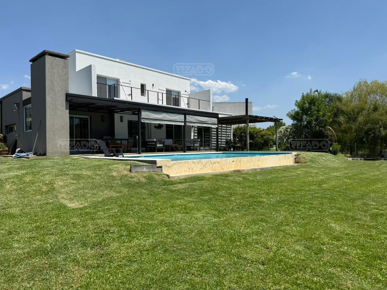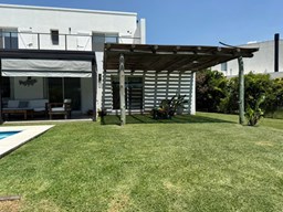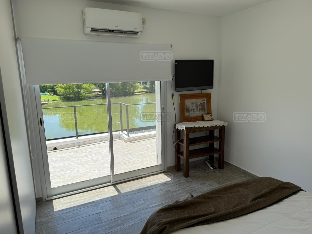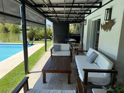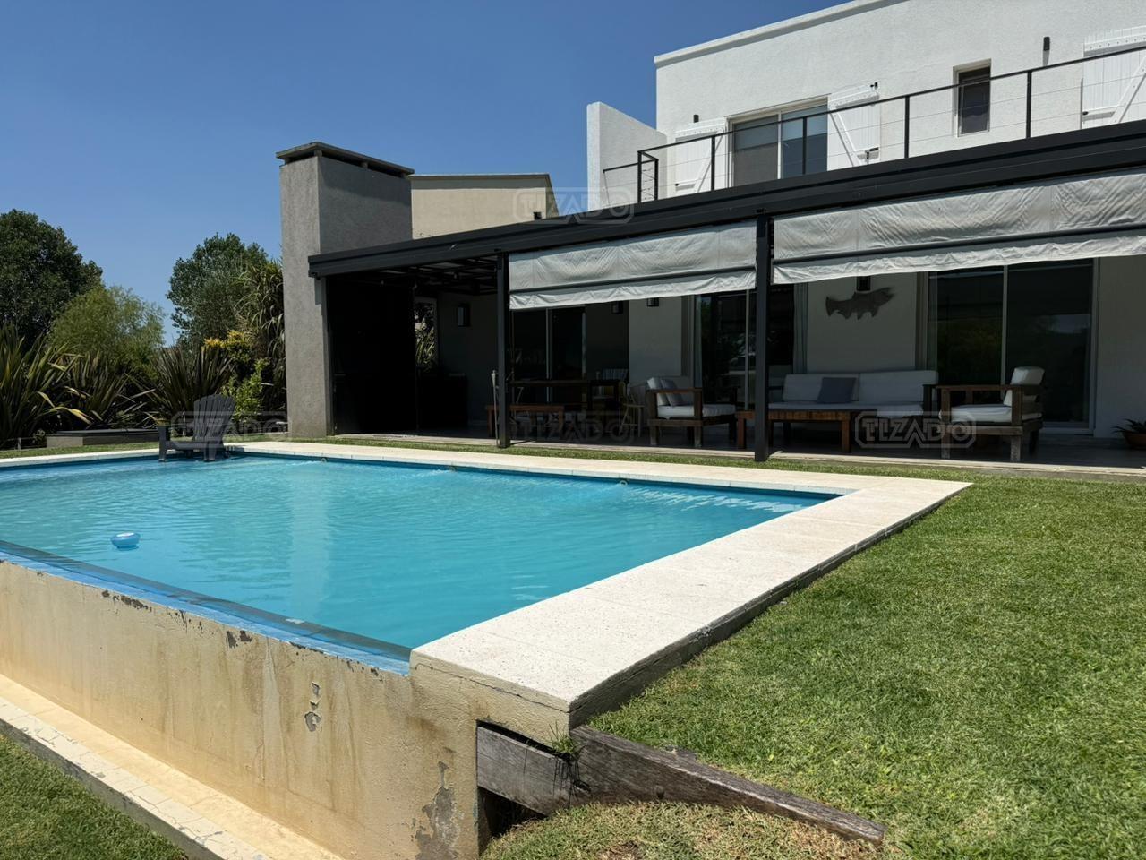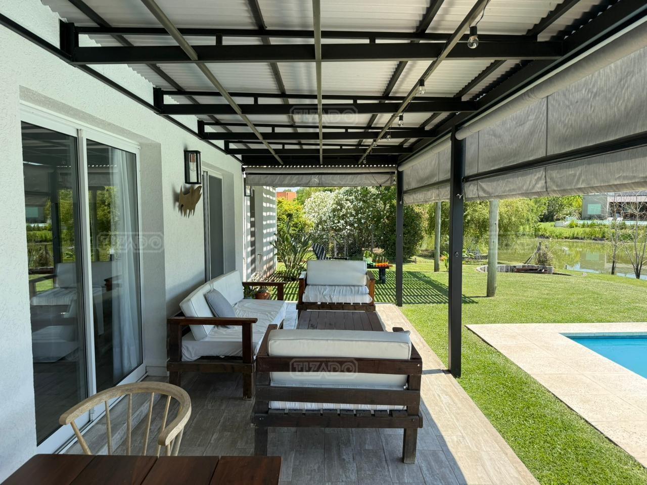 Casa en canton Norte desarrollada en Dos plantas con vista a la laguna sobre un fondo de 38 metros de costa y una orientación noroeste La planta baja esta desarrollada sobre una superficie de 115mt2 que cuenta con cocina integrada al living comedor, toilette, un espacio de escritorio, dependencia y lavadero y tambien nos encontramos con la habitación principal en suite con vestidor y con salida al jardín. La planta alta desarrollada en 52 mt2 cuadrado encontramos dos habitaciones que comparten un baño completo, las habitaciones tienen salida a una terraza IMPORTANTE: la casa cuenta con losa edificable tanto a los laterales de la casa como hacia el fondo de la casa. La casa cuenta con aires acondicionados frio calor en todos los ambientes, cortinas, riego ya instalados. En el jardín encontramos un amplio espacio con fogonero, arenero, muelles, amplia galería con parrilla y una ducha externa para la pileta y una gran pileta con borde infinito.