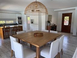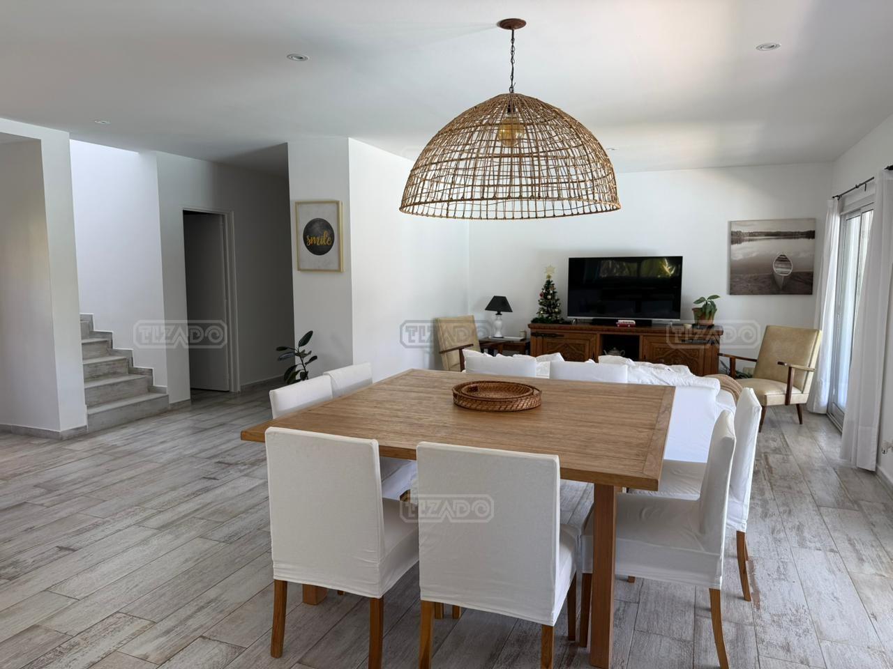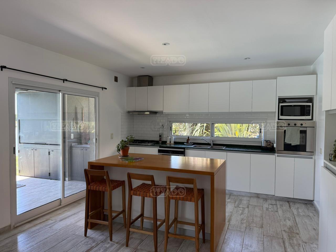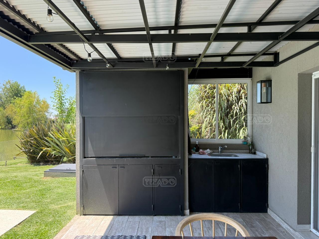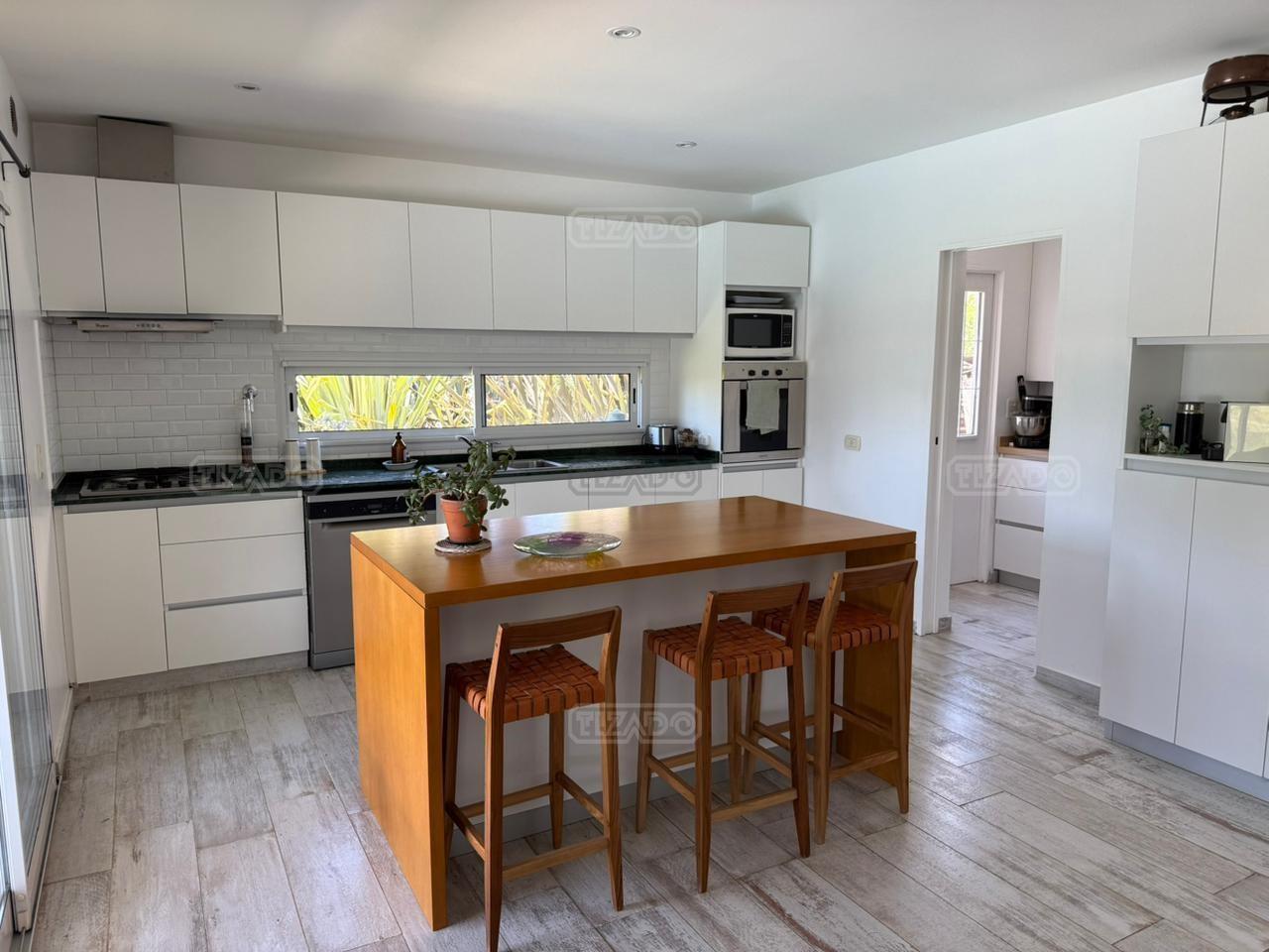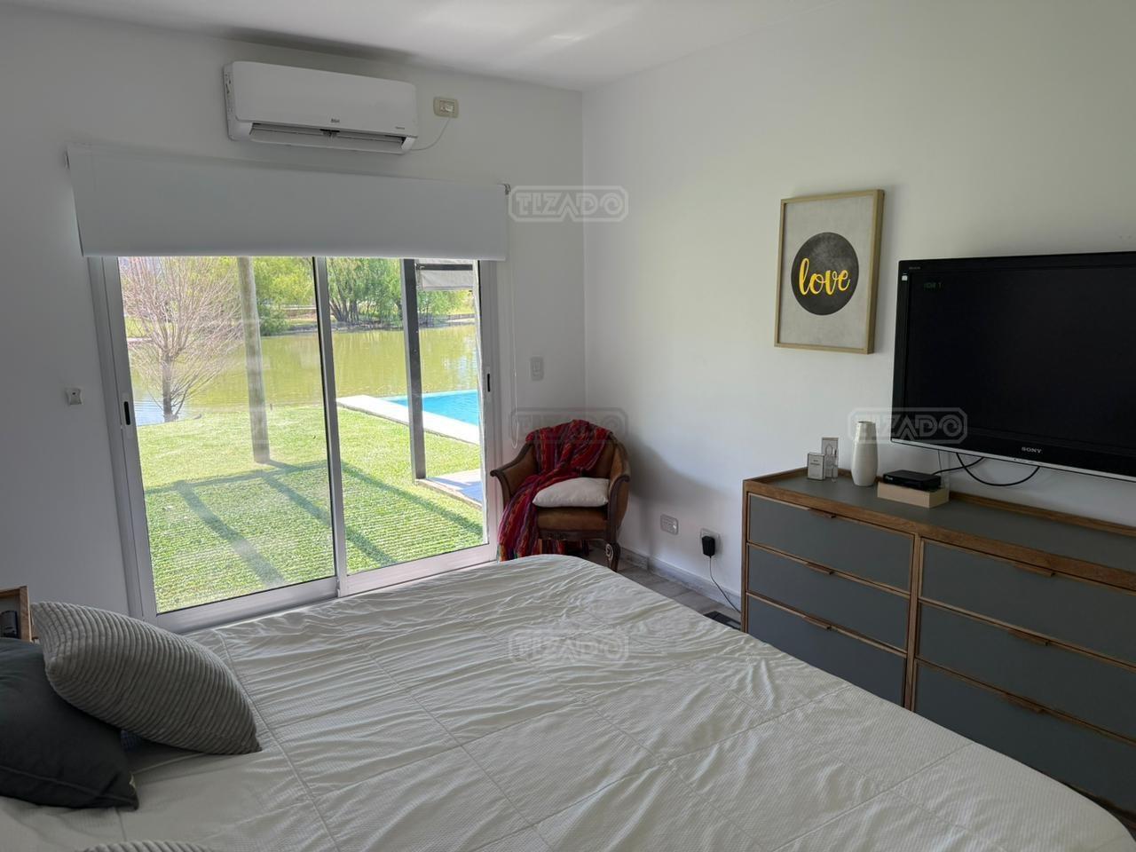 Casa en canton Norte desarrollada en Dos plantas con vista a la laguna sobre un fondo de 38 metros de costa y una orientación noroeste La planta baja esta desarrollada sobre una superficie de 115mt2 que cuenta con cocina integrada al living comedor, toilette, un espacio de escritorio, dependencia y lavadero y tambien nos encontramos con la habitación principal en suite con vestidor y con salida al jardín. La planta alta desarrollada en 52 mt2 cuadrado encontramos dos habitaciones que comparten un baño completo, las habitaciones tienen salida a una terraza IMPORTANTE: la casa cuenta con losa edificable tanto a los laterales de la casa como hacia el fondo de la casa. La casa cuenta con aires acondicionados frio calor en todos los ambientes, cortinas, riego ya instalados. En el jardín encontramos un amplio espacio con fogonero, arenero, muelles, amplia galería con parrilla y una ducha externa para la pileta y una gran pileta con borde infinito.