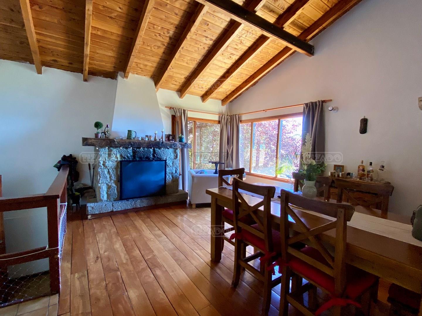 Hermosa propiedad con vista al lago, ubicada en la calle Mariano Moreno, a la altura del kilòmetro 5 a 5 cuadras de la Avenida Pioneros. La casa, implantada sobre un lote de 854 metros cuadrados, consta de 3 dormitorios, dos baños, estar comedor, living, cocina separada. Se accede tanto desde el exterior de la casa como desde el garaje, a un hall pequeño, donde hay una escalera de acceso al nivel del estar comedor. Desde allì salen dos escaleras hacia abajo. Una hacia el dormitorio principal, con baño completo, y la otra, hacia el otro lado, lleva a dos dormitorios con un baño. En el estar comedor, con hogar a leña, se observan grandes ventanales, al oeste y al norte. Desde allì se accede a un medio nivel superior, con ventanal al norte, a un espacio de living con sillones. En el mismo nivel del estar comedor se encuentra la cocina, separada, con ventanas al sur y al este. Cuenta con espacio de lavadero La construcción, íntegramente en mamposterìa, data de 1984. Està bien conservada, el estado general interno es muy bueno. Tiene calefacción por tiro balanceado. Agua caliente por termotanque. Pisos cerámicos. Techo de chapa. El lote tiene suave pendiente, con espacio alrededor de la casa, hacia abajo y también hacia la calle. El garaje tiene el acceso principal hacia el oeste, con puerta hacia el hall de ingreso y salida hacia el este, lo que permite buen acceso a toda la propiedad. Ni Tizado Propiedades (M&G Inmuebles Patagonia SRL), ni el Martillero a cargo son responsables de los indicadores urbanísticos, factibilidades de construcción, ni usos permitidos sobre el inmueble objeto del presente. Corredor y Martillero Matriculado: Sebastián Caretta - Matricula N.333-RP-20 F.412 T.Il