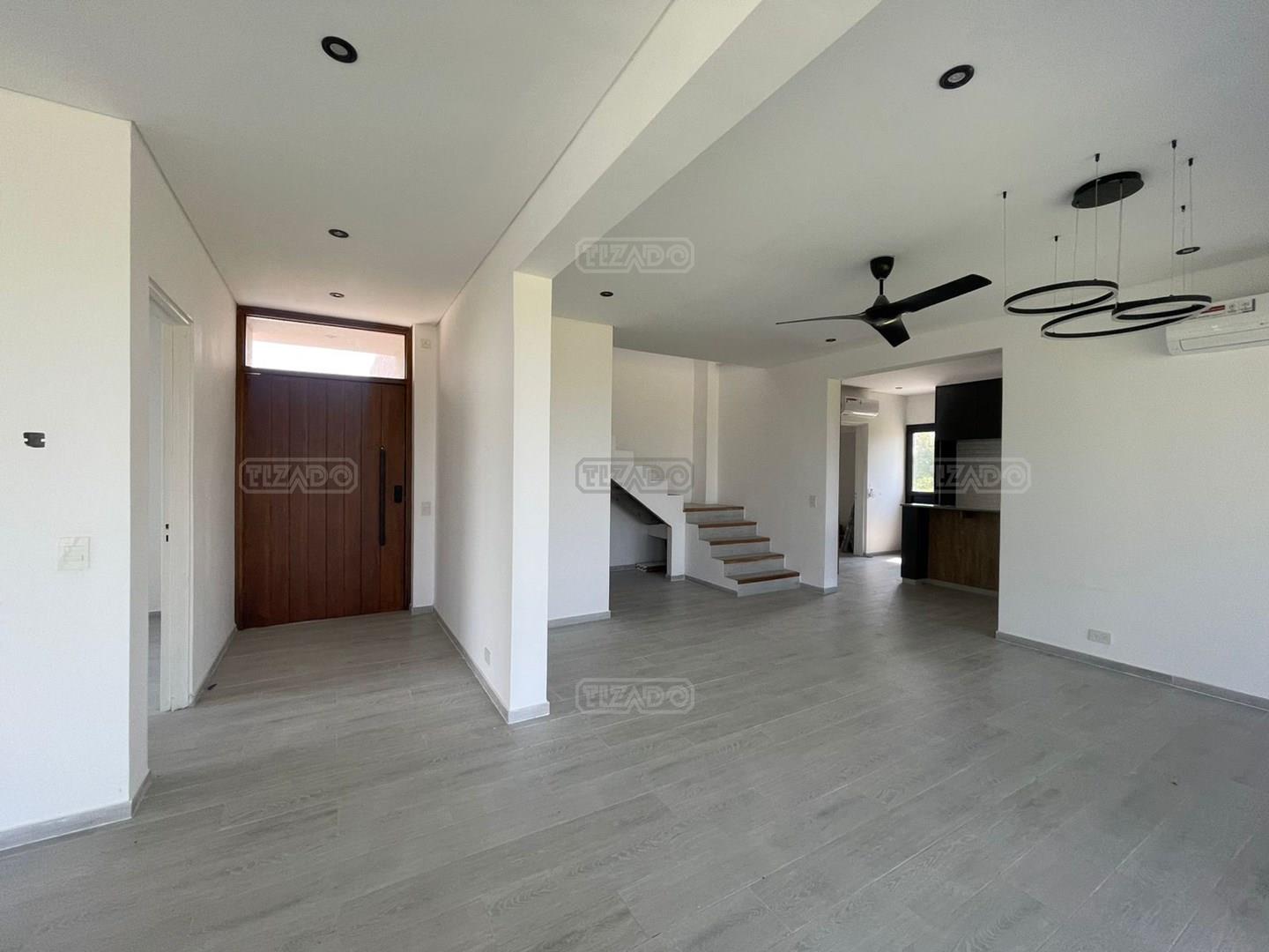 Excelente casa a estrenar con gran calidad constructiva e impecables detalles de terminación Viví el confort y la tranquilidad en una de las zonas más lindas de Puertos. Esta propiedad se encuentra en un lote súper interno, con excelente orientación: NORESTE, que garantiza luz natural todo el día. ¡Ideal para disfrutar en familia! La casa se entrega terminada, con todas las luces y aires acondicionados instalados. Planta baja: Hall de ingreso por puerta principal Living y comedor con salida directa a una gran galería con isla Toilette bajo escalera Escritorio ideal para home office Cocina semi-integrada con isla, mucho lugar de guardado (bajo mesadas, alacenas y vajillero), espacio para lavavajillas Baulera Sector de lavadero independiente Jardín amplio, muy bien orientado Planta alta: Dormitorio principal en suite con vestidor Dos dormitorios con vestidor que comparten un baño completo Las expensas incluyen el acceso al Club Puertos, agua de red y de riego. Aparte se abonan los impuestos municipales y la proporción correspondiente de ARBA (valores sujetos a modificación) Una propiedad funcional, luminosa y con detalles bien pensados. ¡Vení a conocerlo, coordina una visita! Tizado, Inmobiliaria OFICIAL de Puertos.