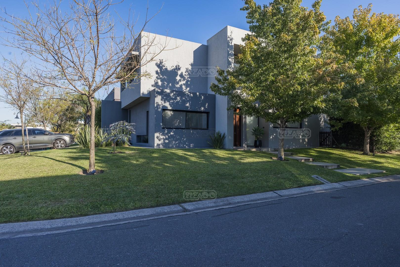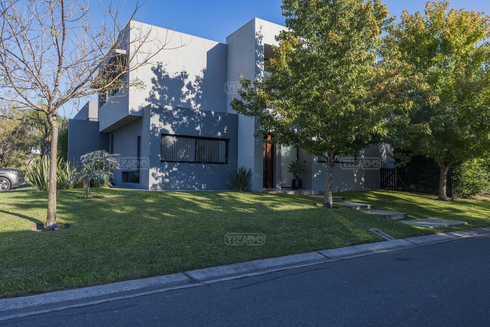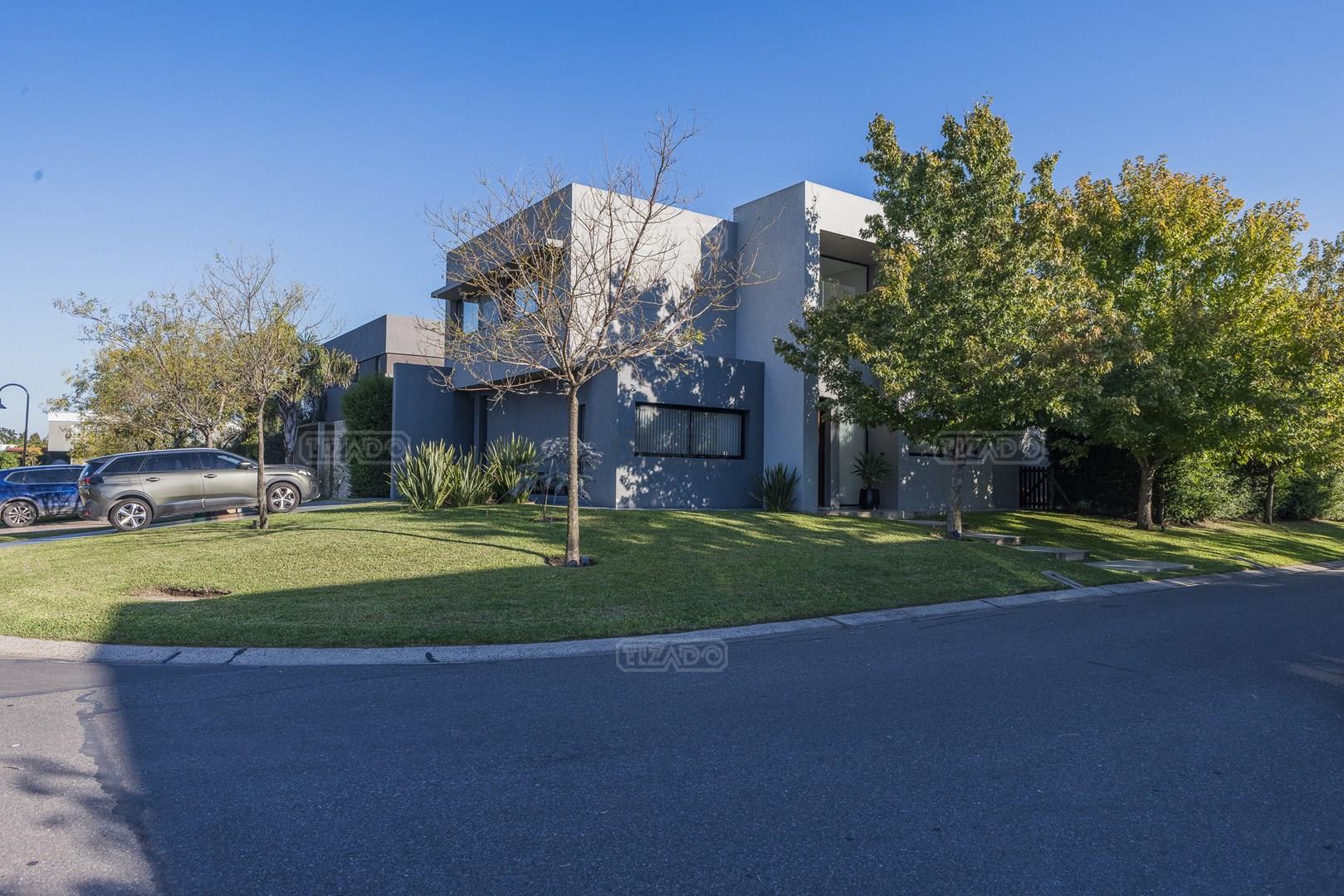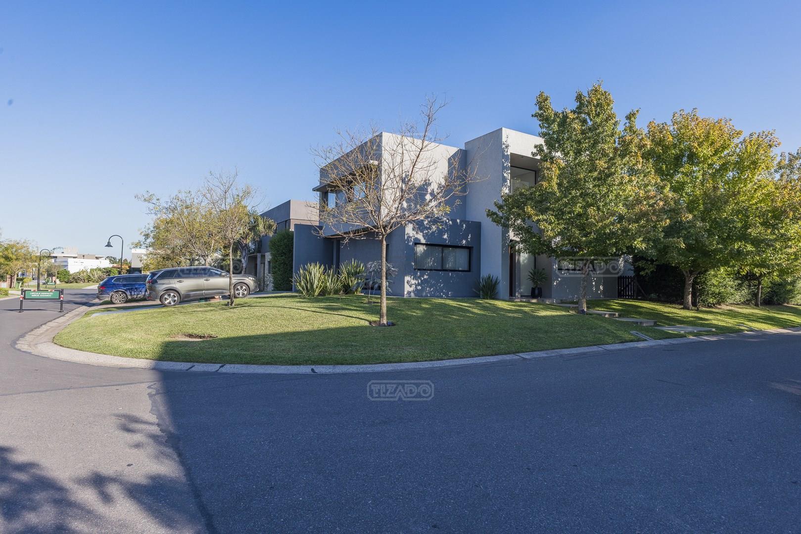 Casa en esquina, muy bien ubicada y de acceso rápido desde la guardia del Barrio. Es una casa realizada con materiales y terminaciones de inmejorable calidad sobre lote con orientación sudoeste. Entras con el cepillo de dientes. PB: amplio hall de entrada de doble altura que acompaña el desarrollo de la escalera, toilette y sector de escritorio abierto; el estar comedor, la cocina y el comedor diario se encuentran integrados; la cocina cuenta con isla, y en la galeria integrada por un vidrio reiki, se encuentra el lavadero y despensa. La galería tiene amplias dimensiones, y cuenta sobre su lateral con parrilla y pileta de lavar con mesada. PA: 3 dormitorios, ppal en suite con vestidor, baño con box de ducha y amplia terraza; dos dormitorios con placard y un baño completo. La casa está asentada sobre una platea de importante espesor (incluidos estacionamiento de autos y acceso vehicular) y la estructura es de hormigón armado, así como la pileta, revestida, con luces y filtro automático. Terminaciones: Carpintería exterior con DVH. Importante puerta de entrada Rosbaco al igual que todas las puertas interiores. Mesadas de cocina, baños y sector parrilla de Silestone. Muebles de cocina, placards y vestidor Johnson. Horno y anafe Longvie de última generación. Artefactos sanitarios Ferrum y grifería FV. Finísima yeseria artesanal en paredes y cielorrasos . Aires Acondicionados en los ambientes. Piso radiante de 5 circuitos (inclusive en galería) con caldera Baxi Eco-3 de alto rendimiento. Revestimiento exterior Revear. Parquización con gramma y riego automático. Cuenta con un espacio de fogonero en el exterior. Es impecable, digna de ver!