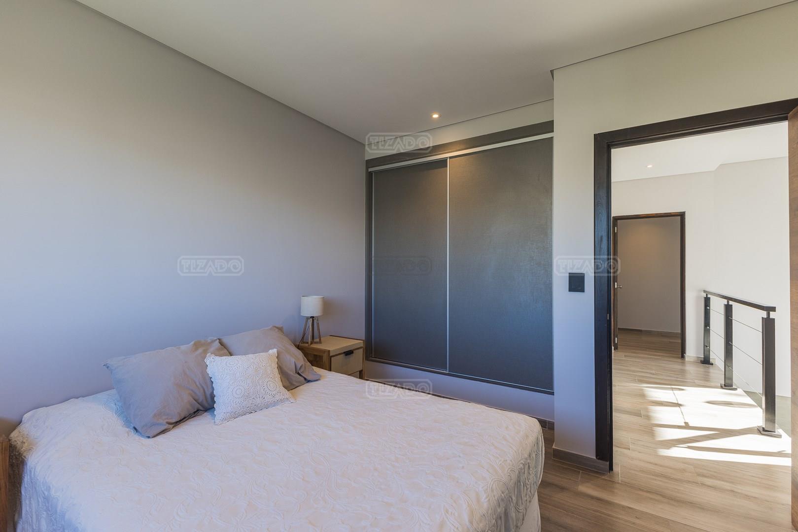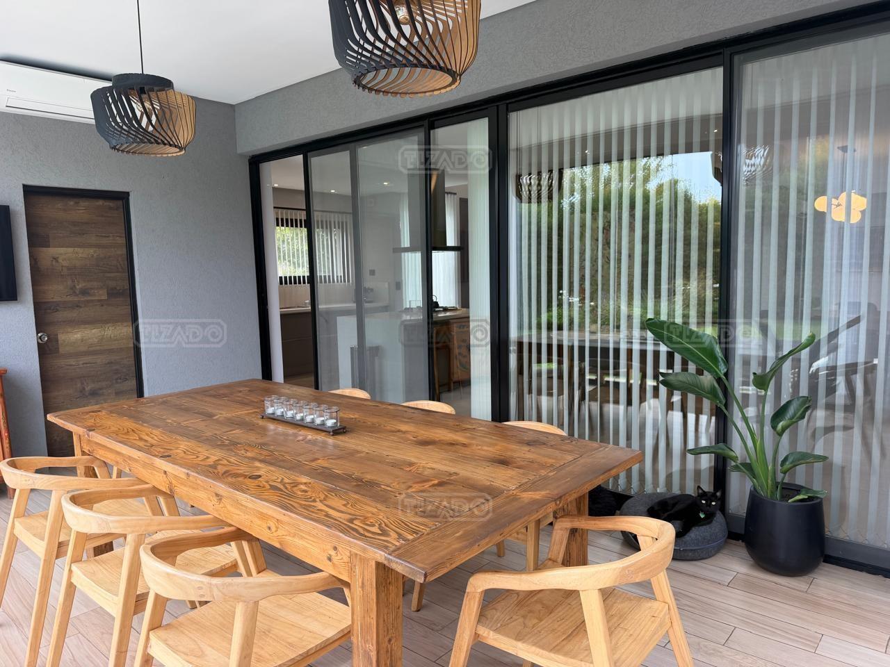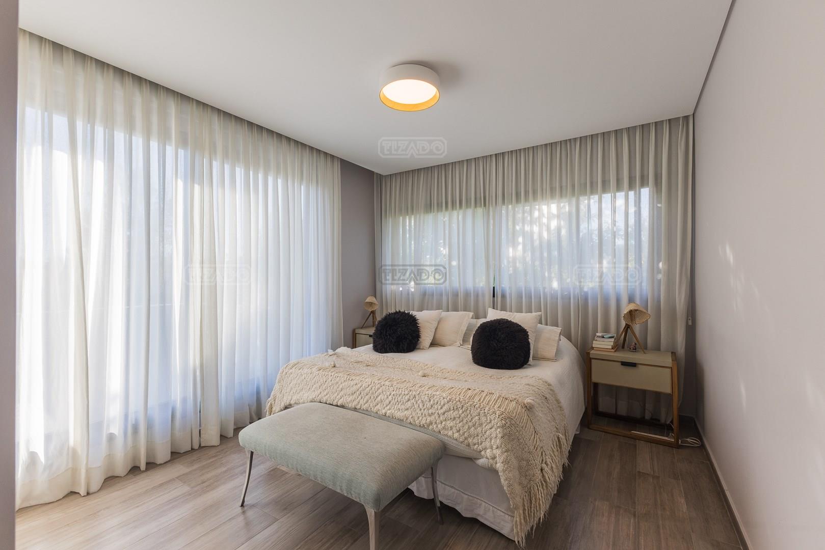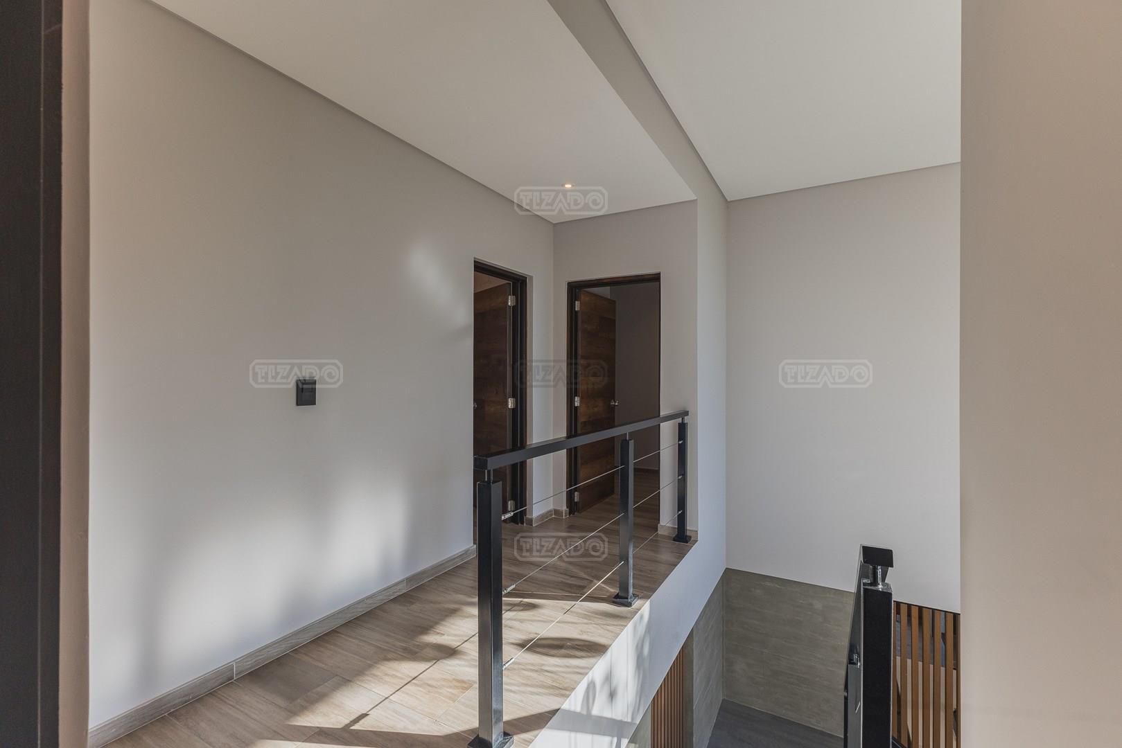 Casa en esquina, muy bien ubicada y de acceso rápido desde la guardia del Barrio. Es una casa realizada con materiales y terminaciones de inmejorable calidad sobre lote con orientación sudoeste. Entras con el cepillo de dientes. PB: amplio hall de entrada de doble altura que acompaña el desarrollo de la escalera, toilette y sector de escritorio abierto; el estar comedor, la cocina y el comedor diario se encuentran integrados; la cocina cuenta con isla, y en la galeria integrada por un vidrio reiki, se encuentra el lavadero y despensa. La galería tiene amplias dimensiones, y cuenta sobre su lateral con parrilla y pileta de lavar con mesada. PA: 3 dormitorios, ppal en suite con vestidor, baño con box de ducha y amplia terraza; dos dormitorios con placard y un baño completo. La casa está asentada sobre una platea de importante espesor (incluidos estacionamiento de autos y acceso vehicular) y la estructura es de hormigón armado, así como la pileta, revestida, con luces y filtro automático. Terminaciones: Carpintería exterior con DVH. Importante puerta de entrada Rosbaco al igual que todas las puertas interiores. Mesadas de cocina, baños y sector parrilla de Silestone. Muebles de cocina, placards y vestidor Johnson. Horno y anafe Longvie de última generación. Artefactos sanitarios Ferrum y grifería FV. Finísima yeseria artesanal en paredes y cielorrasos . Aires Acondicionados en los ambientes. Piso radiante de 5 circuitos (inclusive en galería) con caldera Baxi Eco-3 de alto rendimiento. Revestimiento exterior Revear. Parquización con gramma y riego automático. Cuenta con un espacio de fogonero en el exterior. Es impecable, digna de ver!