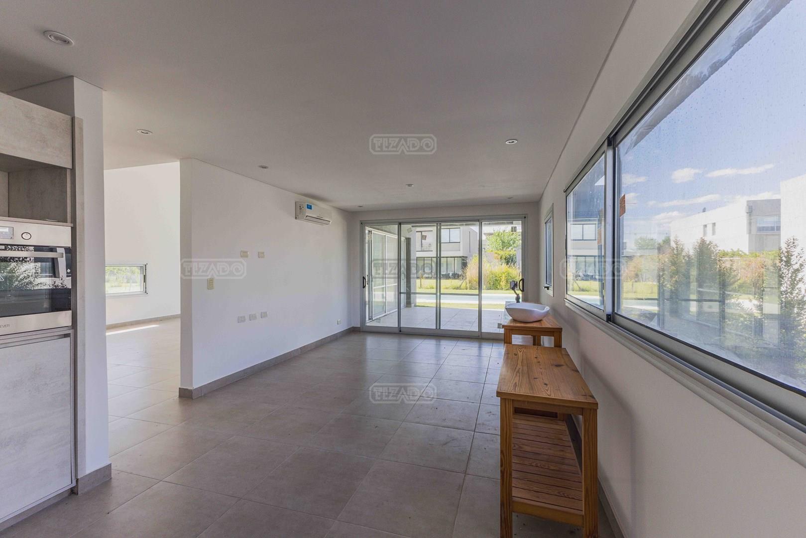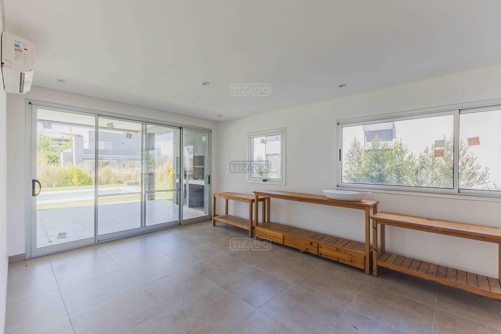 Casa de 2 plantas en venta, en el barrio de Araucarias Puertos, la propiedad se encuentra a estrenar. Ambientes Planta Baja, Cochera techada para dos vehiculos, espacio de guardado bajo escalera, Toilette, deslumbrante living comedor doble altura con chimenea, comedor diario independiente del comedor princial , cocina independiente ( anafe - horno - campana ), lavadero, dormitorio en suite que puede ser utilizado como dependencia / escritorio / playroom , Galeria con parrilla, Pileta y jardin. Todos los ambientes cuentan con aire acondicionado instalado Planta alta, Area de playroom, o de tv en hall de distribucion Dormitorio principal con balcon a fondo , en suite con amplio vestidor completo, antebano y bano, aire acondicionado LG 2 amplios dormitorios al frente con placard completo, muy luminosos con balcon corredizo , que comparten un bano, cada uno con su aire acondicionado LG Excelentes terminaciones: molduras de exterior hechas a mano, losa radiante( gas), caldera, pisos ilva, grifería Peirano, puertas Oblak, sanitarios Rocca . Barrio Araucarias cuenta con 321 lotes de 540 m2 promedio. Rápido acceso a Avenida de los Lagos. Club house con pileta y dos canchas de tenis. Frente a La Bahía, zona comercial y gastronómica. Puertos es tranquilidad y contacto con la naturaleza. Y a la vez, toda la comodidad y la infraestructura de una ciudad. Un lugar seguro en un entorno único. Cultura ecológica. Diseño orgánico de los espacios, para simplificar la movilidad. Eco Walking Community. Aire puro, bicicletas, botes de remo. Un trazado inteligente, con bicisendas que unen cada punto de la ciudad. Y todas las áreas de servicios ubicadas estratégicamente cerca. Polo gastronomico, comercial y educativo - Club deportivo y Nautico - Lagunas navegables - Reserva ecologica - Malba y un exponencial crecimiento.