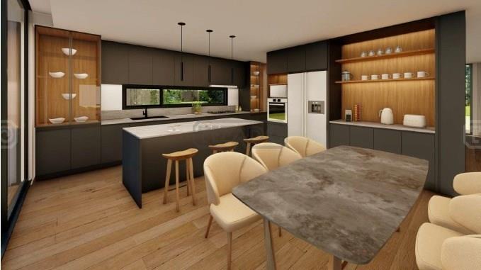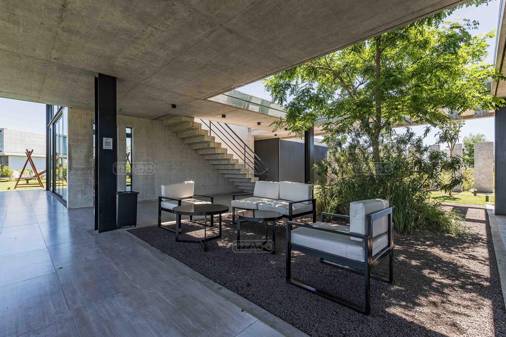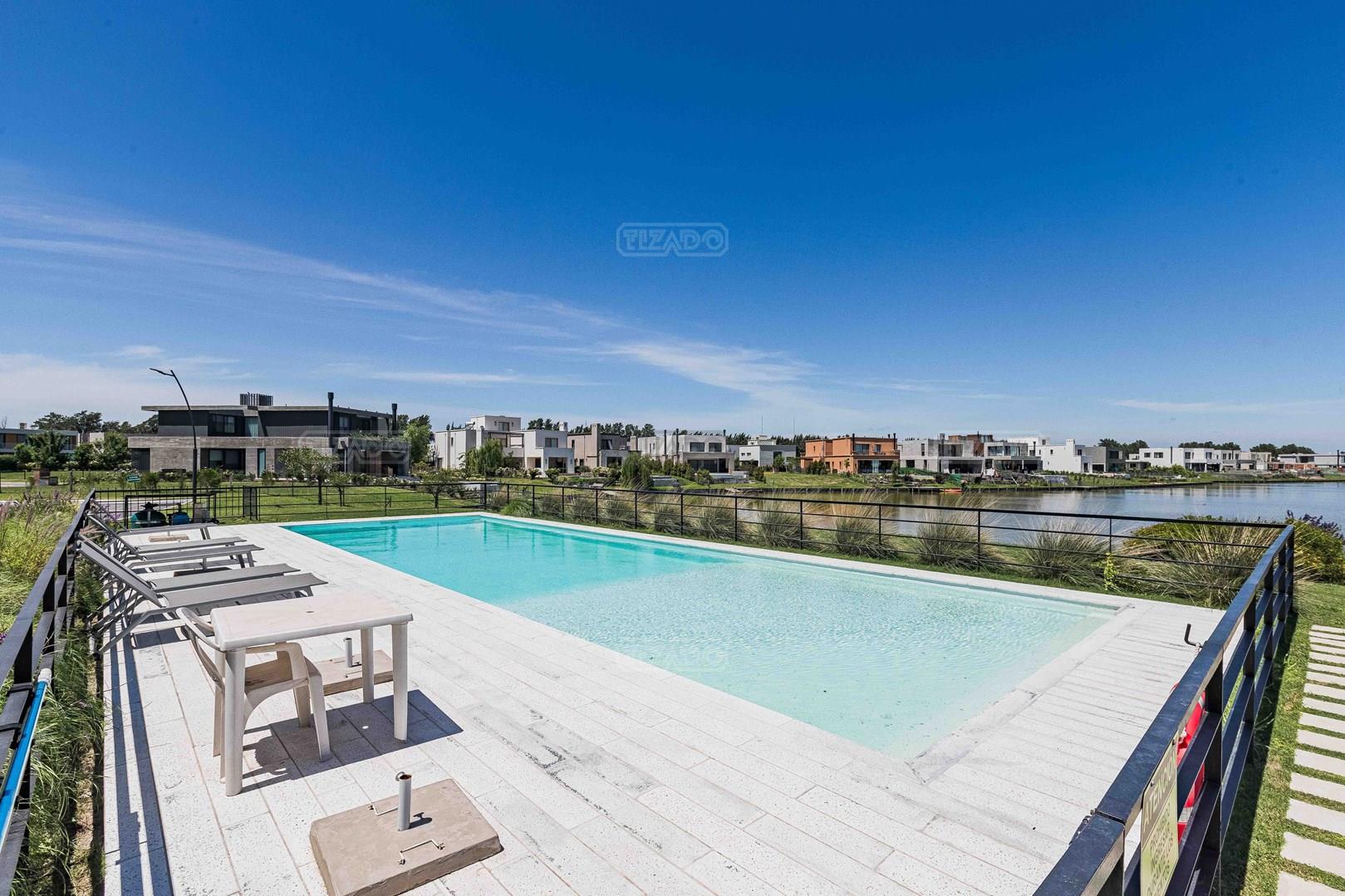 Excelente casa a la venta (en obra, finaliza febrero 2026) con fachada de hormigón visto combinada con revestimiento simil madera y revestimiento plástico tarquini. Sólida, moderna, luminosa, funcional . Desarrollada en dos plantas en un muy buen lote interno de excelente orientación en el barrio Los Castaños. Este se caracteriza por su hermoso SUM con vista al lago, plazas de juegos para niños, canchas de tenis y fútbol, todo en un ambiente familiar. Planta baja: living, comedor, escritorio, dormitorio de servicio con baño completo, toilette, cocina completa, lavadero, galería profunda con parrilla y espacio para mesa y living de exteriores. Planta alta: master suite con vestidor, junior suite, y 2 dormitorios con baño compartimentado, hall con espacio de guardado para ropa blanca, terraza accesible. Jardín nivelado, con perfil de tierra negra y con panes de pasto grama bahiana, plantas decorativas en el frente de la casa, riego automático y pileta de 7,00 mts x 3,00 mts más zona playa, y solado de travertilit. Sistema de calefacción por piso radiante en todos los ambientes cubiertos de la casa, cañerías y desagües preparados para instalación de aires acondicionados split en cada ambiente. OBSERVCIONES: Aberturas de P.V.C foliadas en color golden (simil madera), doble vidrio DVH. Incluye mosquiteros. Sala de máquinas exterior en herrería con puertas de abrir. Puertas interiores a medida altura 2,60. Interiores de placares. Escalera en hormigón armadorevestida en porcellanato. Pisos de porcellanato aprox. 1,20 x 20 simil madera. Muebles de cocina y vanitories laqueados. Artefactos sanitarios Ferrum/Roca. Terminaciones de paredes interiores enduídas y pintadas en latex satinado.