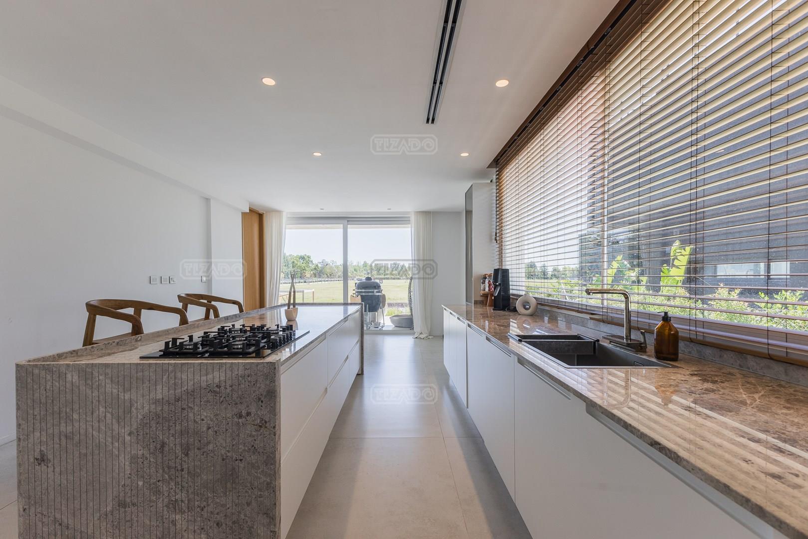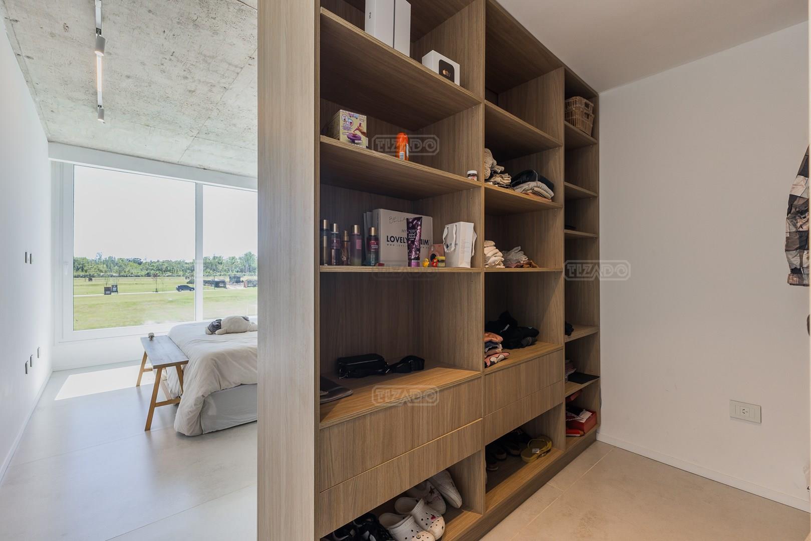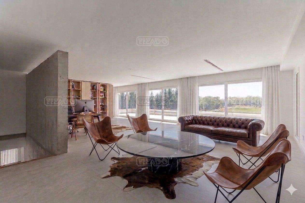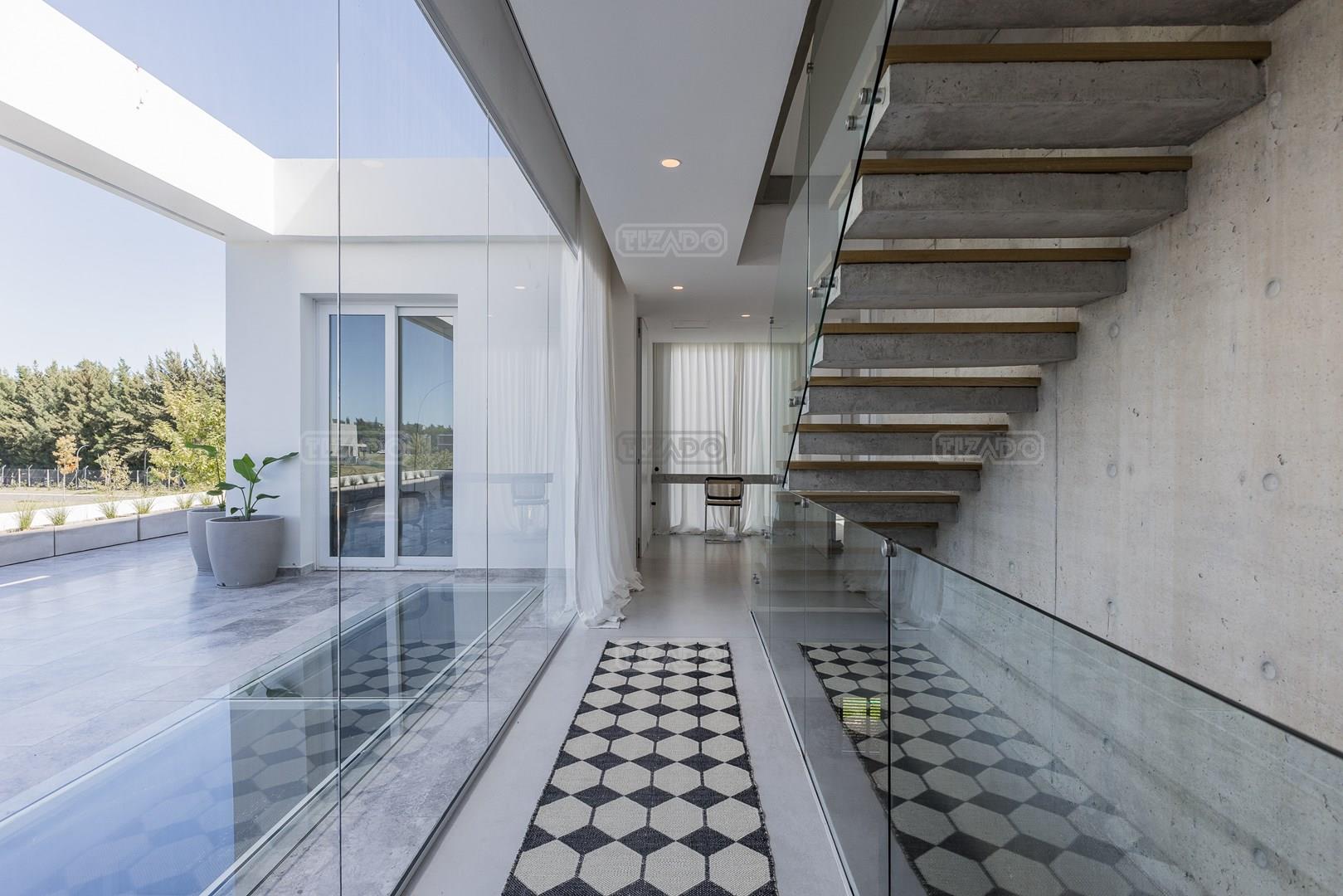 Excelente casa prácticamente a estrenar!!! Muy buena ubicación dentro del barrio, frente a un espacio verde lo que le otorga mayor privacidad con respecto a los vecinos Se vende totalmente equipada y amoblada!!!! PB: espacio al frente para varios autos, dos cocheras cubiertas. Se accede por un amplio hall de entrada, toilette, escritorio, estar comedor apaisado con grandes ventanales al jardín y al agua, cocina con comedor diario, muy bien equipada: muebles Johnson termoformados , electrodomésticos Bosch con wifi, panelables, alemanes y amplio lavadero, dependencia de servicio con baño completo con posibilidad de usar como baño de pileta. PA: 4 dormitorios: ste principal con amplio vestidor y baño con bañera y dos duchas, 3 suites junior con vestidor y baño completo, todos con vista al agua¡¡, escritorio o posible 5to dormitorio. Ultimo piso: gran playroom con baño completo muy amplio. y gran terraza. Sala de máquinas Pileta de 13mx3m con borde infinito, jardín parquizado con cerco verde perimetral, variedad de plantas y riego automatizado con wifi, muelle de lapacho de 14mx4m con pérgola de 4m X 4m Detalles técnicos: calefacción por losa radiante con 3 calderas de condensación Baxi italiana, agua caliente al instante con Boiler de 300lts más las calderas. Grifería PB Hansgrohe alemana y en PA marca Roca española, aberturas DVH y PVC KÖNIG Group, pisos de porcelanato de 2,40mx1,20m, puertas Moras, en planta baja roble americano, arriba laqueadas blancas Se entrega con la galería cerrada con vidrio y con calefacción¡