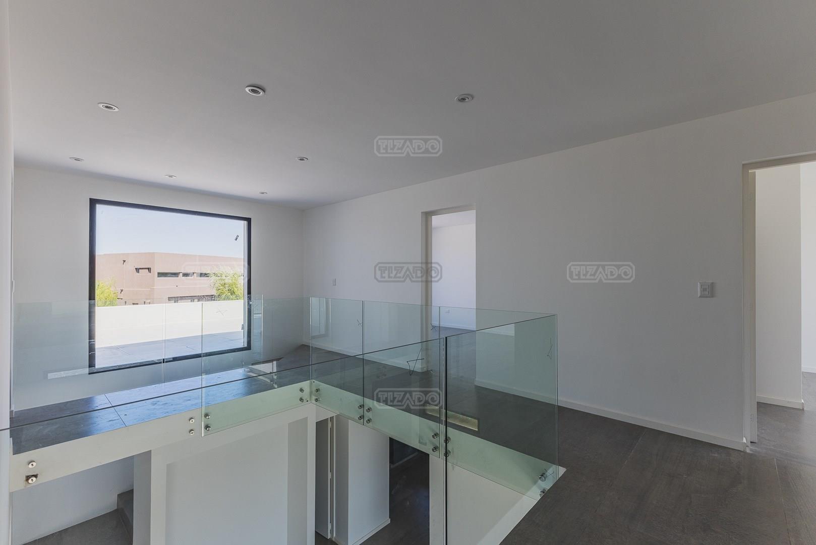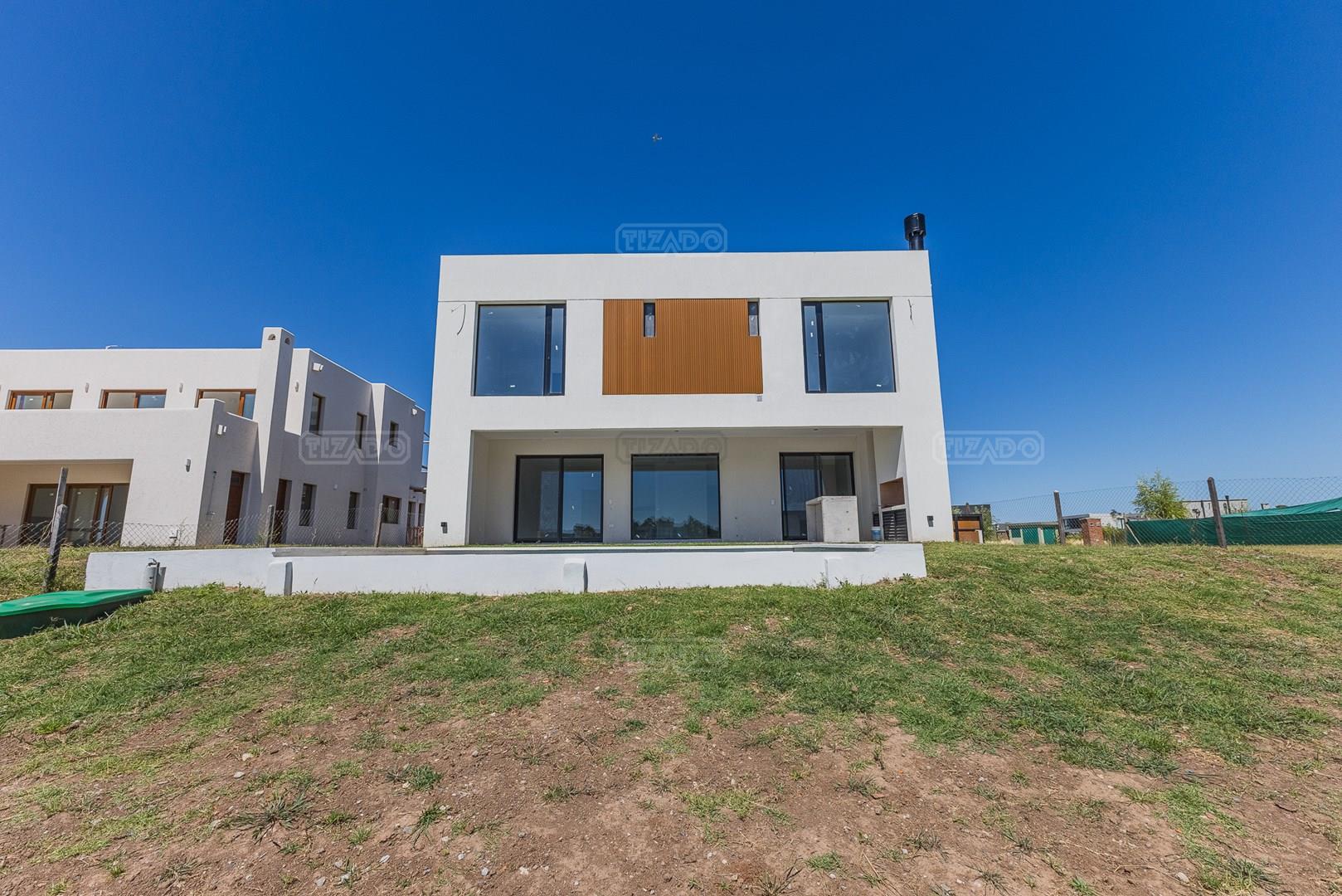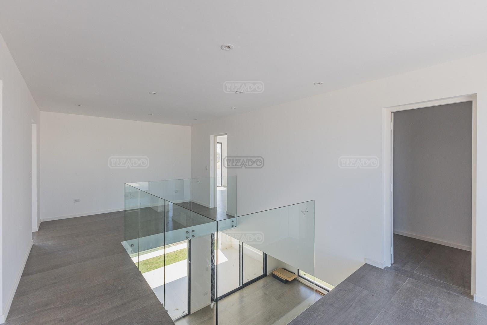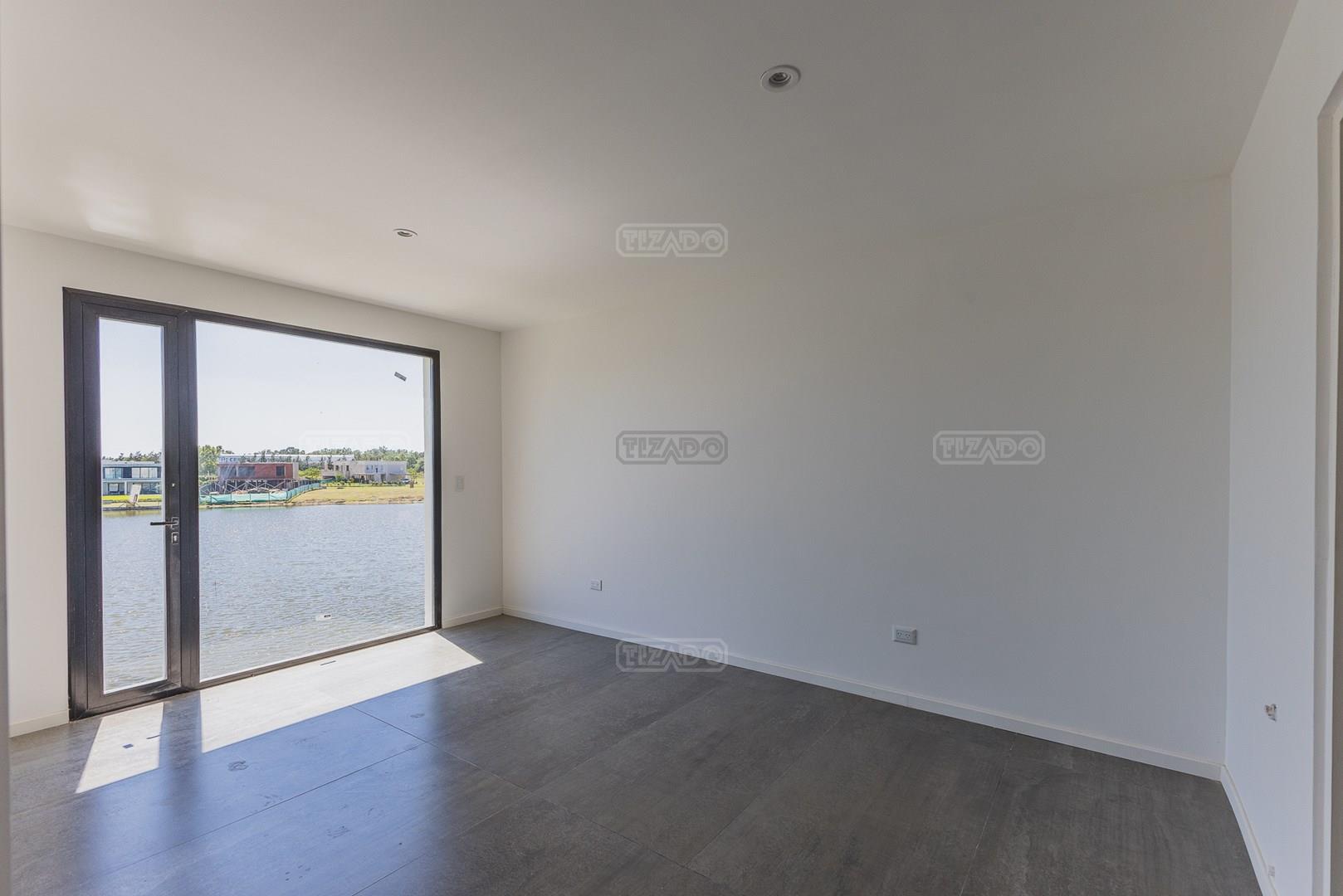 Moderna casa de lineas rectas a la laguna de Santa Ana. PB recepción, gran living con hogar, comedor y cocina integrada, toilette. Lavadero. Escritorio o dormitorio de huéspedes con baño completo (o dependencia de servicio) con entrada independiente. PA 4 dormitorios, principal en suite, otros 3 dormitorios comparten un baño. Exterior, gran galeria con parrilla con frente de chapa tipo guillotina, parque y piscina de borde infinito Aberturas de PVC simil madera con DVH y mosquiteros. Calefacción por losa radiante, preinstalacion de AA en todos los ambientes, Incluye frentes e interiores de placard pisos porcelanato de 60x120 en PB y pisos de porcelanato simil madera de 19x115 en PA Mesadas de silestone White Stone Quartz en cocina y lavadero, Blanco Norte en baño suite y chicos. Mesada Negro Brasil Leather en parrilla. Mampara en duchas baño suite de planta alta. Vanitorys en todos los baños excepto en el toilette. Muebles de cocina bajo mesadas con alacenas e isla en blanco laqueados. Horno eléctrico Whirpool, Anafe a gas marca Whirpool. Campana en cocina marca TST. Jardín nivelado. Estacado a laguna con quebrachos. Tanque cisterna de 3.500 lts de capacidad. Bomba presurizadora marca Espa. Caldera dual Baxi. Pileta de 3.5x7 con desborde infinito en el ancho, solado y luces, revestida con venecitas. Equipo de filtrado marca Vulcano. Accesos peatonales y vehiculares en hormigón alisado. Cochera cubierta para 2 autos, estacionamiento sin techar para 4 autos.