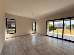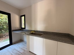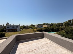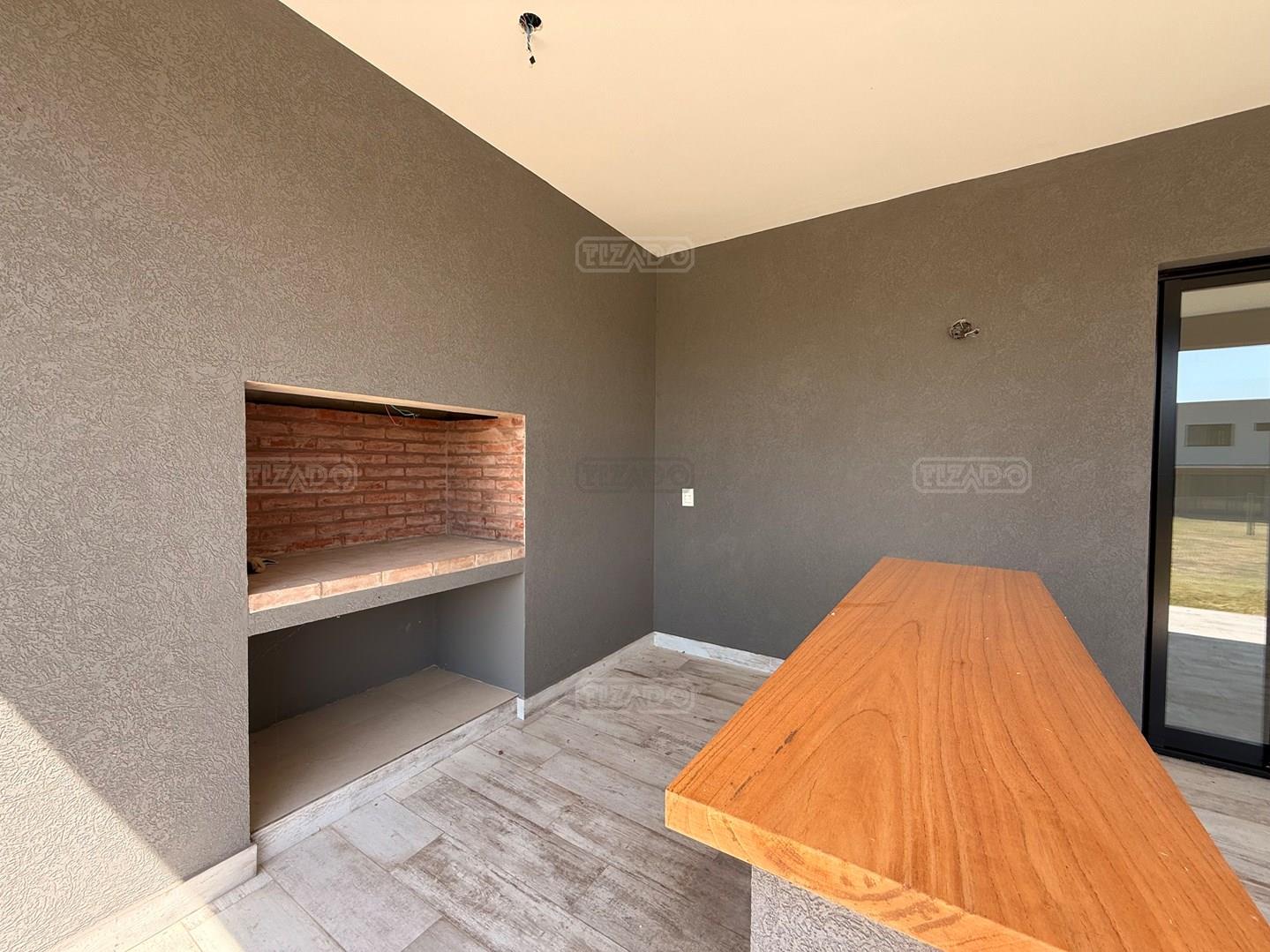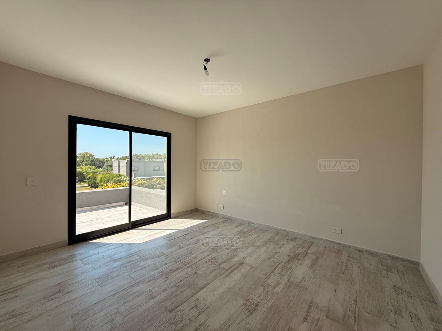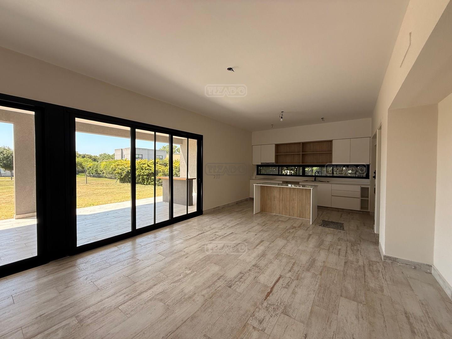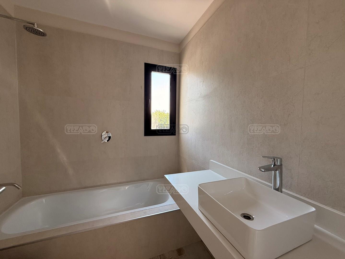 Casa en venta en Santa Guadalupe – Pilar del Este Propiedad desarrollada en dos plantas sobre lote interno, con muy buena calidad constructiva y distribución funcional. Ingreso por cochera cubierta para dos vehículos y entrada de hormigón. En planta baja cuenta con hall de recepción de amplias dimensiones, living comedor integrado con isla, cocina equipada con mesadas de Silestone blanco, alacena, muebles bajo mesada, horno empotrado y anafe. Lavadero con entrada independiente y baulera bajo escalera, toilette de recepción y escritorio. En planta alta, hall íntimo de distribución, playrrom o sala de estar, dormitorio principal en suite con vestidor doble y dos dormitorios secundarios con baño completo compartido. En el exterior, galería con isla y parrilla, jardín. Detalles constructivos: pisos de porcelanato símil madera, aberturas de aluminio con DVH, calefacción por losa radiante electrica, techo de losa y griferías FV. El barrio Santa Guadalupe cuenta con cuatro canchas de tenis, SUM, cancha de fútbol, sector de parrillas y despensa, además de seguridad y amplios espacios verdes.