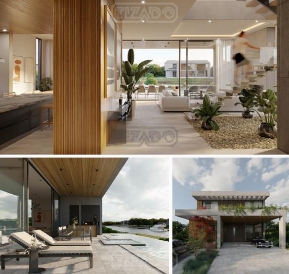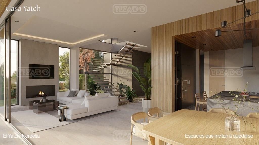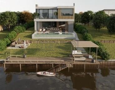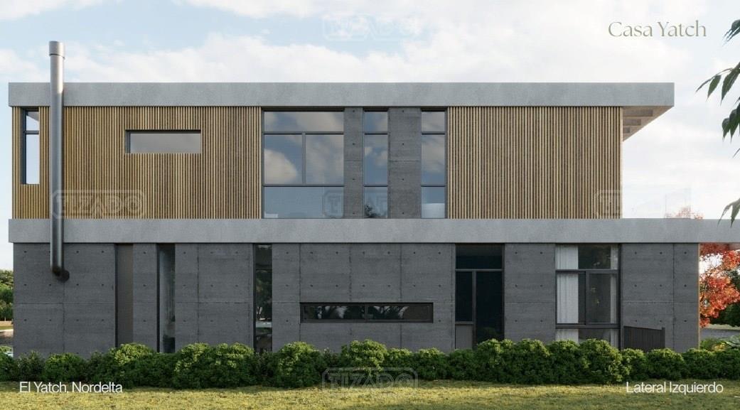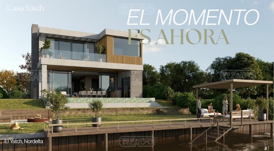 Moderna casa al rio en Yacht con vista al rio. Líneas rectas, techos altos, materiales nobles como hormigón, vidrio, madera y piedra. PB Hall de ingreso, living comedor con vista al rio, cocina con isla y barra, toilette de recepción, suite de huéspedes, lavadero independiente, dependencia con baño, galería con parrilla, piscina con borde infinito, muelle, garaje para 2 autos. PA Master suite con vestidor y terraza al rio, 2 suites con terrazas al frente, family room o 4to dormitorio. Calefacción por losa radiante, Aire frio central. Barrio con acceso directo al canal del Rio Lujan.