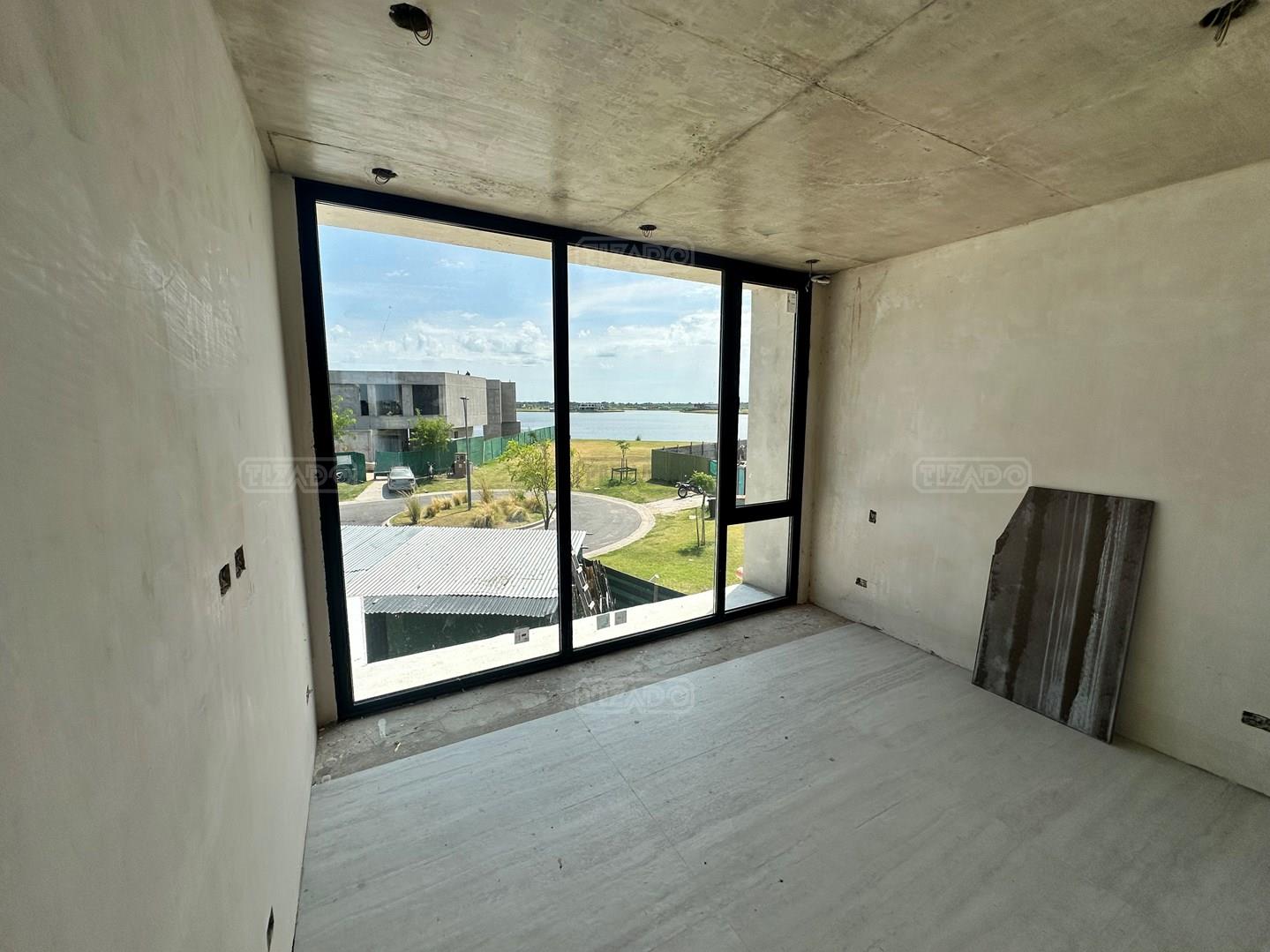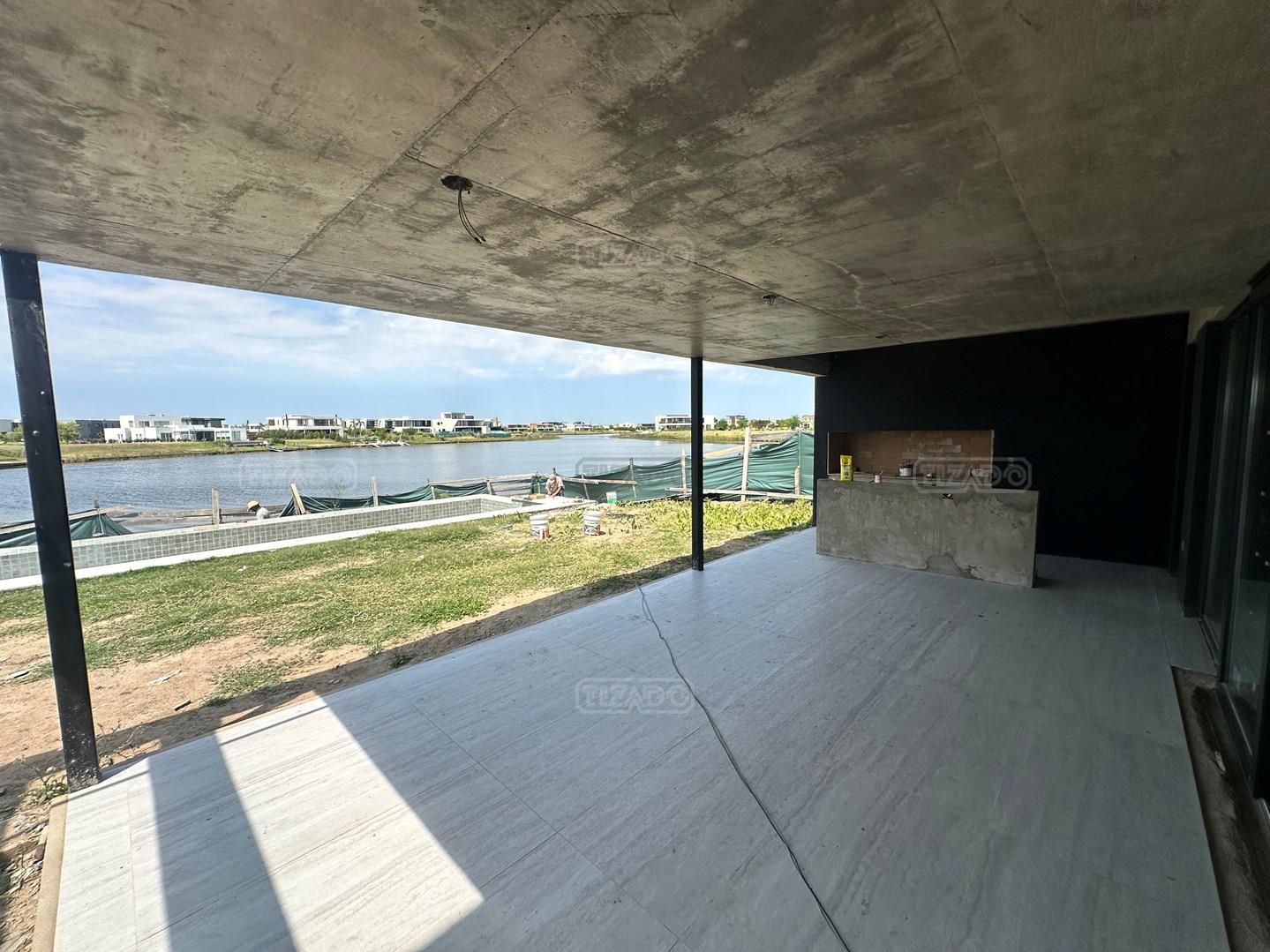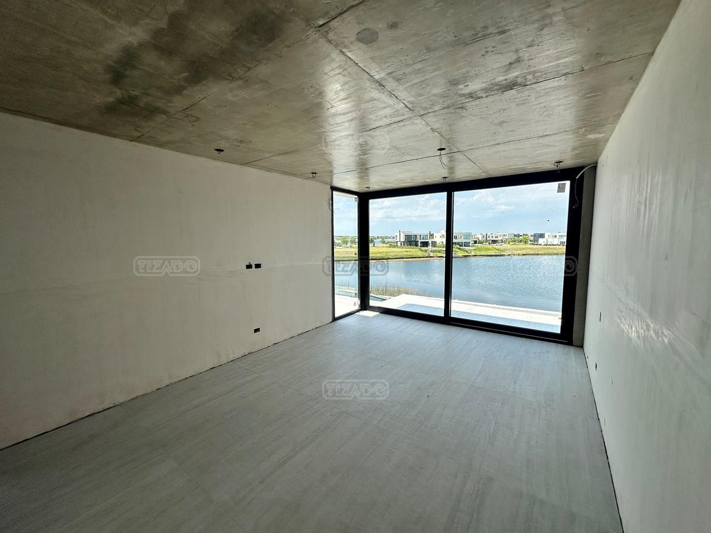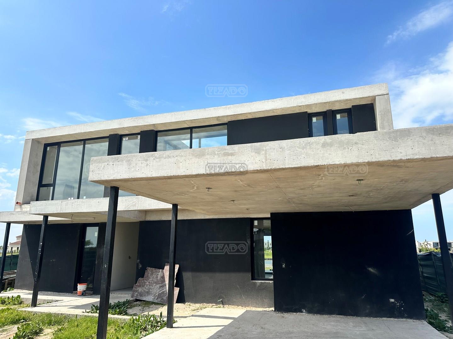 Casa en barrio Costas, diseño moderna con hormigon a la vista. La casa se encuentra en la etapa final de obra. desarrollada en dos plantas con una gran vista sobre la bahia de Costas y el lago central. Ubicada en cul de sac, eso le da una tranquilidad a la casa y no concurren autos que no sean los vecinos de los lotes linderos. Todas Las habitaciones y espacios comunes tienen vista al lago, la casa se diseño para poder aprovechar el gran espejo de agua que posee. Entrando a la casa se puede ver un jardin interno el cual le da luminosidad a toda la casa tanto a la planta baja como alta. La casa en planta baja tiene un cuarto el cual puede ser utilizado como escritorio, micro cine o como una habitacion mas ya que al lado tiene el toilette de recepcion. Luego el living, cocina, comedor todo incluido y en la otra ala de la casa podemos encontrar el lavadero con la dependencia completa con entrada independiente a la casa. La casa tiene una amplia galeria de 12 mts incluido un espacio para colocarle un deck con un juego de sillones o una mesa dependiendo el uso que se le quiera dar. La pileta tiene mas de 10mts con un borde infinito y Jacuzzi, cuenta con un sistema para nivelarla y poder manejar la temperatura de la misma. Tiene baño de pileta. Si subimos a la planta alta lo primero que vemos es el jardin interno que le da una total luminosidad a la casa luego tenemos 4 dormitorios, 3 en Suite, con vestidor y vista al lago. Y luego la master Suite, super espaciosa con un gran vestidor y un amplio baño. Cabe destacar la vista de la misma. La casa cuenta con detalles de calidad que realmente vale la pena ver. EL equipamiento final de la casa se puede ver en las fotos junto con las terminaciones, estan en el listado.