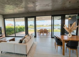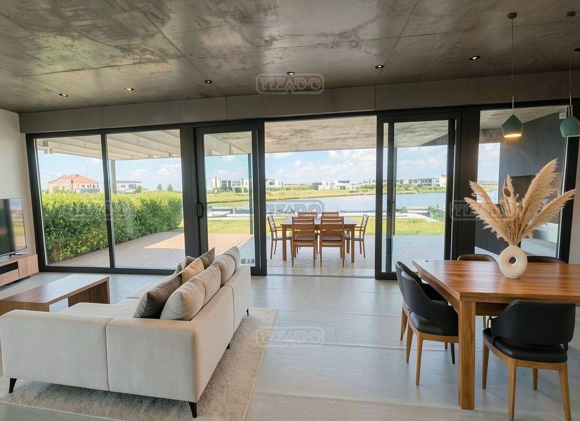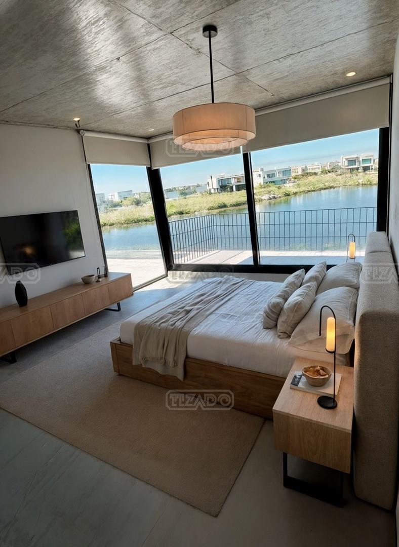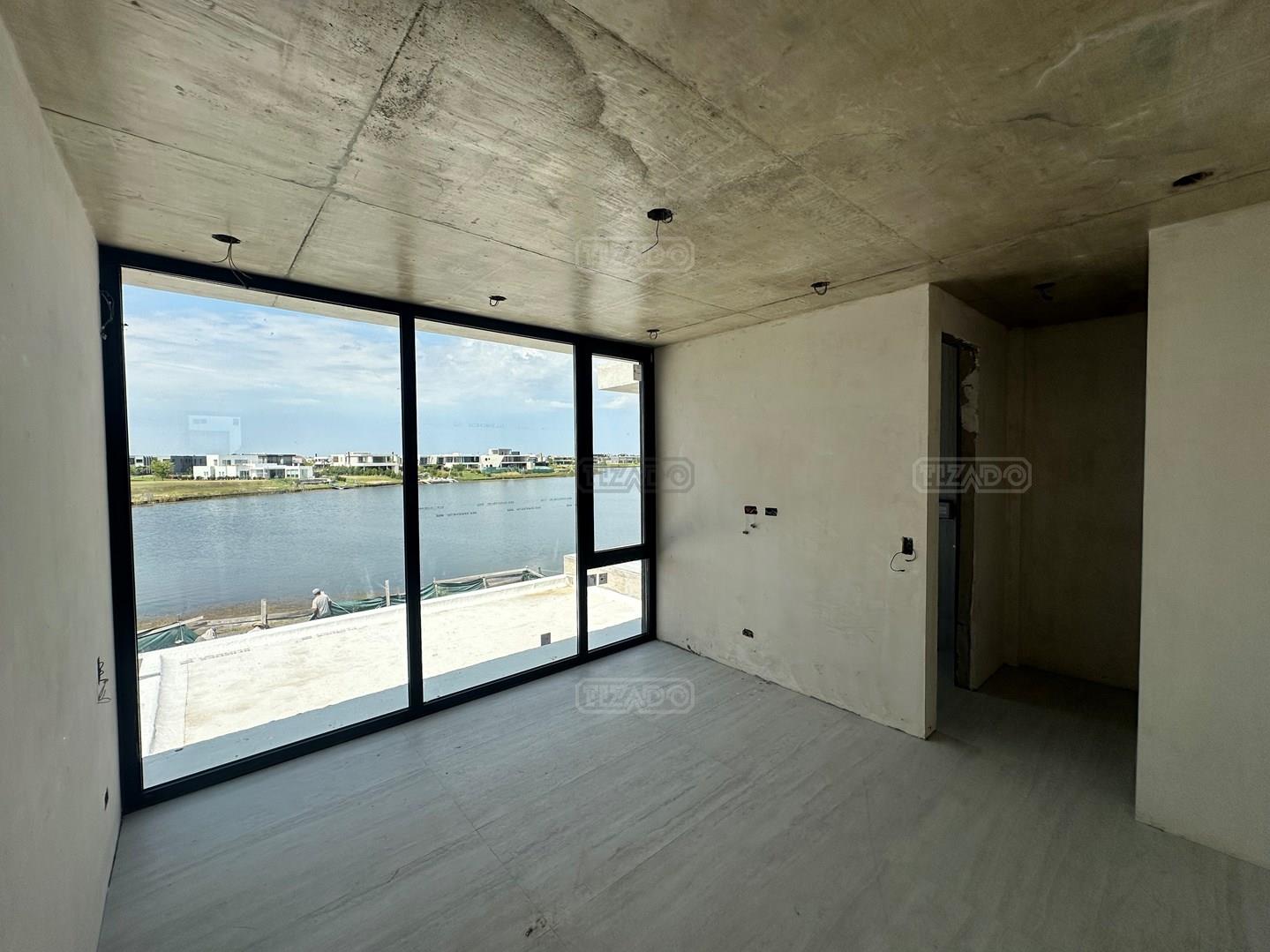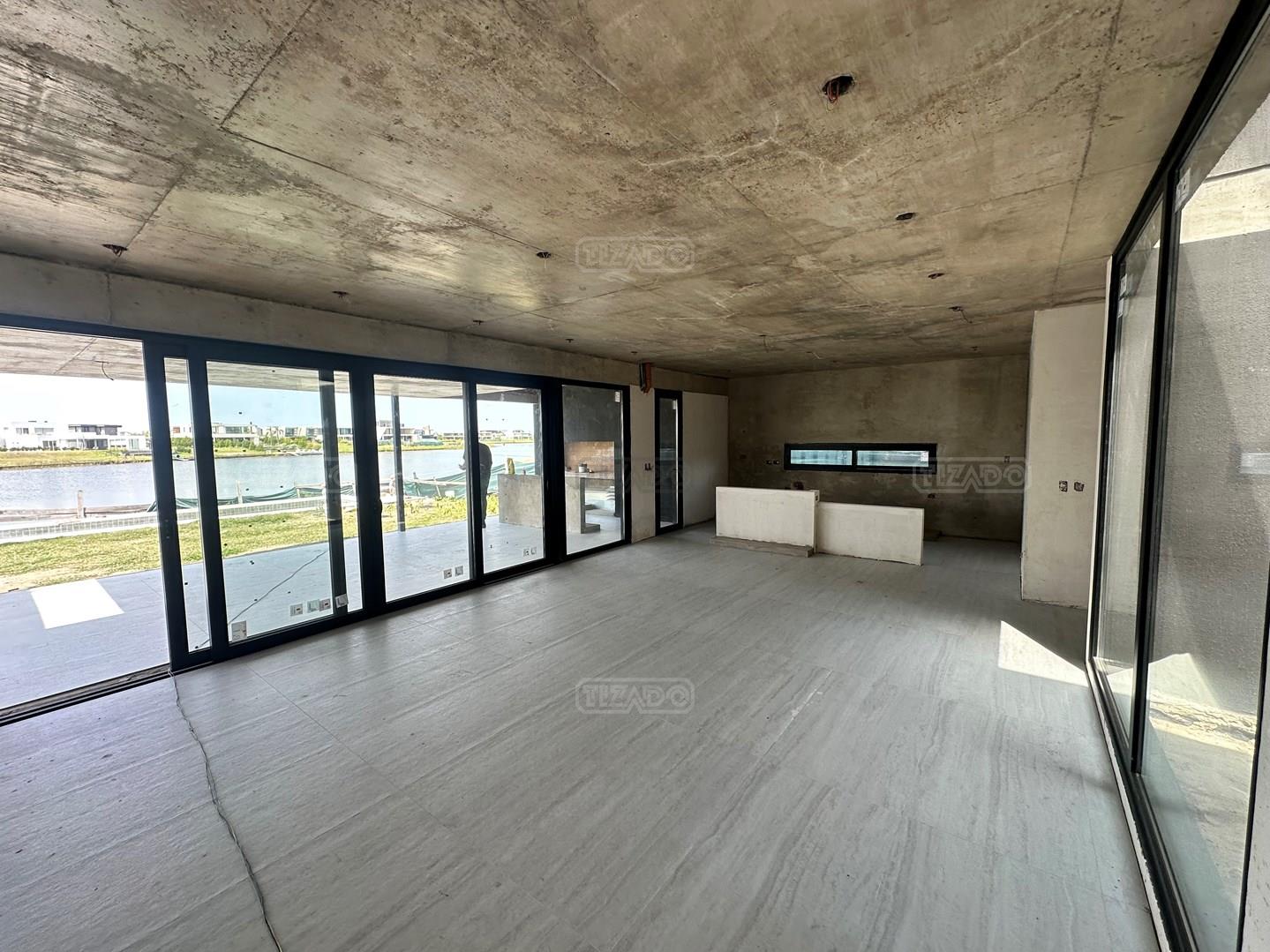 Casa en barrio Costas, diseño moderna con hormigon a la vista. La casa se encuentra en la etapa final de obra. desarrollada en dos plantas con una gran vista sobre la bahia de Costas y el lago central. Ubicada en cul de sac, eso le da una tranquilidad a la casa y no concurren autos que no sean los vecinos de los lotes linderos. Todas Las habitaciones y espacios comunes tienen vista al lago, la casa se diseño para poder aprovechar el gran espejo de agua que posee. Entrando a la casa se puede ver un jardin interno el cual le da luminosidad a toda la casa tanto a la planta baja como alta. La casa en planta baja tiene un cuarto el cual puede ser utilizado como escritorio, micro cine o como una habitacion mas ya que al lado tiene el toilette de recepcion. Luego el living, cocina, comedor todo incluido y en la otra ala de la casa podemos encontrar el lavadero con la dependencia completa con entrada independiente a la casa. La casa tiene una amplia galeria de 12 mts incluido un espacio para colocarle un deck con un juego de sillones o una mesa dependiendo el uso que se le quiera dar. La pileta tiene mas de 10mts con un borde infinito y Jacuzzi, cuenta con un sistema para nivelarla y poder manejar la temperatura de la misma. Tiene baño de pileta. Si subimos a la planta alta lo primero que vemos es el jardin interno que le da una total luminosidad a la casa luego tenemos 4 dormitorios, 3 en Suite, con vestidor y vista al lago. Y luego la master Suite, super espaciosa con un gran vestidor y un amplio baño. Cabe destacar la vista de la misma. La casa cuenta con detalles de calidad que realmente vale la pena ver. EL equipamiento final de la casa se puede ver en las fotos junto con las terminaciones, estan en el listado.