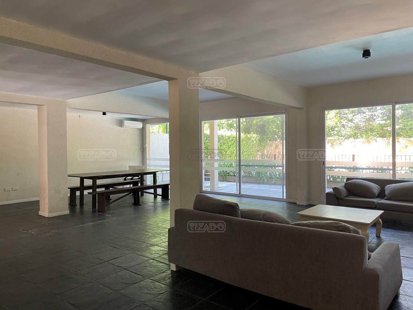 Departamento en VENTA, APTO CREDITO. También en alquiler. Departamento 2 ambiente de 55 m2 ; balcón con parrilla, cocina integrada, muy luminoso!. Placard completo, baño con ventana al exterior. DVH. LAS CAMPANILLAS es un complejo de 52 departamentos con cocheras individuales, fijas semicubiertas, mas cocheras de cortesía. Tiene SUM, piscina, laundry, parrilla en cada unidad, escaleras y ascensor. SERVICIOS: Todos en red y de primera calidad!. Cámaras de seguridad nocturna. LA ZONA es tranquila y segura (ubicado en corredor de Ayres del Pilar, Armenia, Highland Park, Altos del Pilar: vigilado con cámaras municipales y de los mismos barrios) con actividades recreativas, sociales, paseos de compras, shoppings, supermercados, gastronomía y servicios educativos, de salud y más. Las fotos y medidas son a modo orientativo.