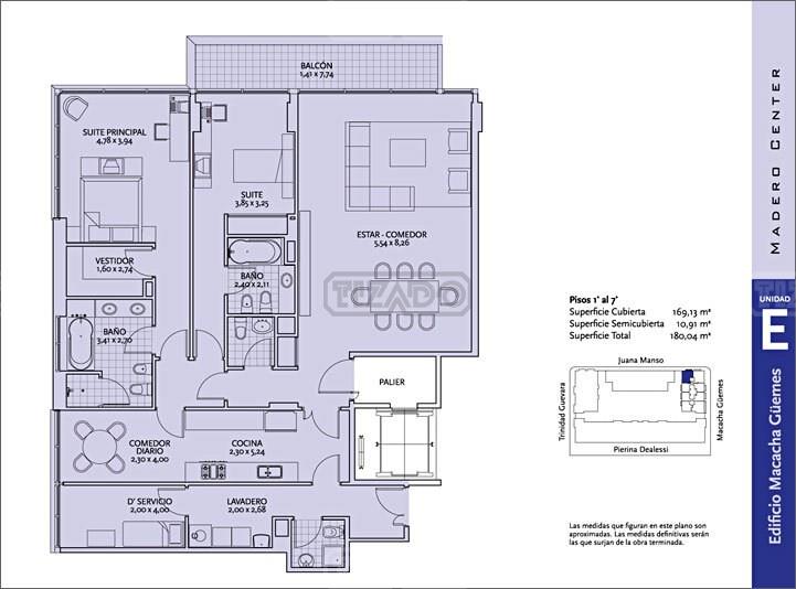 - Dormitorio: 4,78 x 3,94 en Suite c/vestidor
