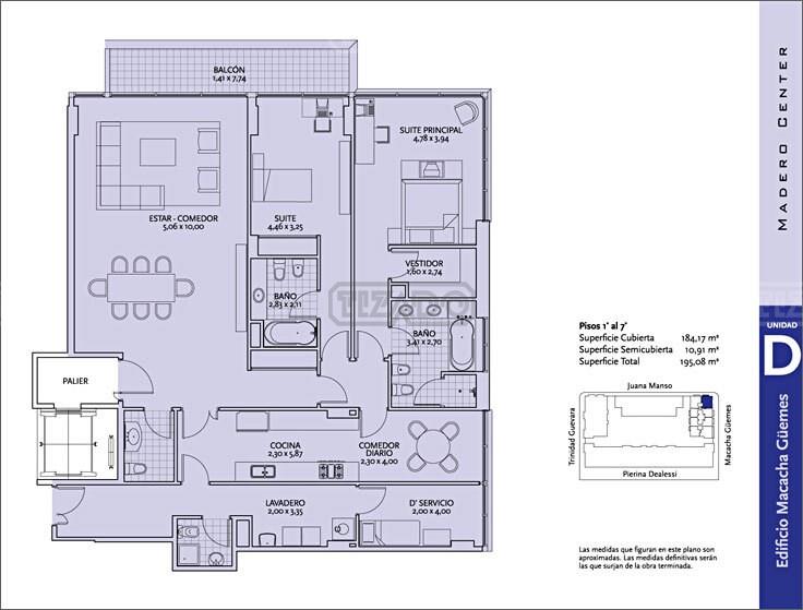 sector MACACHA GÜEMES al 350, PUERTO MADERO | Alquiler 2 suites con dependencia | Superficie: 195 m2 | Palier privado con acceso a ascensor principal. Hall de ingreso, gran living comedor, con salida a balcón corrido y vista abierta. Amplio toilette de recepción con placard. 2 dormitorios en suite, (principal con gran vestidor y baño con jacuzzi y ducha). Cocina amplia con comedor diario. Lavadero y dependencia de servicio. Entrada de servicio. Aire acondicionado frío/calor central, controles por cada ambiente del departamento y losa radiante con caldera individual a la unidad. 1 Cochera. Baulera. | PRECIO: paquete con expensas incluidas.- (dolar Billete)| Amenities: Piscina cubierta climatizada y descubierta con sector infantil. Área de spa. (sala de relax, sauna y ducha escocesa). Fitness center (GYM y varios salones, para clases privadas, yoga y danza clásica). Beauty Center (espacio especialmente equipado como sala de peluquería y manicura). Microcine (sala de cine real para 30 personas). Sala de juego infantiles tipo guardería. Salón de adolescentes (Mesa de pool, metegol y ping pong). 2 Salones para eventos con entrada independiente por Juana Manso, con cocina, mesas y sillas, guarda ropa, bar. Cocheras de cortesía. Seguridad 24hs. | Proyecto y dirección: Dujovne - Hirsch y Asociados