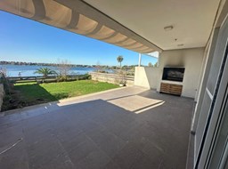 Alquiler anual departamento en planta baja a la laguna, 3 ambientes. VILA VELA Santa Clara Villanueva. Amplio 3 ambientes con galeria, parrilla y jardin. 2 dormitorios, uno de ellos en suite con vestidor, 2 baños completos, estar comedor y cocina integrada. Orientación Noreste, sol y luz todo el día! Cochera cubierta y baulera en subsuelo y otra cochera semicubierta. Terminaciones de calidad, aberturas de PVC blanco. Pisos de porcelanato pulido. Conexión para lavarropas o lavavajillas en cocina y laundry en edificio. Sistema de calefacción y refrigeración central de ultima generación fan coil, ecológico y de muy bajo consumo. Todos los departamentos tienen su balcón terraza al lago con un espejo de agua de 41 hectáreas. Su arquitectura aterrazada le brinda mas privacidad y luz natural a a cada unidad. El lago, una antigua cantera con lecho de piedras (el mas azul de Villa Nueva cuya agua es mitad dulce, mitad salada), permite disfrutar de deportes náuticos a vela, kayak o windsurf. Dispone de seguridad las 24 hs. Con sus 500 mts de frente sobre el lago ofrece un circuito peatonal, y el proyecto prevee Club House, piscina, muelles, área de juegos y deportiva. Muy buen acceso desde Ruta 9 Panamericana, por Ruta 27 o bajada La Bota, acceso directo desde corredor Bancalari-Benavidez. Desde Acceso Tigre por Camino de los Remeros y Ruta 27. Cercano a Vila Terra Centro Comercial y al completo Centro Comercial Nordelta (Centro medico, Comercios, Gastronomía, Cines, Oficinas, Bancos, Supermercados).
