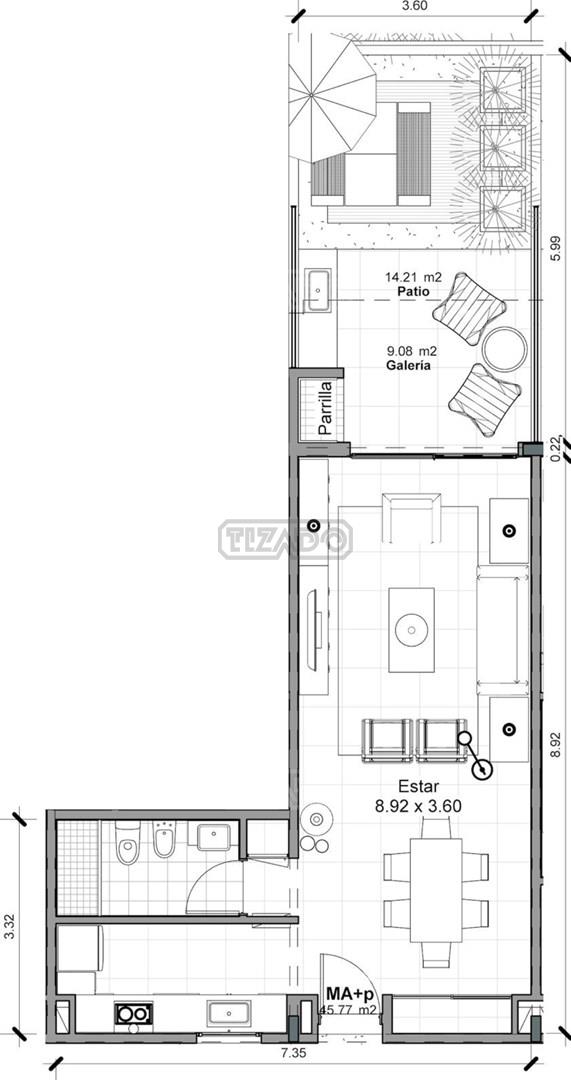 - Patio: Privado con parrilla