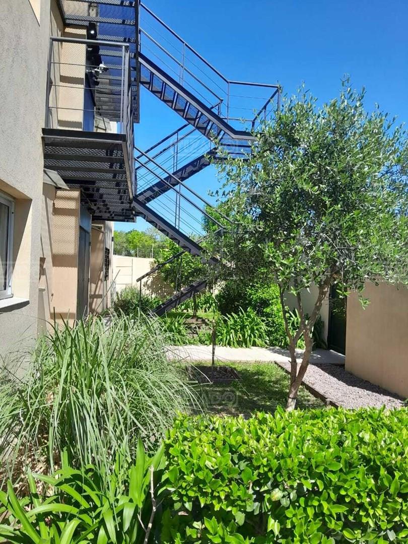 DUPLEX en planta baja, cómodos 3 ambientes con cochera y fondo libre de 7 x 5, muy buenas medidas en general, cómodo living/comedor, cuenta con split LG de 5.000.- frigorias, dormitorios grandes con placard completos de piso a techo, baño completo, cocina con barra y amoblamiento muy alto y bajo, doble mesada. FONDO propio de la UF, parquizado, con muchas posibilidades ( pergola/quincho/ yacuzzi) para desarrollar. Cuenta con calefacción por radiadores con su correspondiente caldera PEISA en perfecto funcionamiento. Complejo chico solo de 4 unidades, cuenta con alarma perimetral y cámaras, Portón de acceso automático a la cochera fija. Muy buen entorno de colegios y viviendas similares, muchos medios de transporte en Ruta 26, a tres cuadras colectora Acceso a Pilar. No dude en consultarnos. Excelente oportunidad, venta no condicionada.