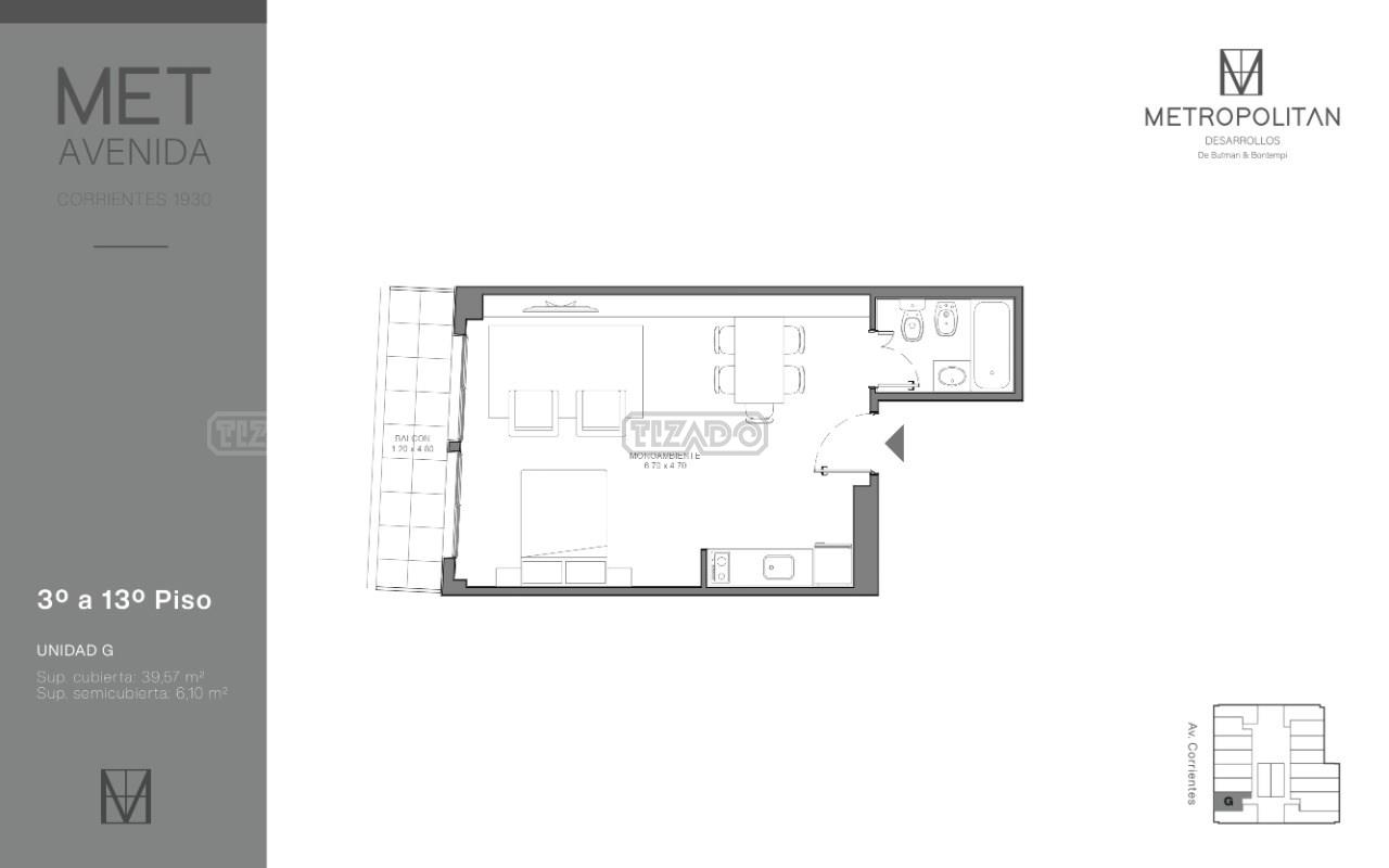 Excelente monoambiente divisible a estrenar! Edificio MET AVENIDA, desarrollado en 14 pisos + 3 subsuelos de cocheras en renta. Cuenta con unidades de 1, 2 y 3 ambientes. Importante ubicación, medios de transporte, subte y avenidas como Corrientes y Callao. Ideal para vivir, renta, estudiantes, renta temporaria, estudios profesionales, etc. Hall de entrada con diseño de avanzada y esplendidos detalles de terminación. Coworking, sala de trabajo, Gym equipped to full de última generación, laundry, sauna y parrillas. Apto para personas con movilidad reducida. Matrícula Cucicba 1053.