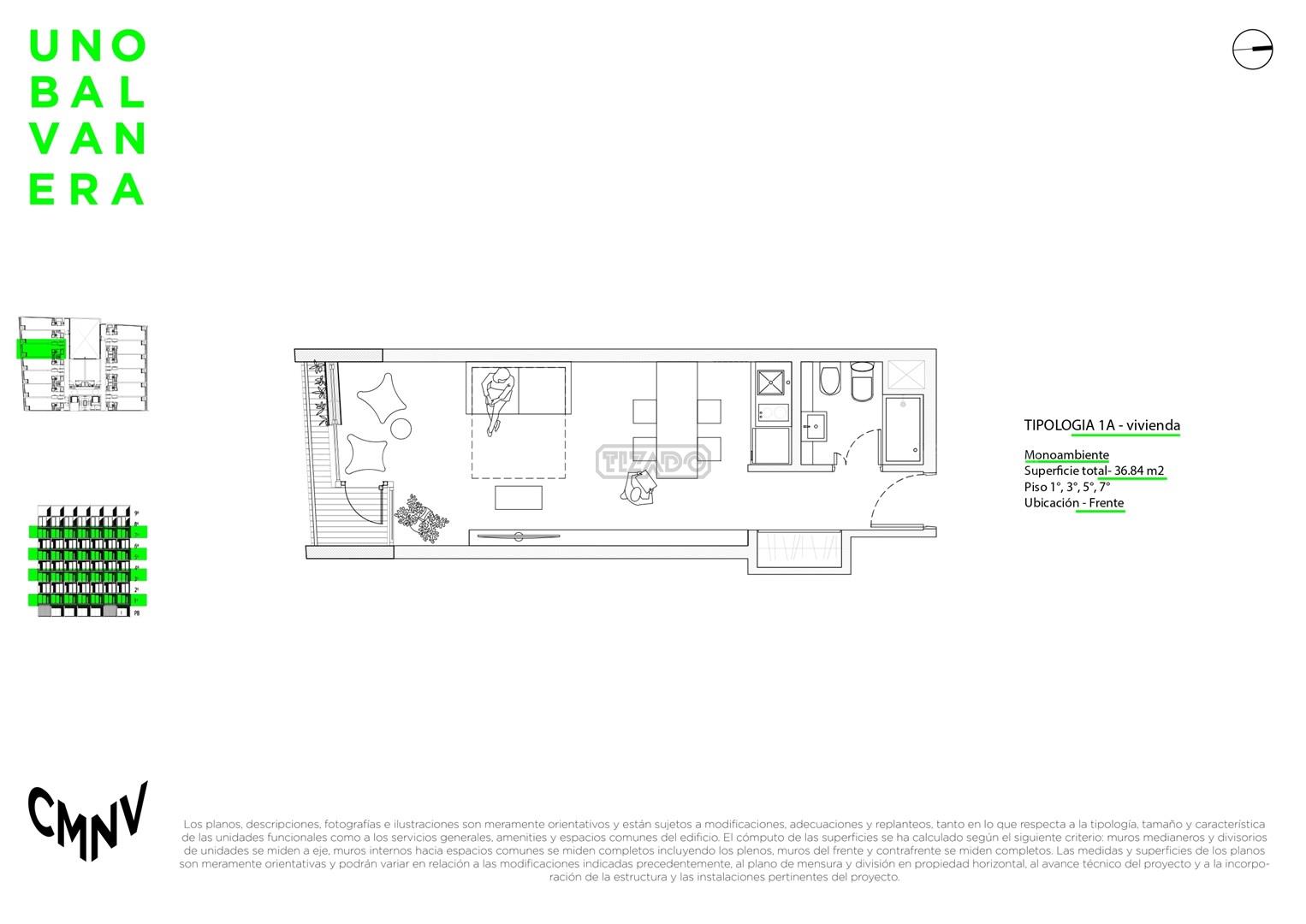 UNO BALVANERA, En el corazón de Buenos Aires, a 50 metros de la nueva plaza Manzana 66, se desarrollará un edificio único en un barrio donde convergen la historia, la cultura y el futuro. Un área caracterizado por un tejido urbano consolidado con centros de salud y educativos de todos los niveles, edificios históricos de valor arquitectónico y patrimonial. Espacios verdes renovados y una amplia red de transporte público y nueva estructura, que ofrece conexiones con toda la ciudad en pocos minutos. UNO BLV contará con 10 pisos, 1 subsuelo con acceso por rampa con 45 cocheras, 3 locales comerciales, Unidades de 1, 2 Y 3 ambientes, lofts y estudios profesionales. Jardines y espacios abiertos de uso común, techo verde, huerta urbana, piscina, solárium, vestuarios, SUM, Laboratorio de café, Centro de entrenamiento, bicicleteros, lavadero, pequeño taller de herramientas, wifi central en espacios comunes, Monitoreo CCTV y control de accesos 24 hs. Carpinterías exteriores con doble vidrio laminado, piso vinílico, agua caliente central, aire acondicionado individual en cada unidad, cocinas y baños equipados con muebles, espacio de ducha con mampara. Financiación!!! Matrícula Cucicba : 1053 Los planos, descripciones fotografías e ilustraciones son meramente orientativos y están sujetos a modificaciones, adecuaciones y replanteos, tanto en lo que respecta a la tipología, tamaño y característica de las unidades funcionales como a los servicios generales, aménities y espacios comunes del edificio. El computo de las superficies se ha calculado según el siguiente criterio: muros, medianeros y divisorios de unidades se miden a eje, muros internos hacia espacios comunes se miden completos incluyendo los plenos, muros de frente y contrafrente se miden completos. Las medidas y superficies de los planos son meramente orientativas y podrán variar en relación a las modificaciones indicadas precedentemente al plano de mensura y división en propiedad horizontal, al avance técnico del proyecto y a la incorporación de la estructura y las instalaciones pertinentes del proyecto.