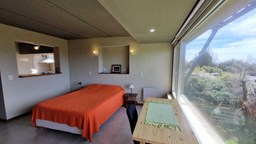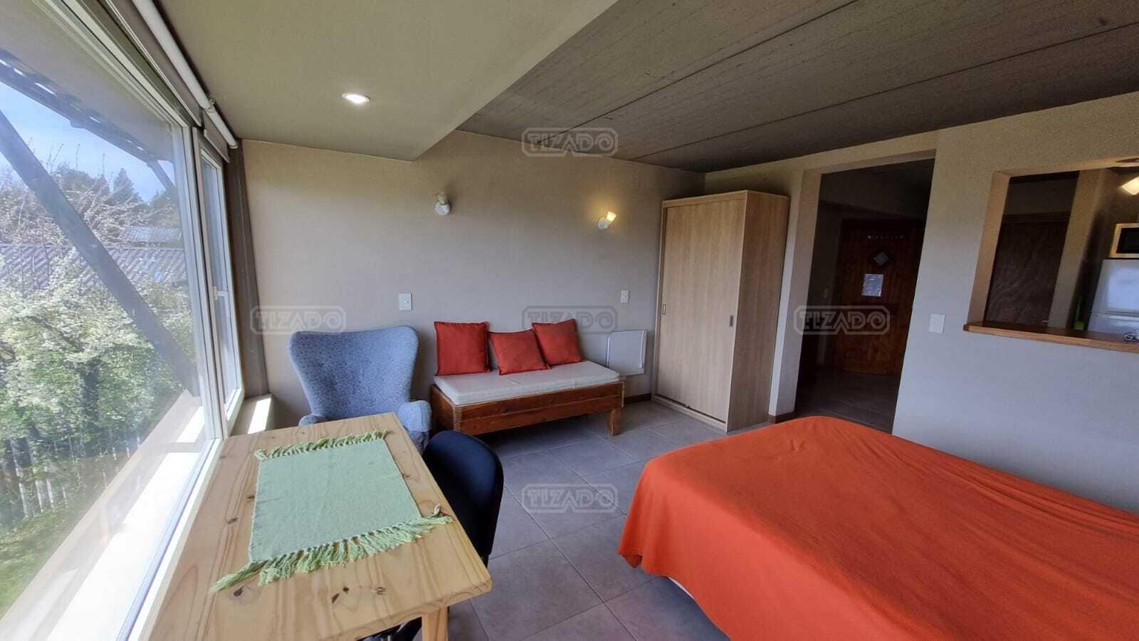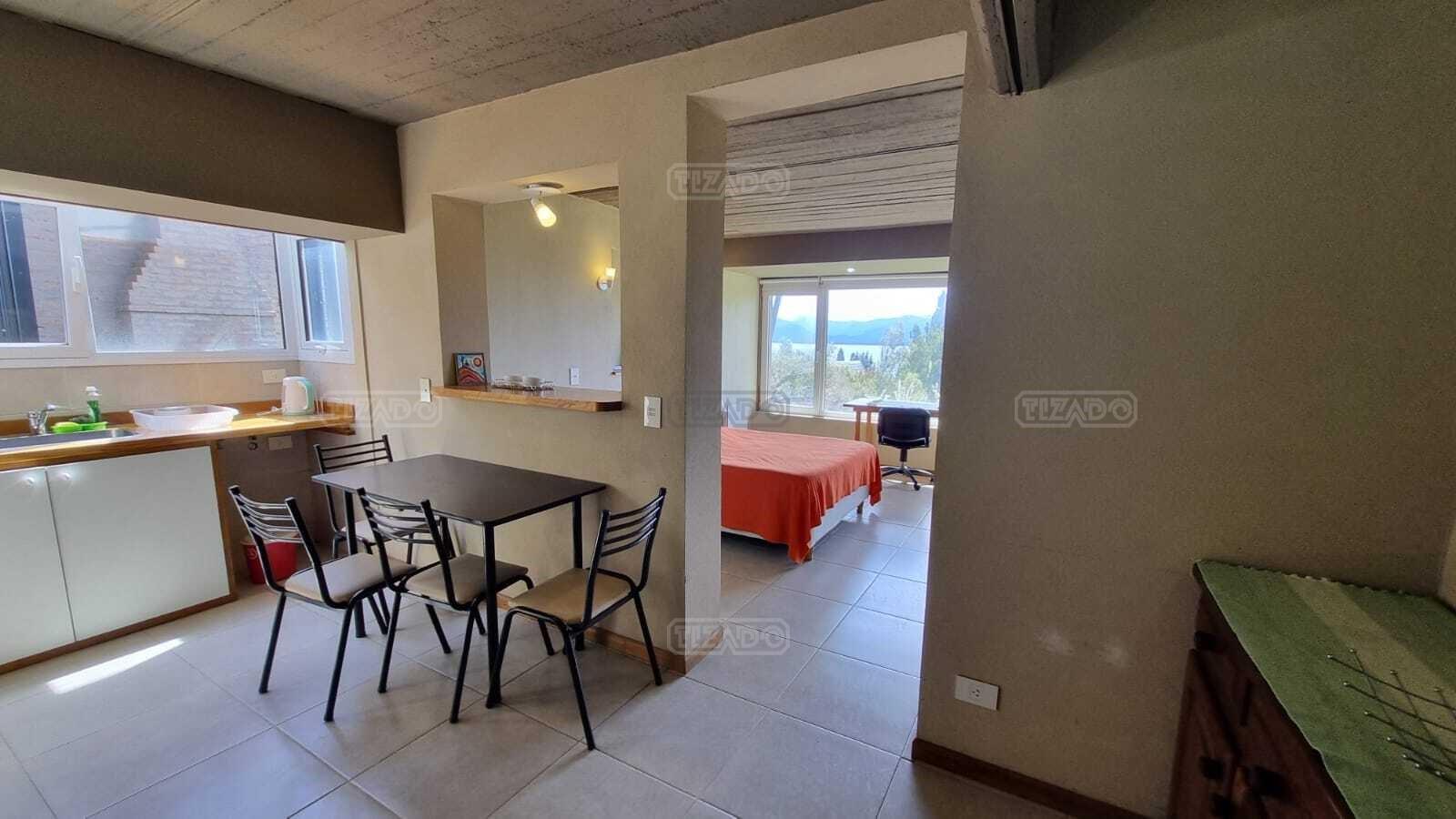 Departamento en excelente ubicación sobre Av. Pioneros KM 3.4, en uno de los barrios más buscados de la Ciudad de Bariloche, a solo 5min del centro, con buena conectividad. Se trata de un complejo de 7 unidades residenciales en 3 plantas, totalmente remodelado a nuevo. Esta unidad se encuentra en nivel -1 con orientación norte, excelente luz natural durante todo el día y vista al lago. De construcción 100% en mampostería y de tipología monoambiente cuenta con área de entrada, espacio de cocina con comedor diario, cocina con techo vidriado que le otorga excelente luminosidad, equipada con horno y anafe eléctrico, bajo mesadas y conexión para lavarropas. Pasaplatos que comunica al ambiente único de estar / dormitorio, con placard y amplios ventanales con muy lindas vistas. Baño completo con box de ducha. Pisos porcelanato, aberturas en pvc blanco con DVH, calefacción por placas electricas, agua caliente por termotanque eléctrico. Apto para destino turístico. Impecable estado!! Espacio de estacionamiento de cortesía de uso común para 4 de las unidades. Ni Tizado Propiedades (M&G Inmuebles Patagonia SRL), ni el Martillero a cargo son responsables de los indicadores urbanísticos, factibilidades de construcción, ni usos permitidos sobre el inmueble objeto del presente. Corredor y Martillero Matriculado: Sebastián Caretta - Matricula N.333-RP-20 F.412 T.Il