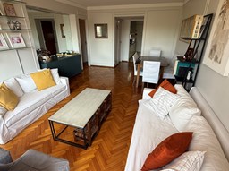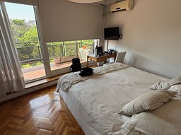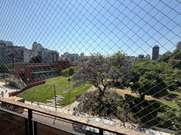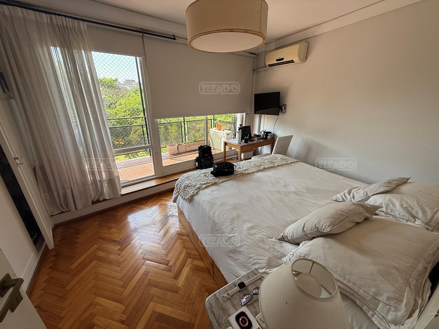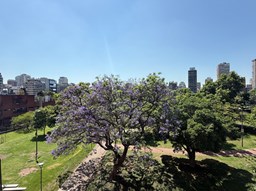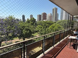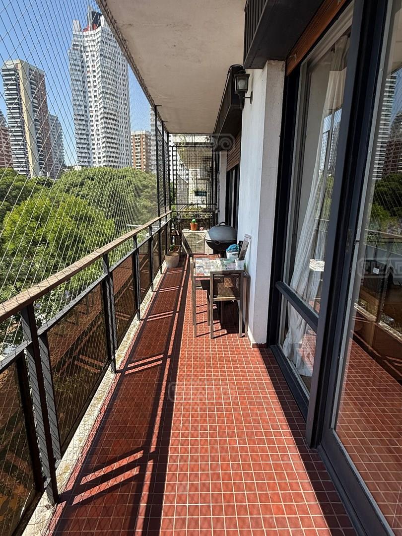 Piso en alquiler en excelente ubicación con espectacular vista abierta al Parque Las Heras, lleno de luz y sol gracias a su orientación este. Acceso por pallier privado. Cuenta con un amplio living-comedor al frente con grandes ventanales y salida a un balcón corrido con una vista increíble. El dormitorio principal también está al frente y tiene acceso al balcón, mientras que los otros dos dormitorios son internos y muy tranquilos. Posee dos baños completos más baño de servicio, dependencia, cocina cómoda y funcional, y pisos de madera en todo el departamento. La calefacción es central por losa radiante, el agua caliente es individual y hay aire acondicionado en el living y en el dormitorio principal. Las expensas abonadas en noviembre fueron de $480.000 y Aysa $35.000. La inquilina actual alquila cochera en el edificio a una una que eventualmente podría traspasar ese alquiler, esto seria a confirmar.