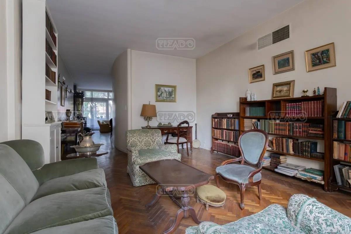 Departamento de planta completa de 248 m², con orientación este-oeste. Excelente ubicación en Belgrano R, a cuatro cuadras de la estación Belgrano R, de Av. Cabildo y próximo a Av. De los Incas. Palier privado. Hall de entrada, toilette de recepción. Living íntimo con acceso al living comedor principal y salida a balcón al contrafrente con vista abierta al pulmón de manzana. Jardín de invierno. Ante cocina, cocina comedor diario con muebles y mesada originales. Doble dependencia de servicio con baño y lavadero. Cuatro dormitorios: dos al frente en suite (baño compartido) y dos internos con placares. Dos baños: uno completo con bañera y otro con ducha. Pisos de roble de Eslavonia en recepción y dormitorios. Cochera cubierta para un vehículo. Calefacción y agua caliente centrales. Aparatos de A/A Frio calor en living comedor y dormitorio. Todas las medidas son aproximadas y las definitivas surgirán de la escritura traslativa de dominio. El edificio (no) cuenta con accesibilidad para personas con movilidad reducida (ley 5115). Claudio García. Matrícula N°3738 CUCICBA.