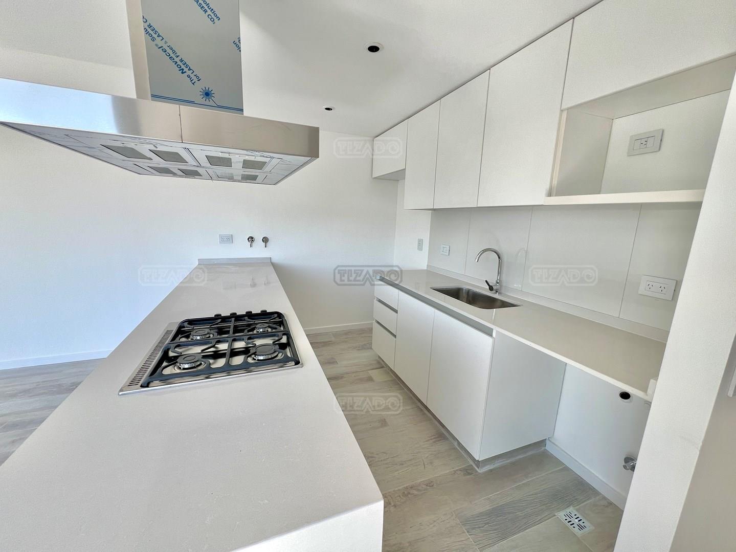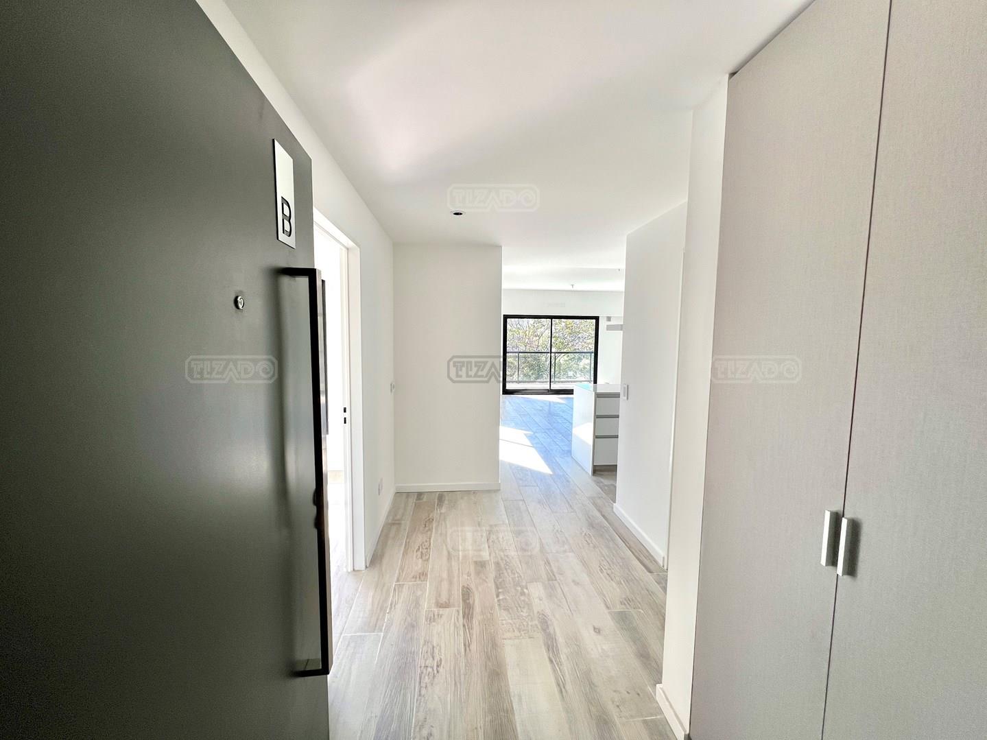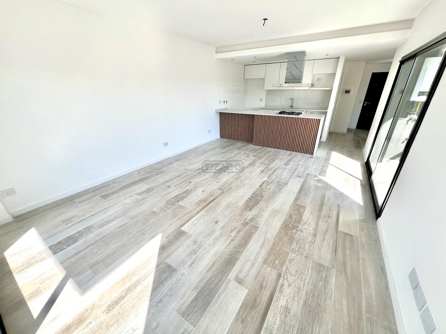 Excelente semipiso a ESTRENAR con cochera OPTATIVA fija y descubierta. Amplio living comedor con una gran cocina integrada con barra, toilete de recepción y salida a dos balcones con una vista abierta al pulmon de manzana. Dormitorio principal en suite con vestidor. Servicios individuales por caldera. Preinstalación para aire acondicionado multisplit. El edificio cuenta con una terraza con parrilla y solarium y está equipado con CCTV. Detalles de categoria. POSESION INMEDIATA