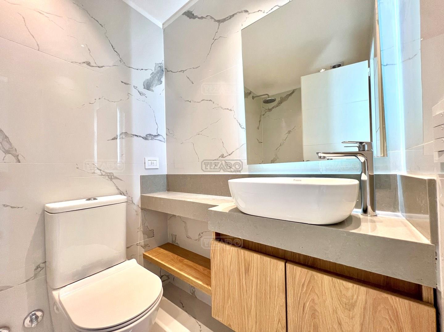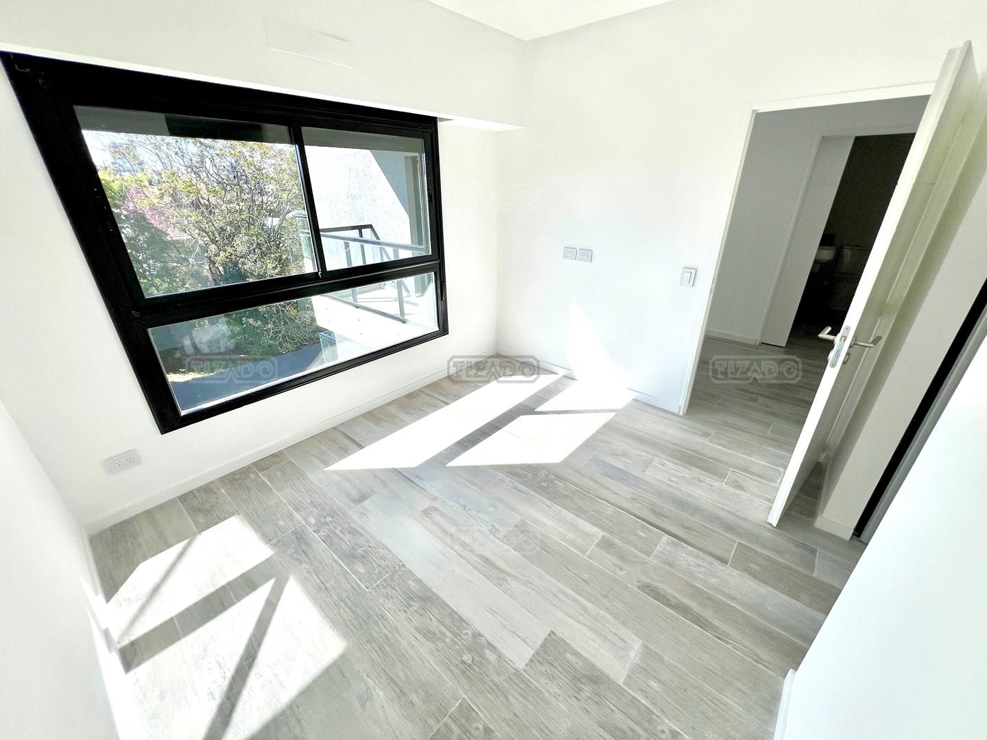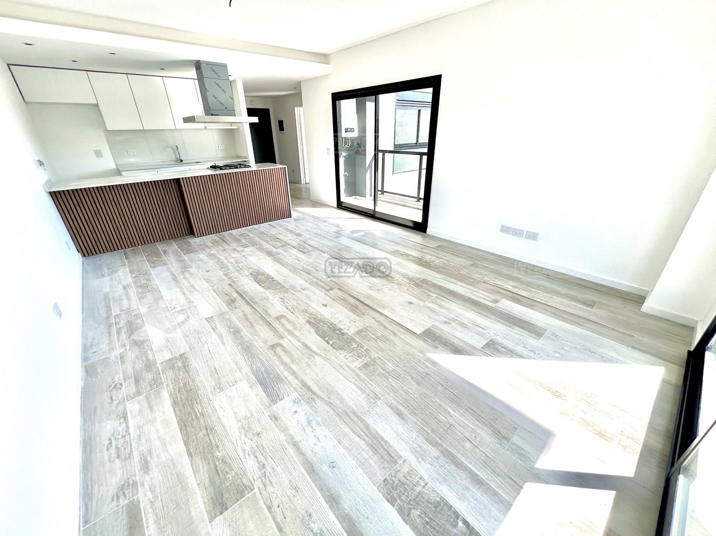 Excelente semipiso a ESTRENAR con cochera OPTATIVA fija y descubierta. Amplio living comedor con una gran cocina integrada con barra, toilete de recepción y salida a dos balcones con una vista abierta al pulmon de manzana. Dormitorio principal en suite con vestidor. Servicios individuales por caldera. Preinstalación para aire acondicionado multisplit. El edificio cuenta con una terraza con parrilla y solarium y está equipado con CCTV. Detalles de categoria. POSESION INMEDIATA