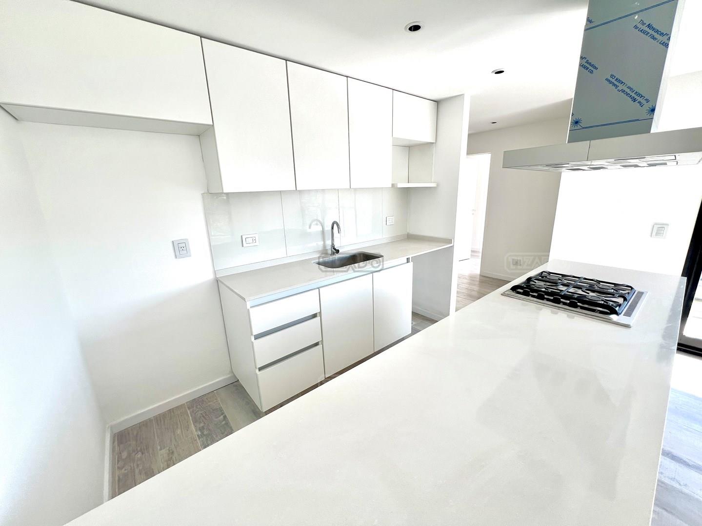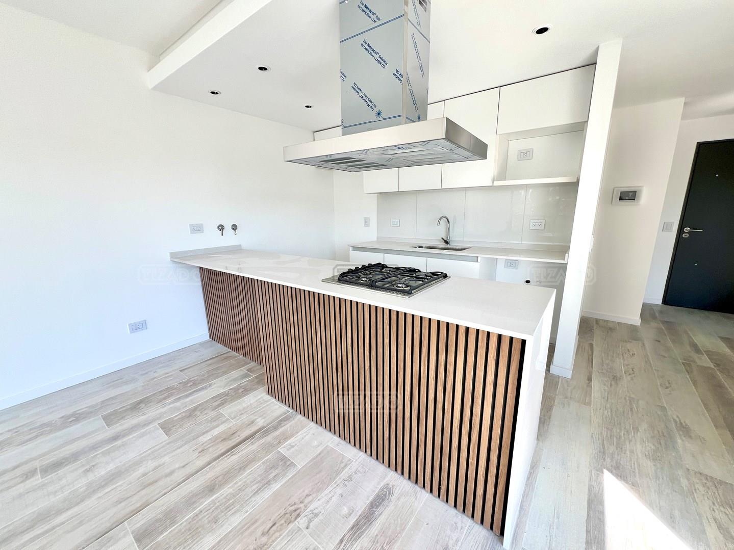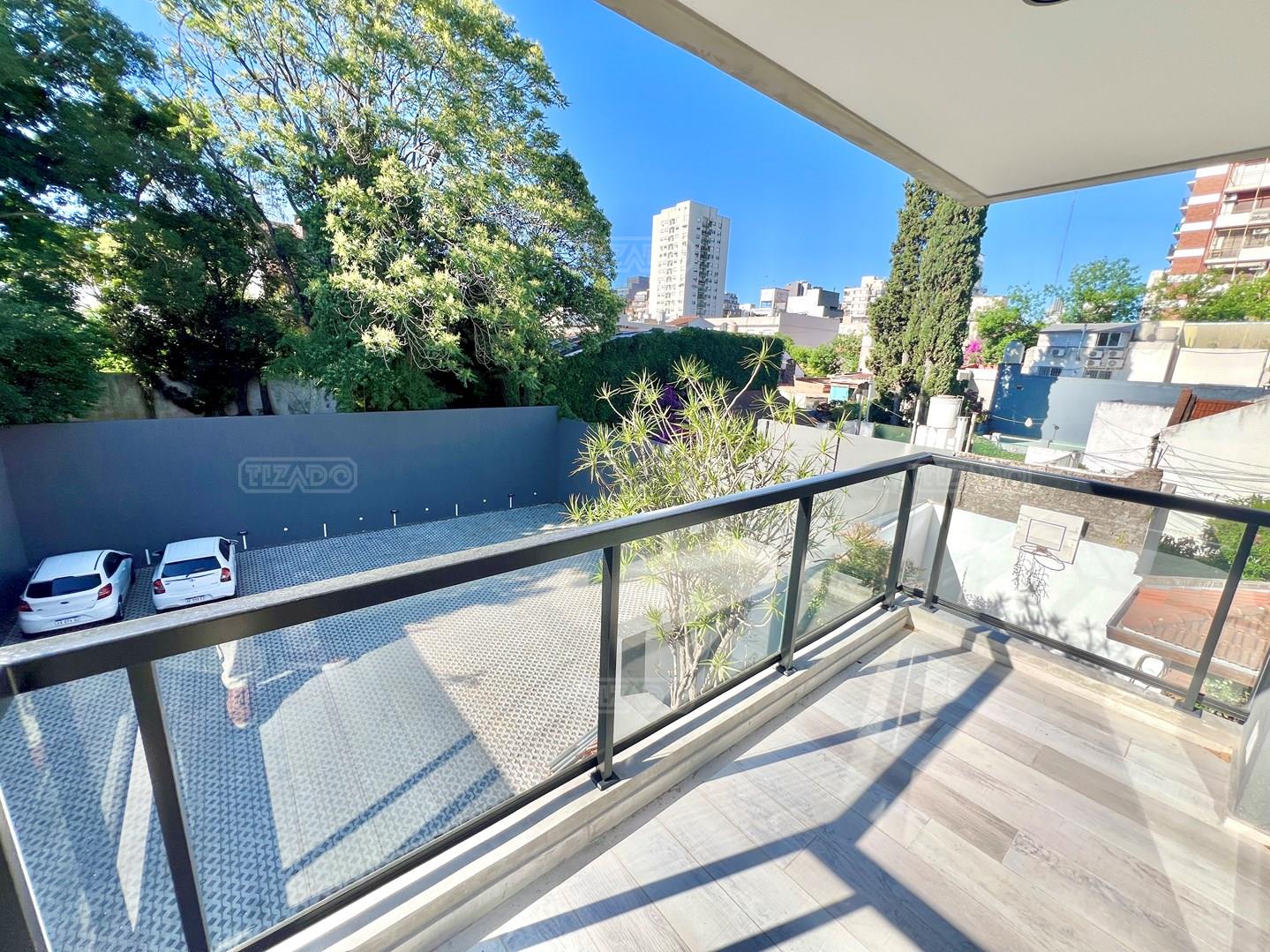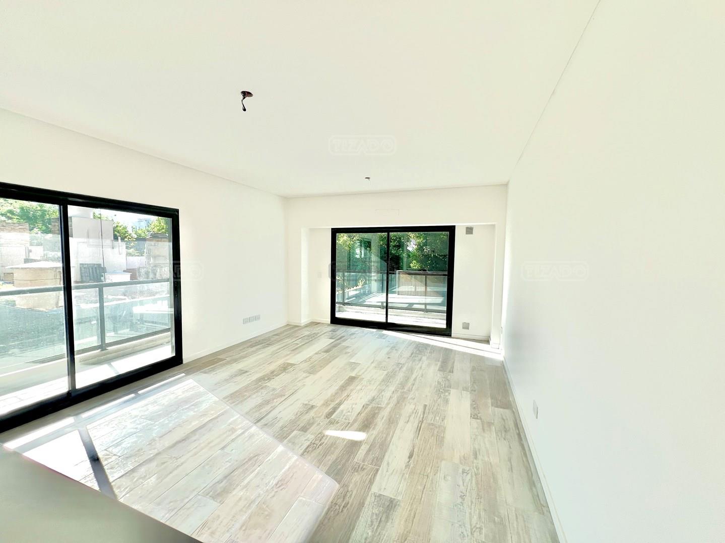 Excelente semipiso a ESTRENAR con cochera fija descubierta. Amplio living comedor con una gran cocina integrada con barra, toilete de recepción y salida a dos balcones con una vista abierta al pulmon de manzana. Dormitorio principal en suite con vestidor. Servicios individuales por caldera. Preinstalación para aire acondicionado multisplit. El edificio cuenta con una terraza con parrilla y solarium y está equipado con CCTV. Detalles de categoria. POSESION INMEDIATA