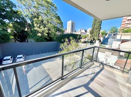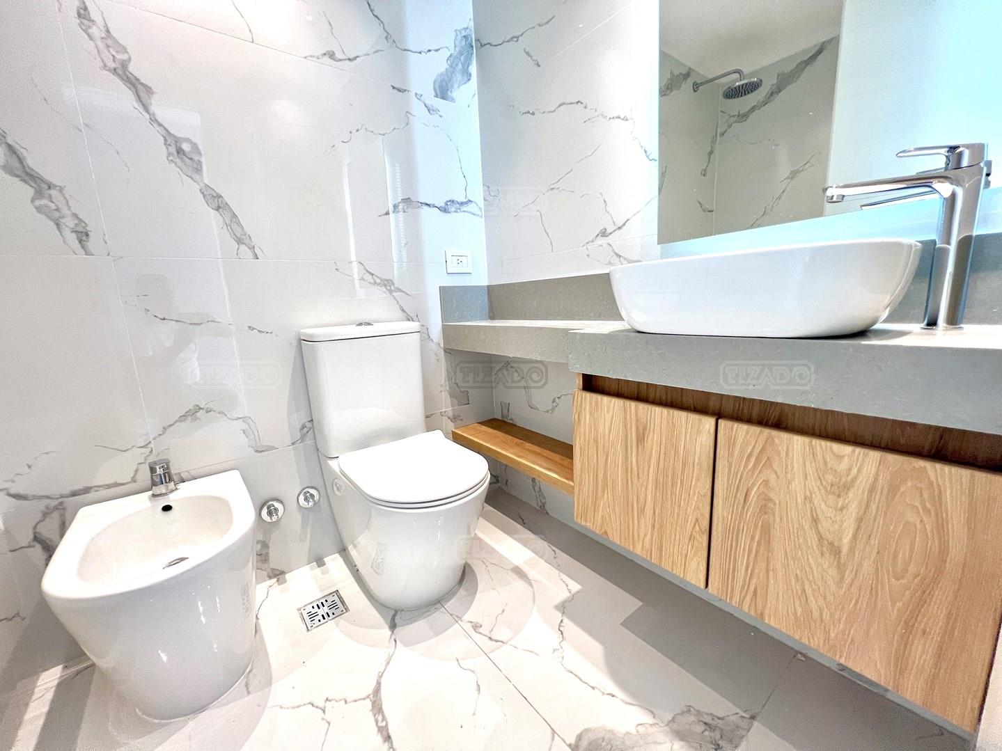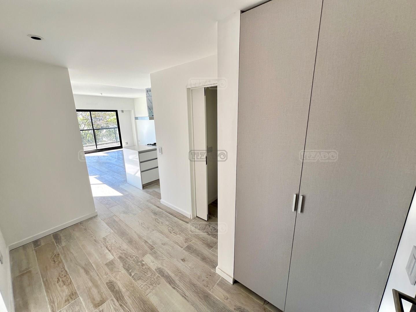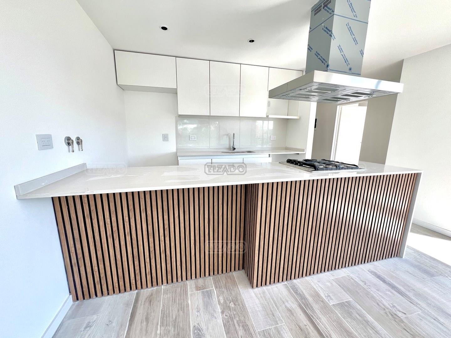 Excelente semipiso a ESTRENAR con cochera fija descubierta. Amplio living comedor con una gran cocina integrada con barra, toilete de recepción y salida a dos balcones con una vista abierta al pulmon de manzana. Dormitorio principal en suite con vestidor. Servicios individuales por caldera. Preinstalación para aire acondicionado multisplit. El edificio cuenta con una terraza con parrilla y solarium y está equipado con CCTV. Detalles de categoria. POSESION INMEDIATA
