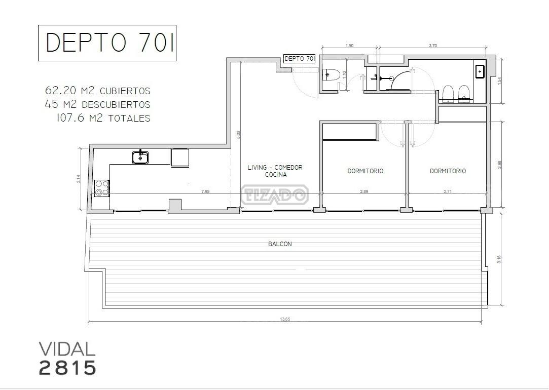 - Terraza: 13.60 x 3.20